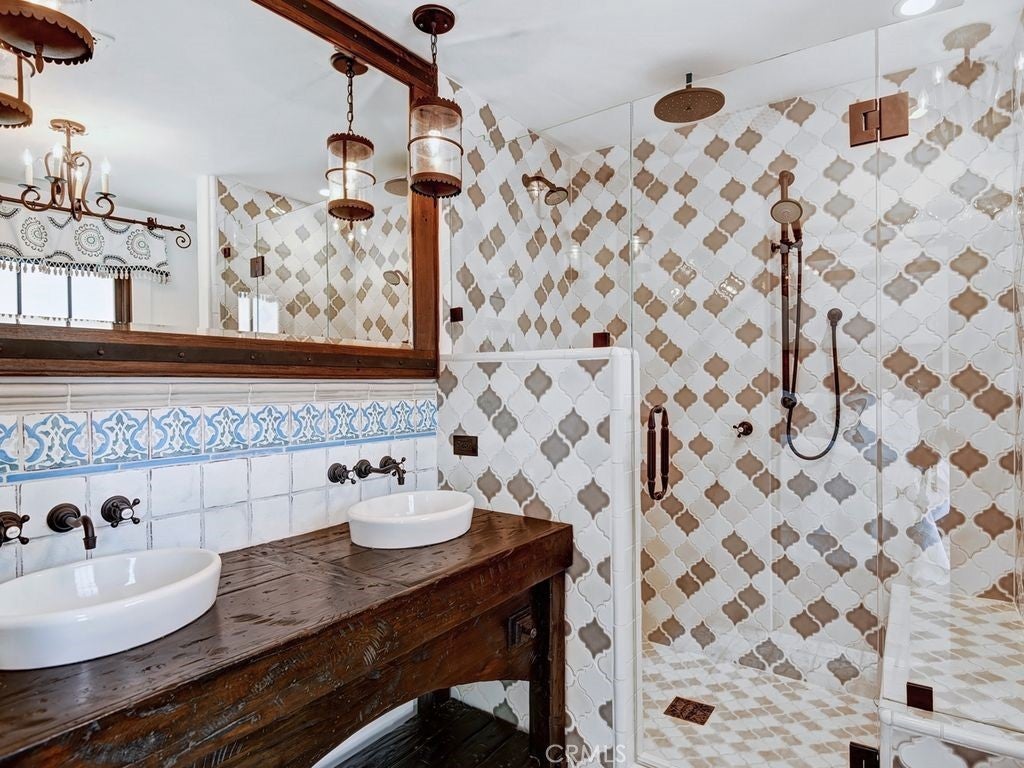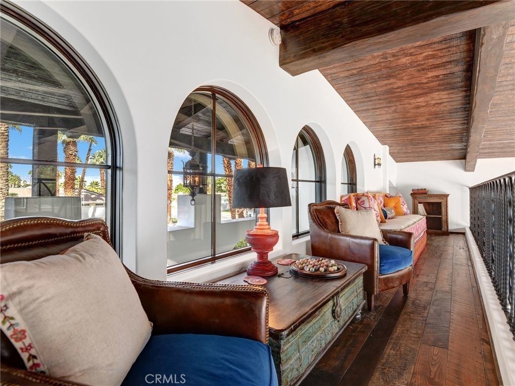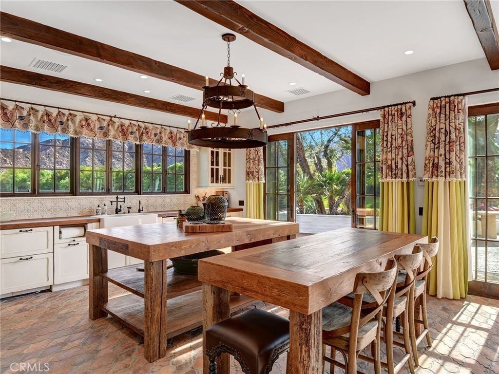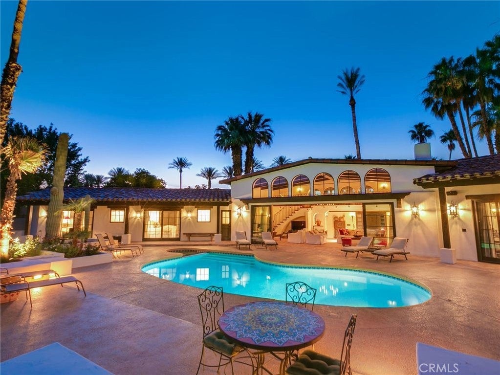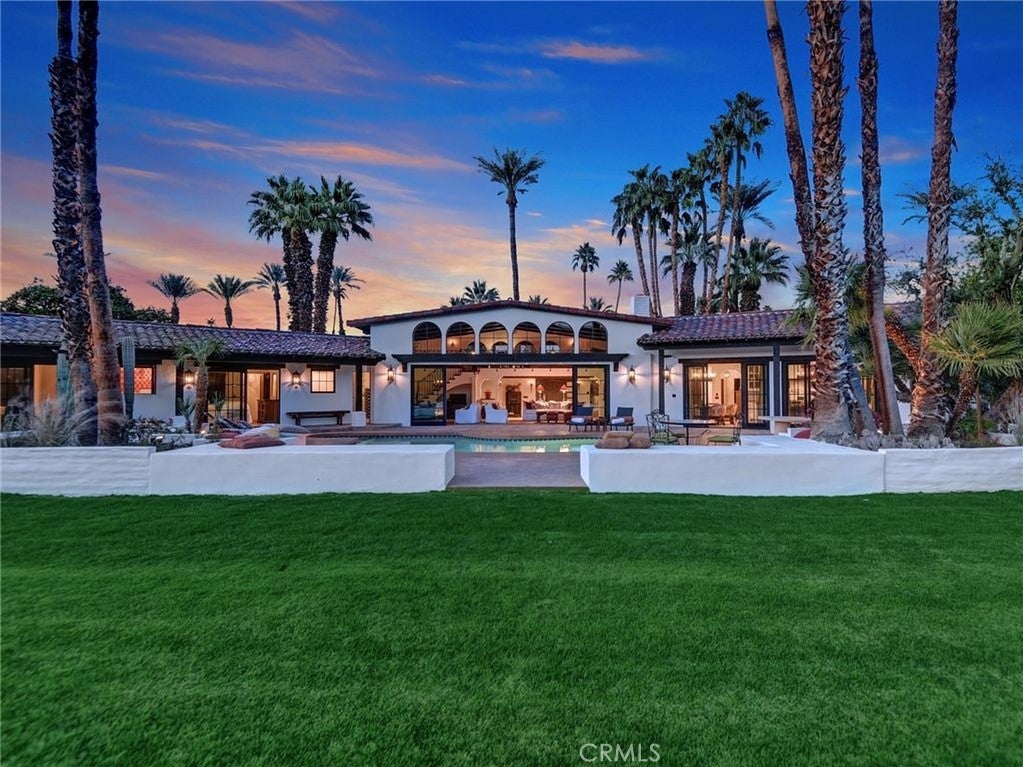 This fully furnished Spanish Revival estate, recently renovated, sits on two private acres in the heart of Indian Wells, offering a serene retreat with breathtaking mountain views. Designed with impeccable craftsmanship, the home features four en suite bedrooms, an open loft lounge that doubles as a bedroom, five full baths, and a guest powder room. The expansive living and dining areas seamlessly flow into a gourmet kitchen, complete with a walk-in pantry and ice makers—a chef’s dream. Each fully furnished bedroom suite showcases reclaimed wood flooring, custom hand-painted tile bathrooms, and sheer and blackout curtains for ultimate comfort. The outdoor oasis includes a private tennis and pickleball court, a resort-style pool and spa, and lush fruit orchards with a treehouse. A Sonos music system enhances both indoor and outdoor spaces, while entertainment options like basketball, bocce, croquet, ping pong, and foosball ensure endless enjoyment. The one-acre backyard barranca offers a private stretch of grass, perfect for leisure or recreation. Ideally located just 2.5 miles from the Indian Wells Tennis Garden, 8 miles from Coachella, and a short drive to El Paseo’s luxury shopping and dining, this fully furnished estate is a rare blend of privacy, elegance, and resort-style living.