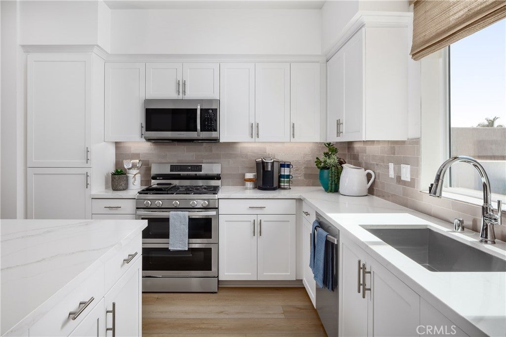 Discover Townes at Orange, an exclusive community of just 24 new townhomes offering modern living in an unbeatable Anaheim location near freeways, shopping, dining, and entertainment. This highly upgraded corner home features approximately 1,976 square feet with three bedrooms, two full baths, two half baths, and a den. Enjoy luxury vinyl plank flooring throughout most of the home, an upgraded kitchen with quartz countertops, full-height tile backsplash, a large island, stainless steel appliances, and beautiful designer finishes. The primary suite includes an ensuite bath with upgraded counters and a stunning full-height tiled shower. Additional features include window coverings throughout, a furnished interior, walk-in closets, smart home technology, and an open-concept great room that leads to a private balcony. With extra natural light from its corner location and easy access to the community greenbelt and BBQ area, this move-in-ready home offers modern comfort, style, and exceptional convenience in one of Anaheim’s most desirable new communities.
