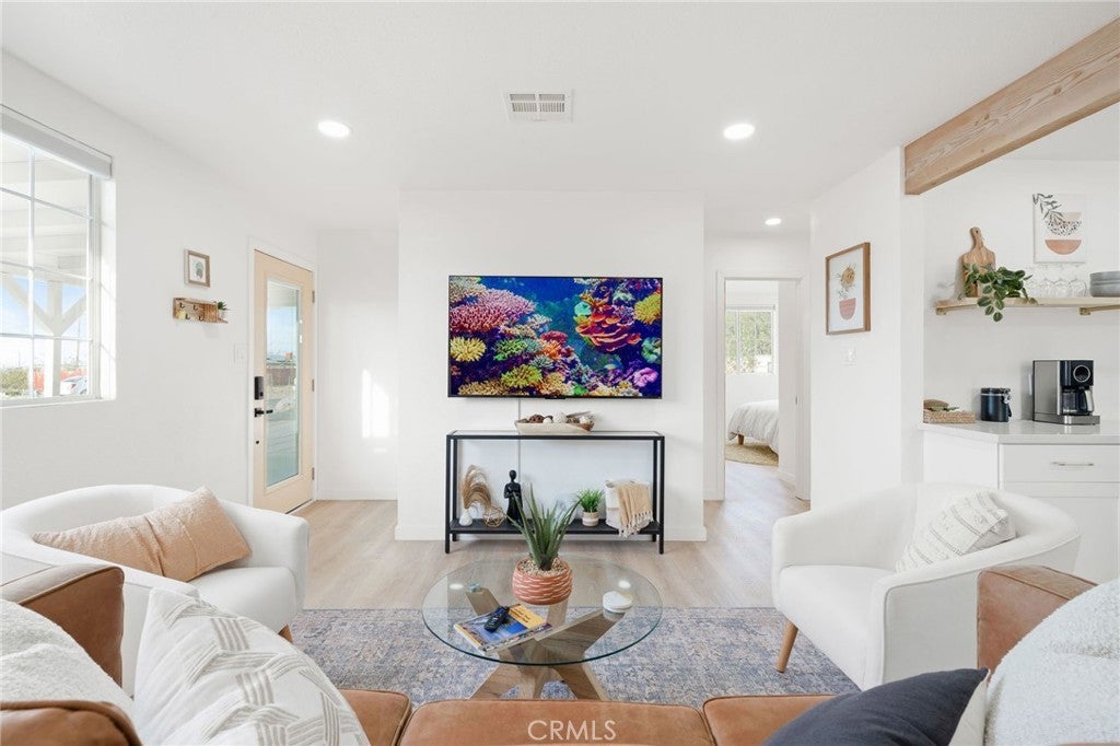 Highly upgraded desert retreat with no expenses spared. Perfect second home desert get away or investment property that can be used for short term rentals close to Joshua Tree National Park. Walking distance to Joshua Tree Village with shops and dining. Spacious backyard with tranquil landscaping and desert views.