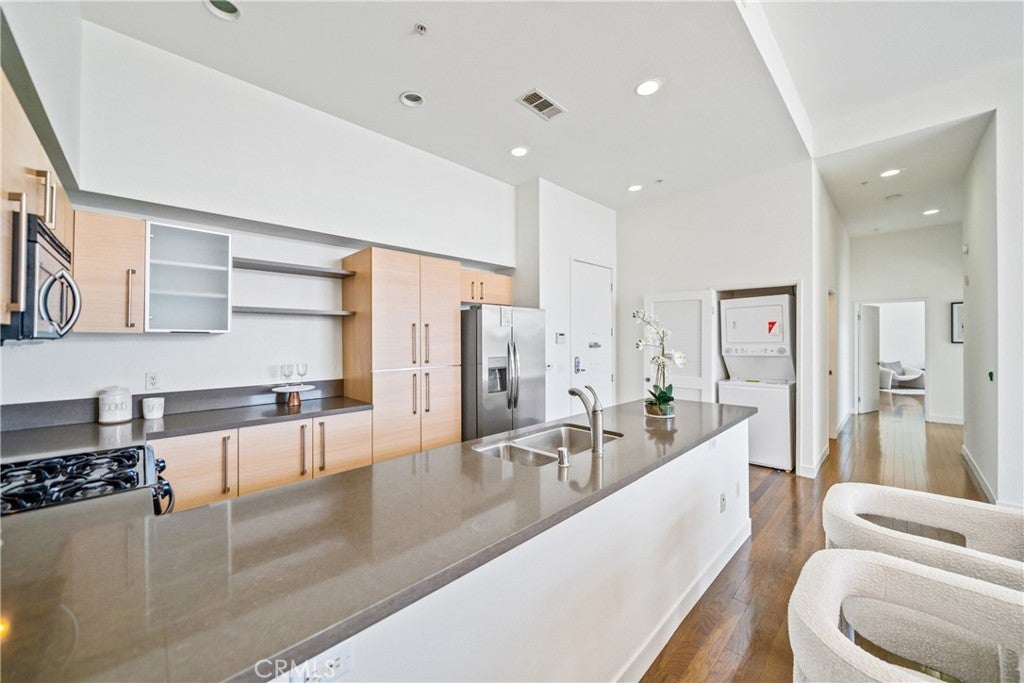 Back to the market, Reduced Price, one of largest and the best units with higher ceiling. Step into the epitome of luxury living with this stunning 3-bedroom, 2-bathroom penthouse in Vero, with a 24 hour guard security and concierge, 24 hour modern Gym, it is one of downtown LA’s most sought-after residences. Perched on the top floor, Unit 612 offers expansive interiors, sleek designer finishes, and access to world-class amenities—all in the heart of the city. Soaring ceilings and floor-to-ceiling windows flood the open-concept living space with natural light, while wide-plank hardwood floors add warmth and sophistication. The gourmet kitchen is a chef’s dream, featuring high-end stainless steel appliances, custom cabinetry, quartz countertops, and a spacious island that’s perfect for hosting. Retreat to the serene primary suite, complete with a walk-in closet and a spa-inspired en-suite bath with dual vanities and luxe finishes. Two additional bedrooms provide flexibility for guests, family, or a stylish home office—one already outfitted with a sliding door for added privacy. Vero’s premium amenities include a resort-style pool and lounge area, concierge service, and secure access. Just outside your door, you’ll find downtown LA’s best—iconic spots like the Walt Disney Concert Hall, The Broad Museum, Grand Park, and a vibrant array of shops and restaurants. With easy freeway access and nearby public transit, the entire city is yours to explore. This is more than a home—it’s a lifestyle. Don’t miss your chance to own this exceptional penthouse. Schedule your private tour today!