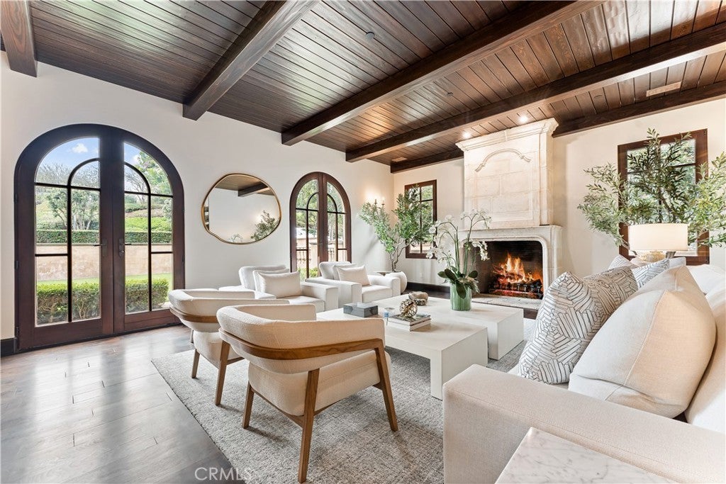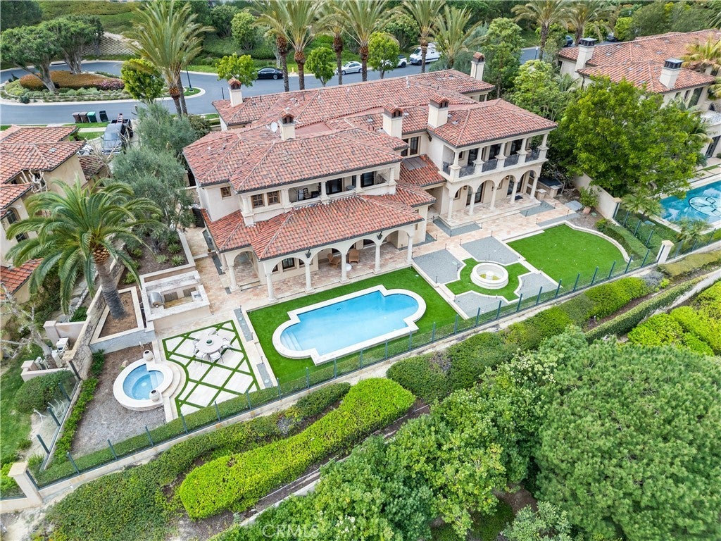 Nestled on a prestigious single-loaded street in the guard-gated enclave of Pelican Crest, this newly renovated custom estate harmonizes Mediterranean-inspired grandeur with modern practicality. A striking dual staircase greets you upon entry, while French limestone floors set a timeless stage. Imported 18th & 19th century fireplace surrounds from France, along with farmhouse roof tiles and walkway tiles sourced from Europe, enhance its classic character. At the heart of this 5-bedroom home is a freshly remodeled chef’s kitchen, featuring durable natural quartzite with a soft white background and subtle gold veins—combining the elegance of marble with greater resilience than granite. Multiple sets of French doors integrate indoor and outdoor spaces, ideal for embracing coastal California living. Upstairs, the resort-inspired primary suite pampers with dual walk-in closets, a luxurious soaking tub, and a private balcony showcasing ocean views. Additional en-suite bedrooms—each with its own balcony—offer comfort for family or guests. Entertainment abounds with a private theater, game room, and an executive office suited for remote work. A subterranean level reveals extensive multi-car garage space, perfect for collectors, plus a secondary laundry area. The backyard has been refreshed to highlight the ever-changing Pacific Ocean. A generous pool and spa, new landscaping, and custom fountain create a tranquil escape, while romantic lighting sets the mood for evenings under the stars. All just moments from world-class dining, award-winning schools, and the best of Newport Coast, this Pelican Crest estate truly elevates California coastal luxury.. www.7Shoreridge.com