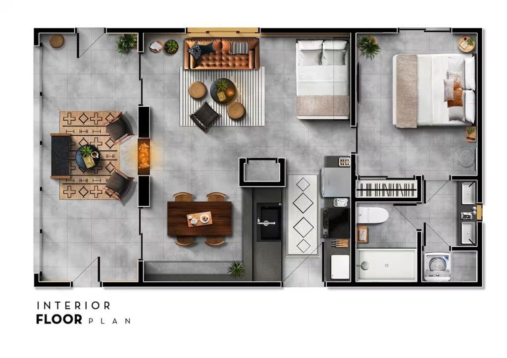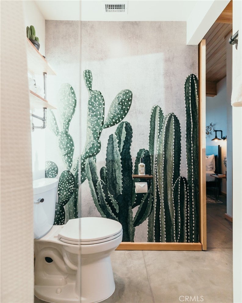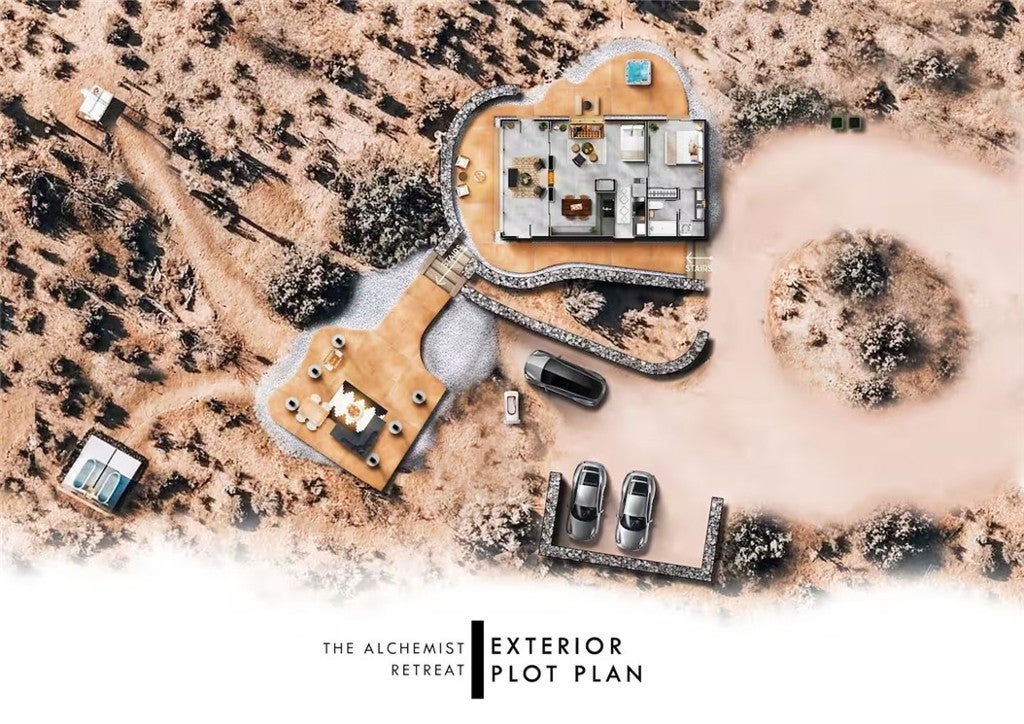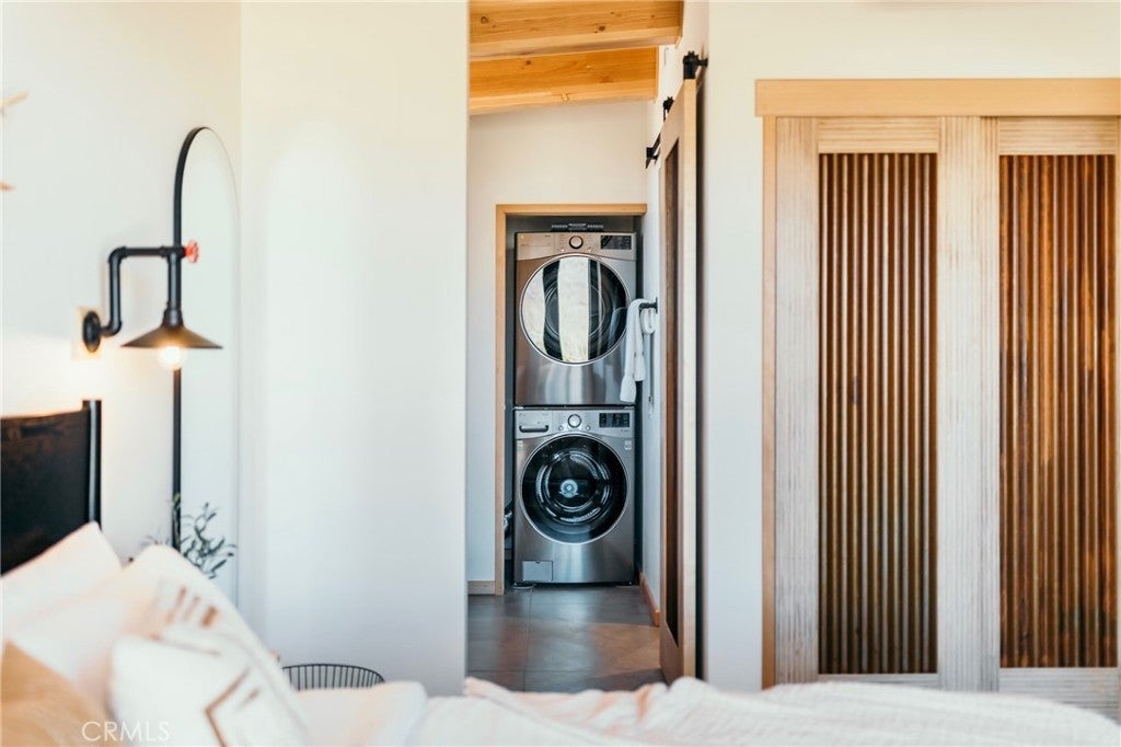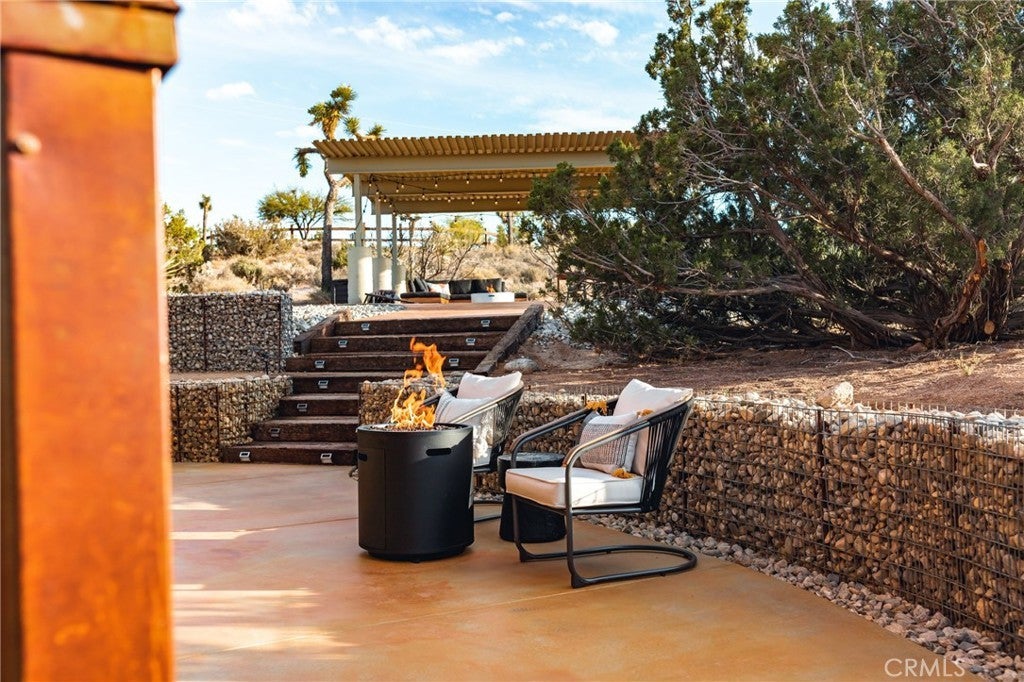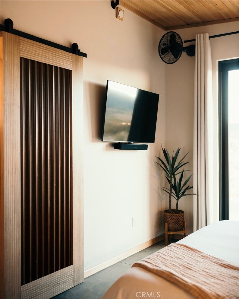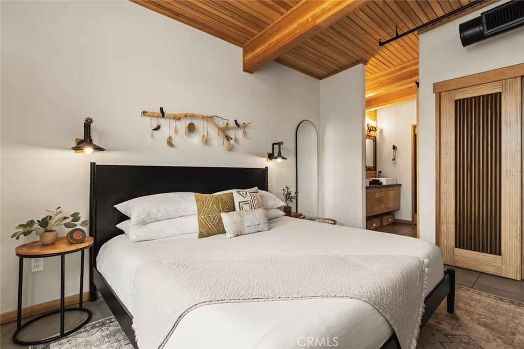 The Alchemist Retreat is a fully custom-designed modern desert cabin located in Yucca Valley, just minutes from Joshua Tree National Park. Built in 2021 and completed in 2022, this architectural gem blends rustic charm with high-end finishes and incredible panoramic desert views that can be enjoyed from nearly every corner of the property. Crafted with intentional detail, the home features 1x4 wood-paneled ceilings and walls, hand-laid brick, matte concrete floors, exposed ducting, custom handmade cabinetry and shelving, and a striking floor-to-ceiling mural. The open concept layout includes a kitchen outfitted with Big Chill retro appliances, a dining area with custom overhead lighting and beverage cooler, and a cozy living room with a queen-sized BredaBeds Murphy bed, 65” Samsung Smart TV, electric fireplace, ceiling fan, and Sonos surround sound. The attached sunroom expands the living space with an electric garage door, additional Smart TV, fireplace, fan, and Sonos system. It’s perfect for seamless indoor and outdoor living with a view. The bedroom features a 50” Smart TV, ceiling fan, Sonos speakers, and direct access to a private hot tub patio. The spa-style bathroom includes a double vanity, walk-in shower, and stacked washer and dryer. Outdoor spaces are designed for relaxation and entertaining, including a covered patio with electrical setup, a cowboy tub deck with waterline and shutoff valve, a sunroom-adjacent patio, and a private hot tub patio. Each area is positioned to take full advantage of expansive desert vistas and stargazing opportunities. Additional upgrades include paid solar panels and a Tesla charger. This home is not only a designer showpiece but also a proven income generator, consistently producing over $100,000 annually with over 300 five-star reviews on Airbnb. Ranked in the top 1% of homes in the Joshua Tree and Yucca Valley area, The Alchemist Retreat offers a rare opportunity to own a high-performing short-term rental or a luxurious desert escape.