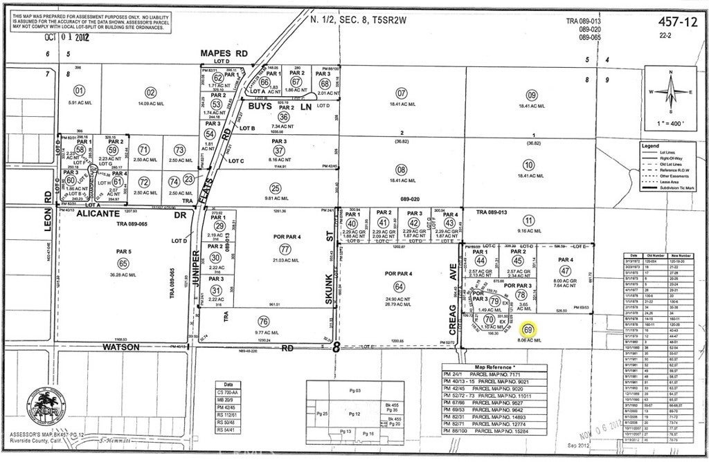 8.06± ACRES OF VACANT LAND IN HOMELAND/JUNIPER FLATS – SOUTHWESTERN RIVERSIDE COUNTY, CA. Seize this rare opportunity to own 8.06± acres in the rapidly growing community of Homeland. This expansive parcel has 331’± of frontage on Creag and extends 860’± along the southern boundary, offering ample space for your custom home, ranch, or private retreat. Located in a propane and septic tank area, utilities are serviced by Southern California Edison (SCE) and Eastern Municipal Water District (EMWD). WATER in street. The water line runs along the frontage on Creag Ave. The water Main is on the Southwest corner of property. EMWD owns a water tank easement that is 1.10+- acres, located on the Northern boundary, approximately 110'+- from frontage. The chain-linked fenced area is parcel -070 and is one-half of the water tanks easement, while the adjacent lot to the North accommodates the other one-half. Sewer is approximately 1,300'+- to the South on Creag Ave. With NO HOA, you have the freedom to bring your RV, camper, trailer, or 5th wheel and start enjoying your land while planning your future build. This huge property features rolling terrain, native shrubs, breathtaking rock outcroppings, and wide-open spaces—ideal for those looking to escape the hustle and embrace a rural lifestyle. Whether you envision a horse ranch, farm, orchard, vineyard, or a self-sustaining homestead, there’s plenty of room for stables, barns, garages, sheds, patios, and gardens. Outdoor enthusiasts will love the ATV-friendly roads, hiking trails, and endless exploration opportunities in the surrounding hills. Meanwhile, the property remains conveniently minutes from local schools, parks, churches, post office, convenience stores, and essential services. Perfectly positioned in the heart of Riverside County, this land offers easy access to major highways including I-215, I-15, Hwy 74, Hwy 79, and the 10, 60 & 91 freeways, making it a smooth commute to Los Angeles, Orange, San Bernardino, and San Diego Counties. Plus, enjoy proximity to shopping centers, malls, casinos, lakes, mountains, and desert recreation. OWNER MAY CARRY! Don’t miss out on this incredible opportunity to invest in Southern California land with endless potential!