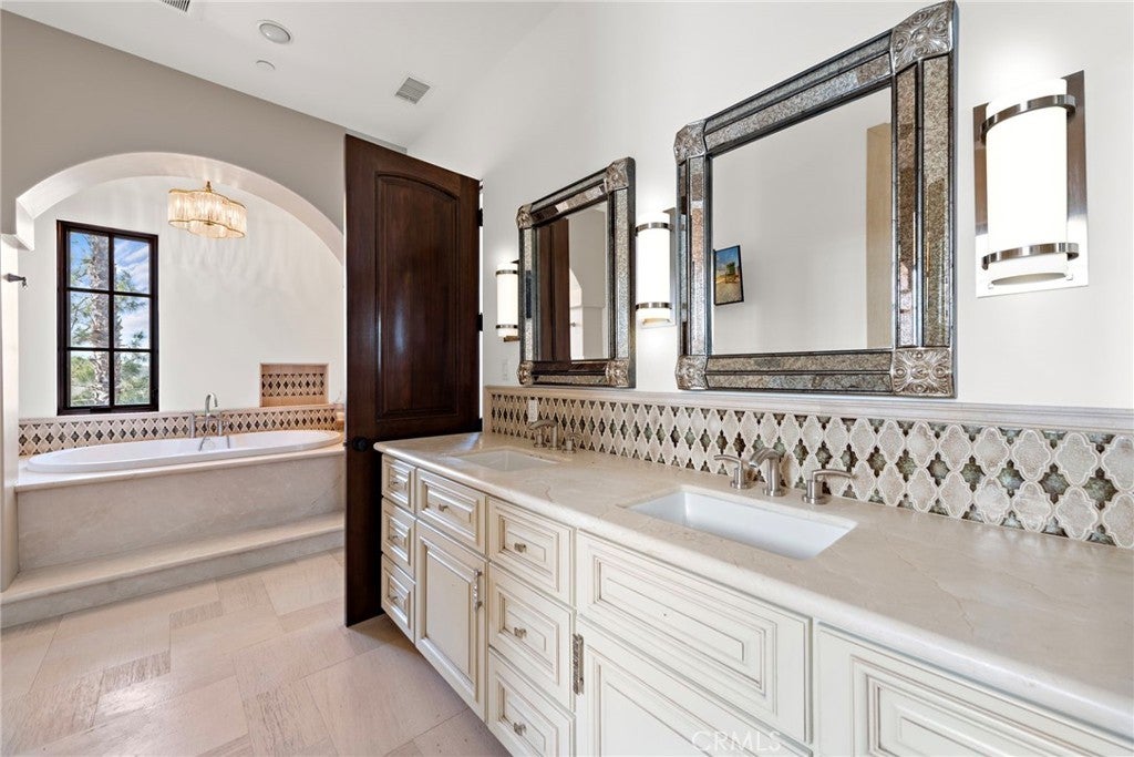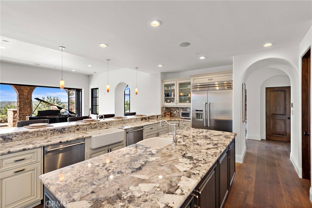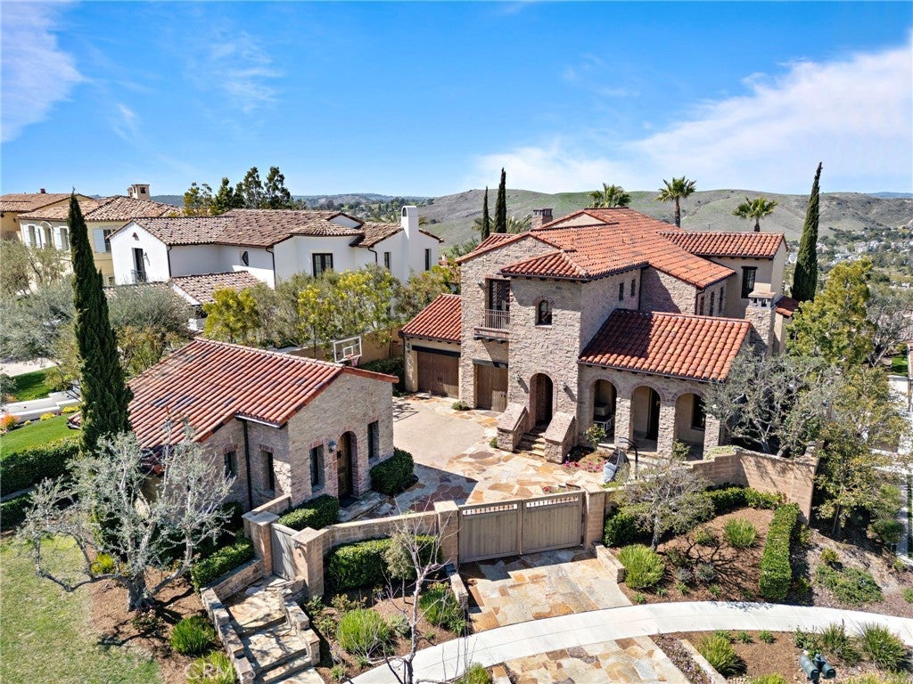 Enjoy the rewarding lifestyle you aspire to at this rare custom estate sequestered on a cul-de-sac behind the guarded gates of Covenant Hills at Ladera Ranch. Positioned on a large homesite to take full advantage of its expansive hill, valley and Boundless California Sunset Views, the distinguished five- bedroom, five- and one-half-bath residence extends across approximately 5200 square feet. Nurtured to Perfection Through Imagination & Appointment, Come Marvel as You Step Back in Time Through the Iron Gates to Quarried-Rock Walkways Lined with Olive and Citrus Trees & Tranquil Water Features. Unparalleled Custom Amenities: 5 En-Suite Bedrooms, Separate Detached En-Suite Casita, Exquisite Great Room Overflowing to Brick & Stone Archways Accented w/ Sand Blasted Wood Beam Loggias, Bi-Folding Doors to Seamless In-Door / Out-Door California Living, Raised Jacuzzi w/ Tahitian Plastered Salt Water Pool, Superb Kitchen w/ Dual Farm Sinks & Dishwashers, Custom Fit Thermador 48" Refrigeration & Ovens, Generous Island & Hand Finished Cabinetry, Quarried Rock Bar Open to Amazing Great Room Accented w/ Built-In Book Case, Distressed Wood Floors Throughout, 8 Zone Surround Sound w/ Whole House Monitoring & Single App Control & Warming Fireplace. Primary Suite w/ French Door Walk-Out Patio Finished w/ Quartz & Iron Rails, Primary Bath w/ Unsurpassed Limestone Finishes & Luxe Dual Motor Jacuzzi Tub, Secondary Bedrooms Each Outfitted w/ Quaint Balconies & Finished Closets. Don't Miss This Opportunity to Embrace a Rare CA Lifestyle In Gated Covenant Hills.