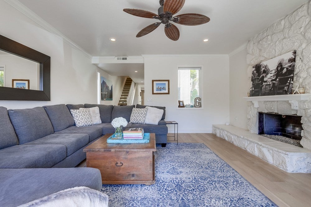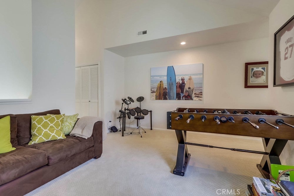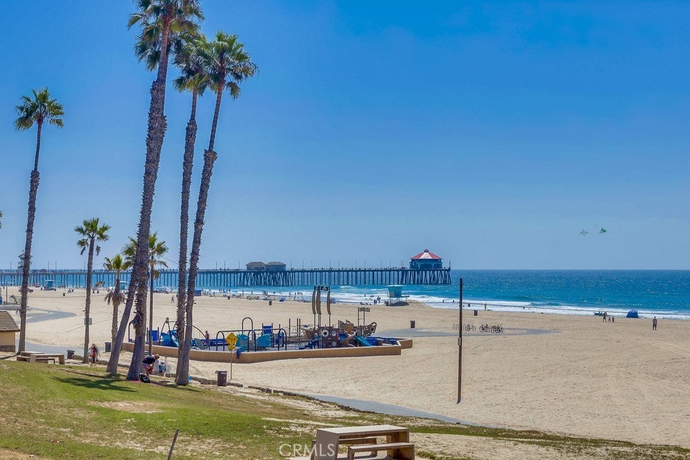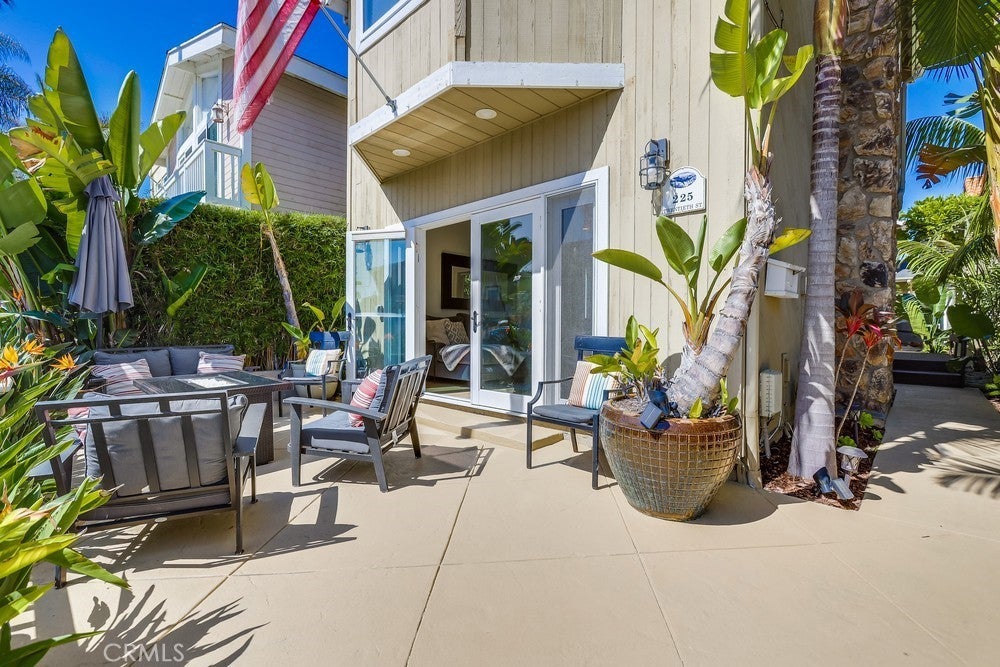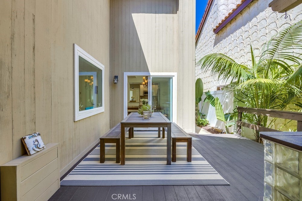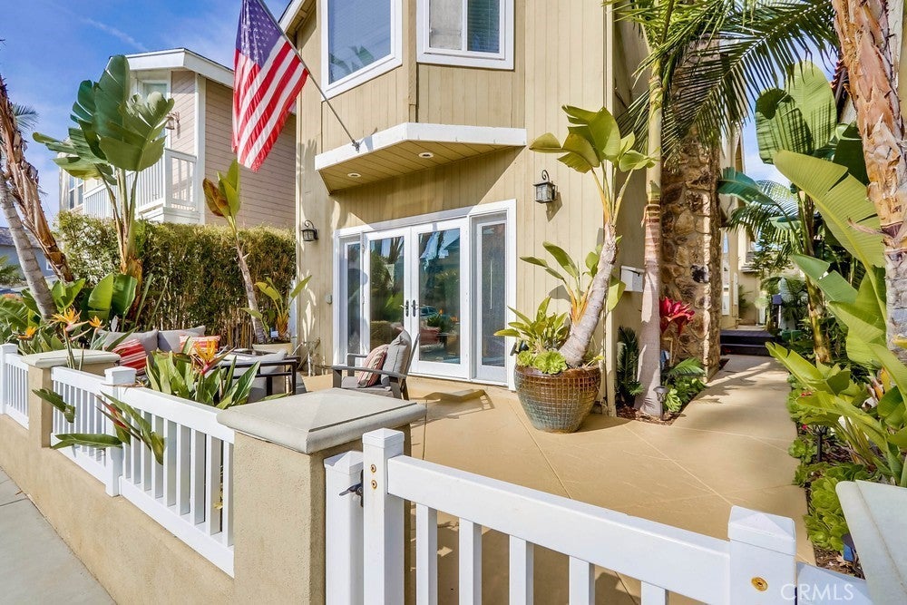 FULLY FURNISHED beach rental, steps to the sand! Available as a monthly rental. Perfect coastal retreat - "tropical feeling" beach home with in-ground private hot tub, located less than 2 blocks to the sand in Huntington Beach. Upgraded home with distressed hardwood floors, recessed lights, double-pane windows and gourmet kitchen. Kitchen has large center island, chiseled stone counters and stainless steel appliances, custom cabinets, wine fridge and more. French doors open to front patio - perfect for morning coffee or an afternoon cocktail. Enjoy the side patio for private dinners outside. Additional outdoor seating area off kitchen with built-in hot tub and perfect for hosting BBQ's. Three bedrooms upstairs PLUS bonus room/loft area. Half bath downstairs, 2 full bathrooms upstairs. Large Master Bedroom with vaulted ceilings and recently remodeled master bathroom with dual vanities. Laundry room upstairs. 1.5 blocks to the beach. 3 blocks to Dog Beach. Short walk/bike ride along the beach path to HB pier, restaurants and the new Pacific City. Move right in and enjoy the beach lifestyle.