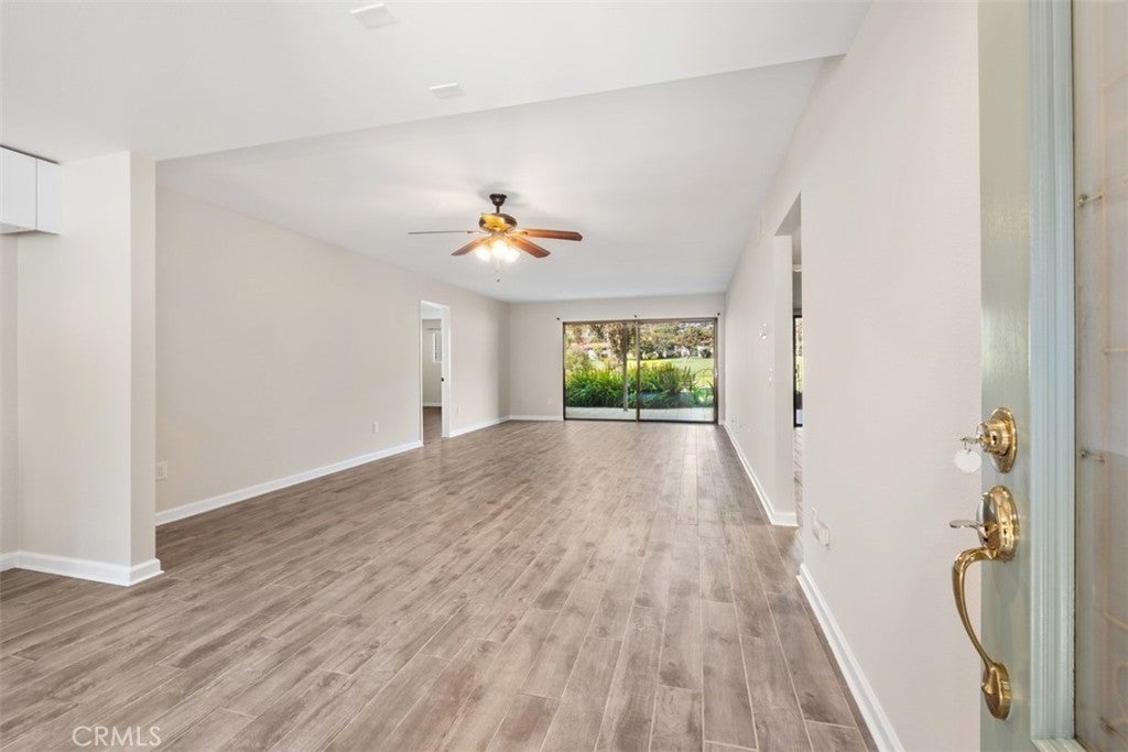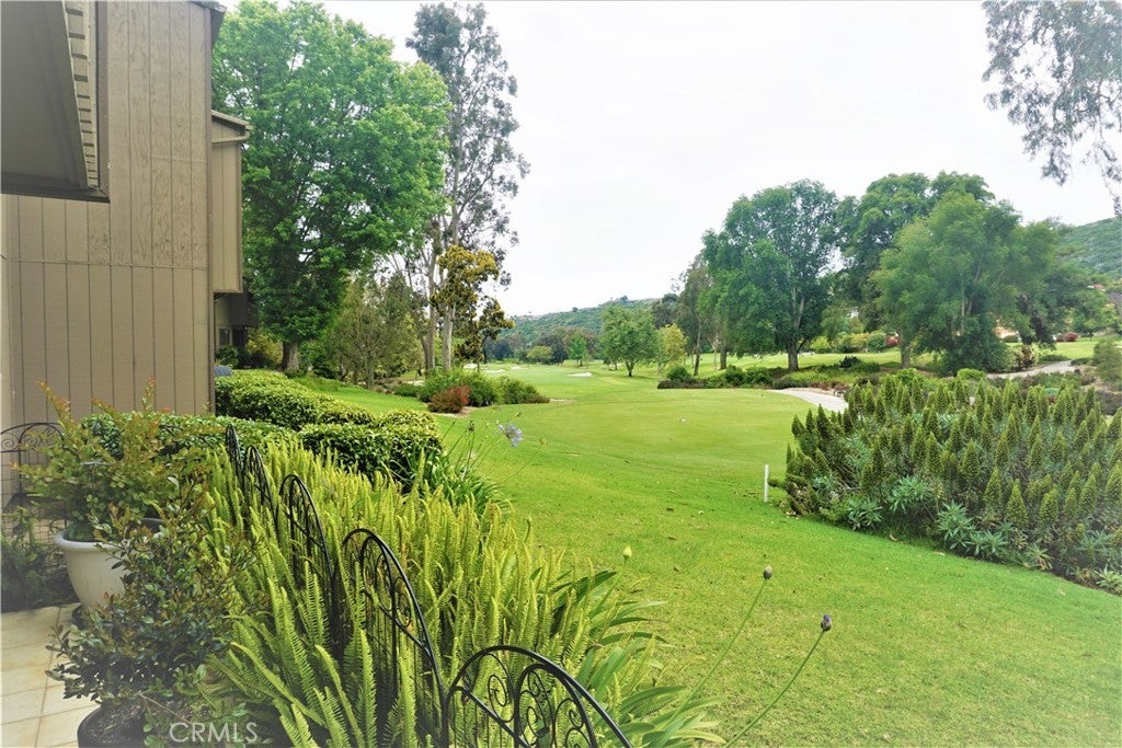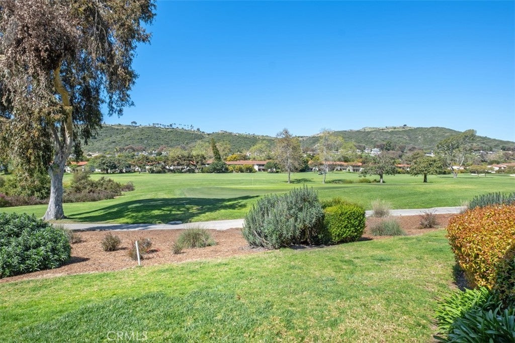 Welcome to Sunshine and Fairways on the El Niguel Golf Course. As you walk in the front door you will be captivated by the stunning views of the fairways and beyond. The home has been remodeled to be open and inviting. Wood like tile floors run throughout the home. The kitchen has quartzite counters with modern cabinets. The primary has views and private access to the covered patio as well as a private bath. One of the secondary bedrooms also has outside access and views. All 3 bedrooms are large with great storage. Off the great room is an oversized covered outdoor space and patio. Off the patio is a private laundry room. The property has a XL oversized 2 car garage, detached, but very close. The HOA includes water and trash as well as many amenities. You can enjoy the sparkling pool and spa, BBQ and picnic areas within the East Nine community. You can venture out and explore the walking trails that will take you to the Waldorf, the Ritz, and the beach. Downtown Dana Point and Lagna Beach are a short drive away. Jump on a trolley to explore all of the restaurants and activities. If you are a golfer, Monarch Beach Golf is close and El Niguel Country Club is your backyard. The View, you are looking a little to the right at the #2 green and to the left the #3 tee box. This home has been virtually staged.