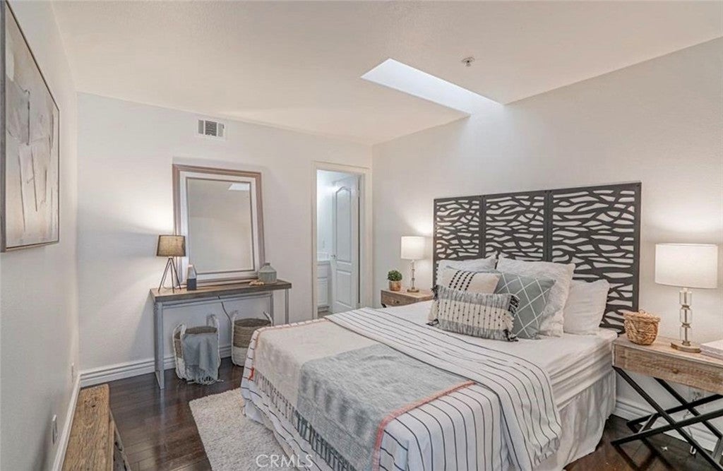 Nestled in the highly sought-after Cathedral Pointe community, this beautifully updated two-bedroom home features dual master suites—perfect for a teenager, extended family member, or roommate. Located on a quiet interior lot within a private gated enclave of just 25 homes, it offers a detached feel with a private garage, top-rated Huntington Beach schools, and close proximity to the beach. The pleasant curb appeal of this French-style home, from the front porch to the arched brickwork and classic symmetry, is always inviting. Entering the residence, this popular floor plan offers a dual master bedroom on the entry level with a full bath. As you make your way up to the second level, there is a nicely sized living room with a gas fireplace and a herringbone marble façade, a ½ bathroom, laundry closet with 220V hookups, dining space, and a mix of hardwood and tile flooring throughout the main living areas.The efficient layout flows into a well-appointed kitchen with white cabinets, quartz countertops and subway tile backsplash, recessed lighting, and stainless steel appliances. Just off the kitchen, sliding doors lead to a nicely sized patio, perfect for morning coffee, intimate gatherings, or weekend BBQs. Heading upstairs, the second primary suite features high ceilings, 2 closets with mirrored closet doors, an en-suite full bathroom with dual sinks, a step-in shower with separate soaking tub, and access to the top-level balcony. Perfect for taking in daily sunsets, watching the famous Huntington Beach Air Show and the night skies! Additional highlights include neutral colored paint throughout, updated finishes, scraped ceilings, and central heating. Enjoy the amenities Cathedral Pointe has to offer including a newer community pool and spa! Close by, Helme Park and playground offer space for walking, playing with kids and pets, or simply enjoying the outdoors. This interior tract home is also close to award-winning schools, a short commute to world-class beaches, and the fine dining, entertainment, and shops at Main St, Pacific City, Bella Terra, Costco, Trader Joes and Whole Foods. Also nearby are HB Central Park, the Library and Senior Center, HB Sports Complex, the Equestrian Center, Meadowlark Golf Course, South Coast Plaza, the OC Fair Grounds, and much more! Easy access to major freeways and PCH. Experience the best of California coastal living all year round!