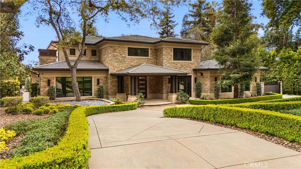 This stunning, one-of-a-kind estate, crafted by Mur-Sol Construction and designed by Robert Tong, is located in the exclusive Upper Rancho area of Arcadia. This incredible home is fashioned in the Prairie style with hints of art deco and influences of Frank Lloyd Wright. The design and styling are exquisite in every way, featuring a fabulous floor plan with generous use of marble, walnut flooring, and custom lighting with theatre, guest and maid suites downstairs. The expansive upstairs showcases a family room loft with wet bar and beverage center, gymnasium with sauna, spacious master suite with fireplace, balcony, walk-in closet, beverage center and mini-fridge. Additional features of this incredible home include a gourmet kitchen with top-of- the -line Wolf and Sub Zero appliances, wok kitchen, wine cellar and coffered ceilings in the family room, state-of-the-art theater, wood-paneled library with built-in bookshelves, and an elevator. The outside grounds boast a covered patio with outdoor kitchen and fireplace, sparkling salt water pool and spa, and incredible landscaping. There is also a four car, oversized, attached garage.