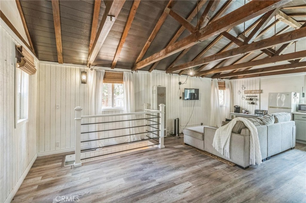 Unlock the full potential of this incredible cabin in the Green Valley Lake Community, where lake rights and endless amenities await. With title showing 432 square feet, but feeling like a much larger 750 square feet, this property offers ample space to live, play, and relax. Recent renovations have transformed the interior and exterior with a newer roof, modern kitchen, and stylish finishes. Make the most of lake life with activities like swimming, fishing, and boating, and enjoy the convenience of being just 20 minutes from Snow Valley. Lease considered.