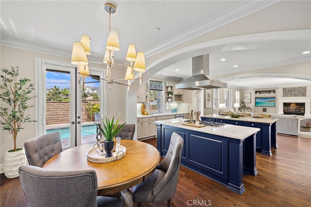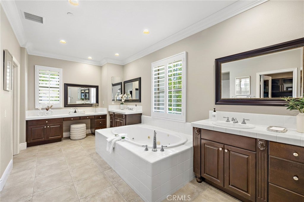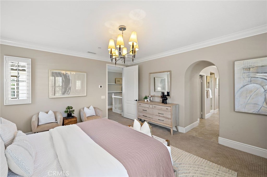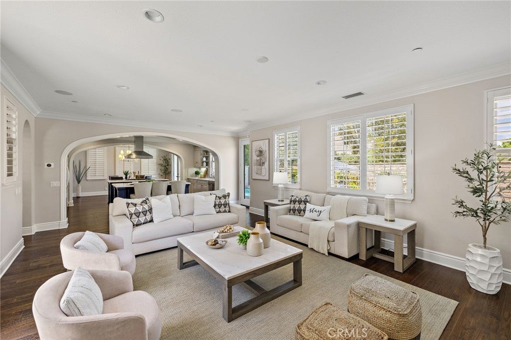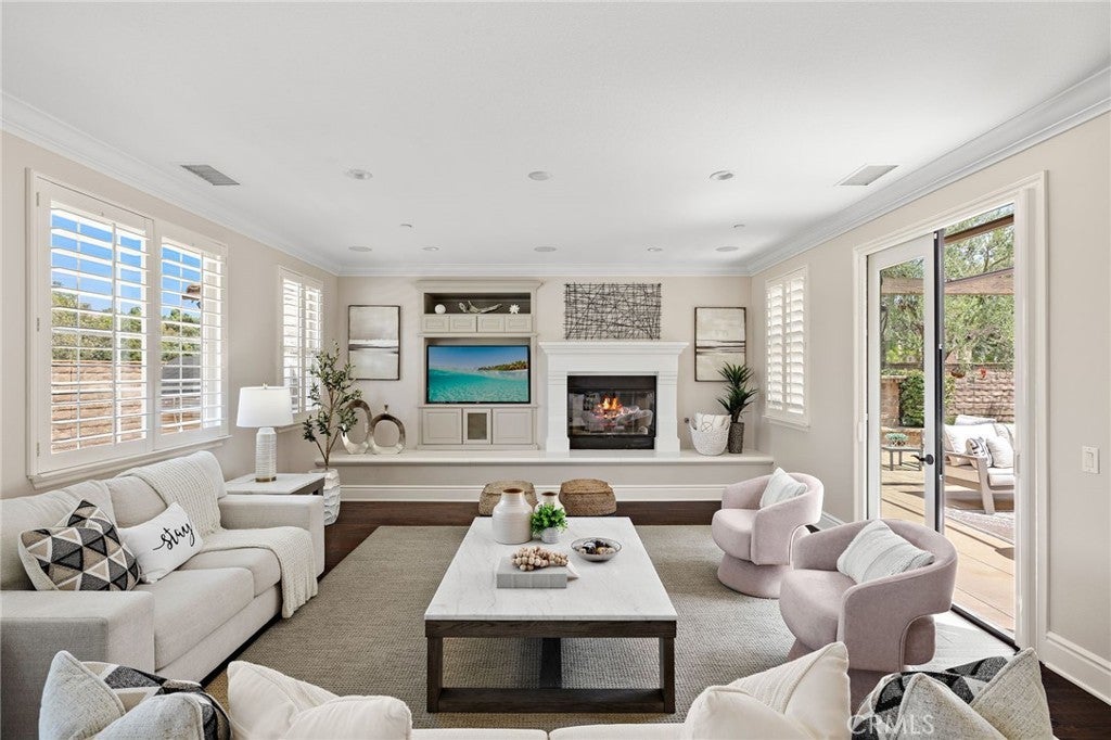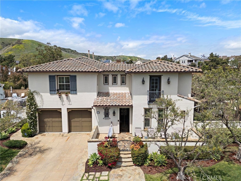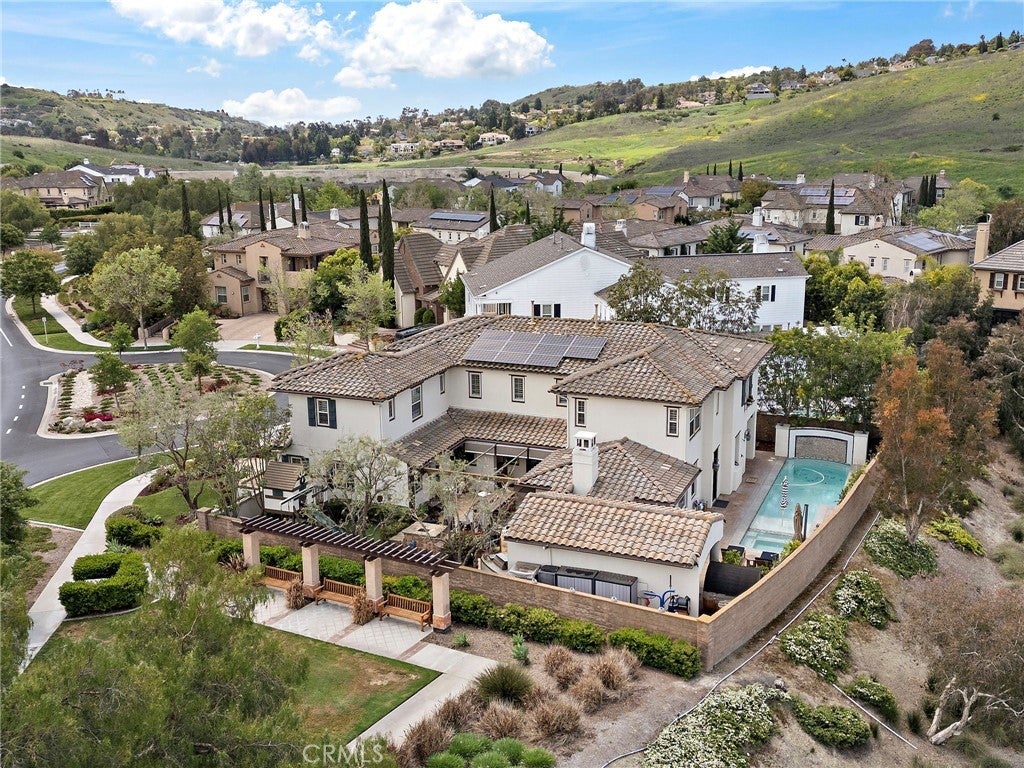 Located in the prestigious guard-gated Covenant Hills enclave of Ladera Ranch, this former model home in Montanez exemplifies luxury living. Practical updates include owned solar, recent whole house repipe, newer water heater, new water softener/filtration, outdoor kitchen loggia and your own private pool just in time for Summer! Set on a prime corner lot along a quiet cul-de-sac, the residence offers approximately 3,900 square feet of refined space, including 5 bedrooms and 4.5 bathrooms—with a convenient main-level guest suite. Thoughtfully designed for both comfort and style, the open floorplan is filled with natural light and features rich hardwood floors, custom woodwork and lighting, a family room with built-in media center and fireplace, and multiple French doors that seamlessly connect indoor and outdoor living.The remodeled chef’s kitchen is a standout, boasting dual islands with Calacatta marble countertops, high-end cabinetry, a sunny breakfast nook, and premium stainless steel appliances including a built-in refrigerator. Upstairs, the private primary suite is a serene retreat, complete with finished dual walk-in closets, a spa-inspired shower, and a jetted soaking tub. Enjoy resort-style living in your own backyard oasis with pool, spa, central courtyard, and multiple entertaining spaces. A stunning outdoor loggia is equipped with a stone fireplace, built-in BBQ, and a full gourmet kitchen—perfect for year-round entertaining. Built to impress, this model home showcases custom upgrades, professional design, and one of the best locations in the neighborhood. Walk to several neighborhood amenities including the red bucket water park, skate park, frisbee golf course, several pools, walking trails and local award winning schools. Don’t Wait!