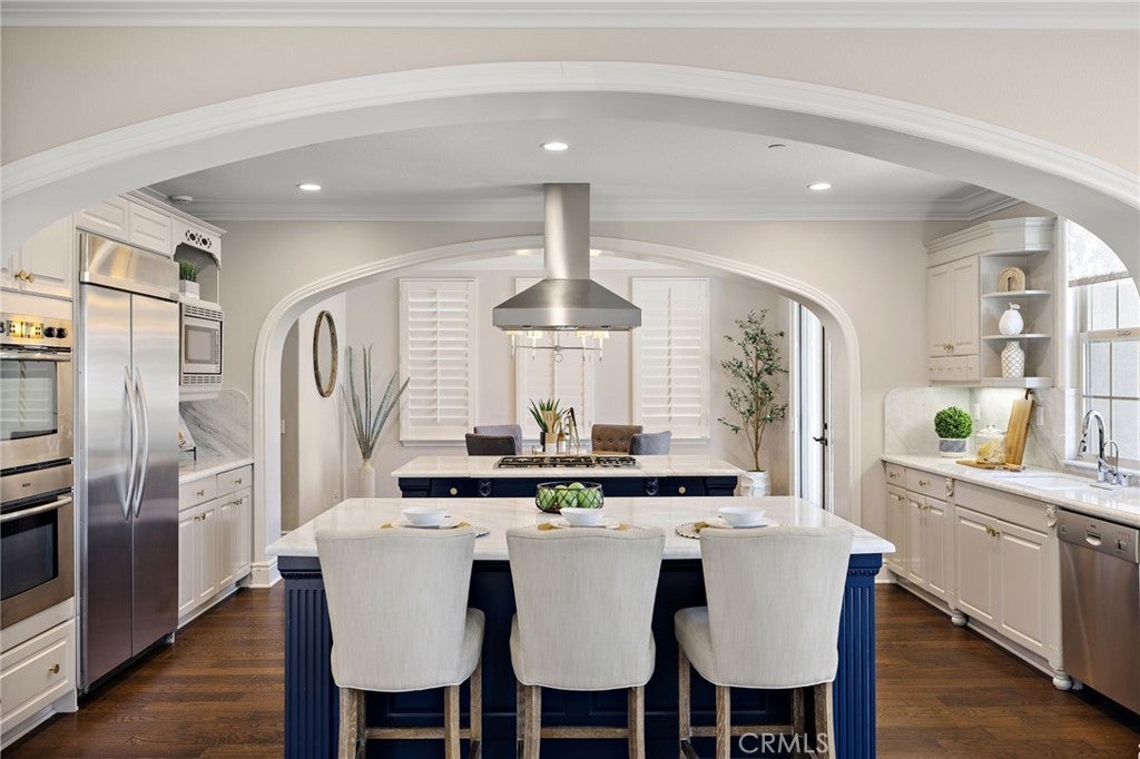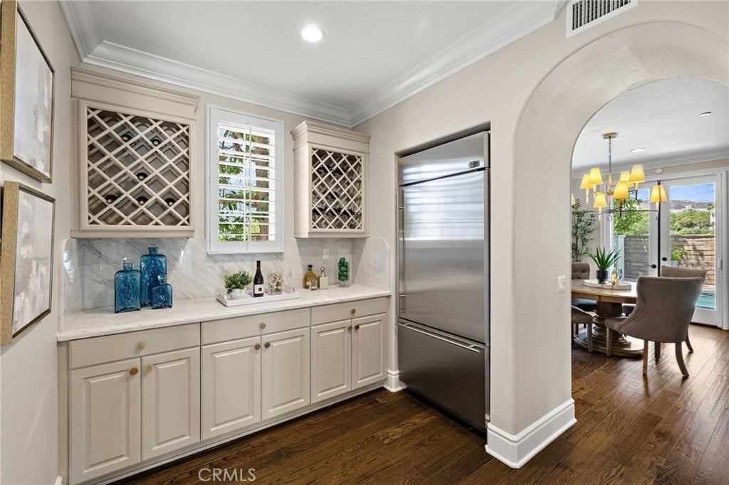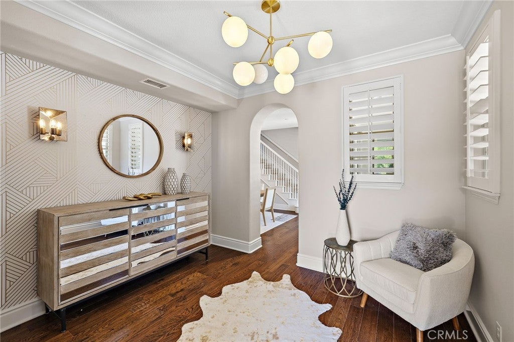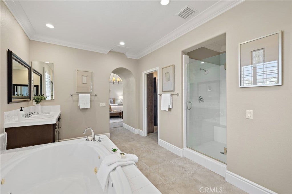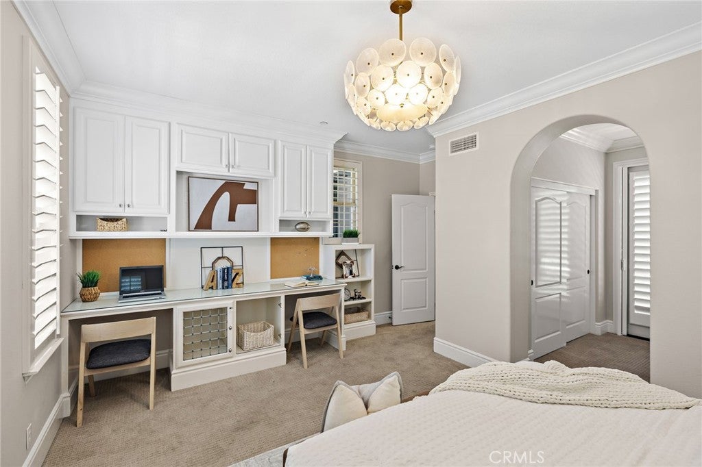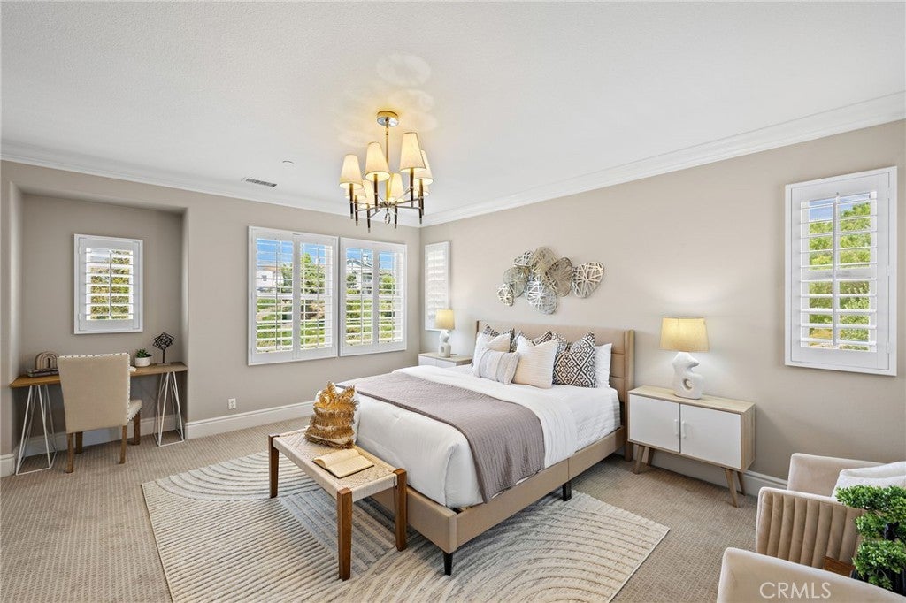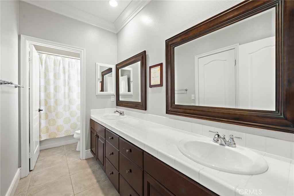 Located in the prestigious guard-gated Covenant Hills enclave of Ladera Ranch, this former model home in Montanez exemplifies luxury living. Practical updates include owned solar, recent whole house repipe, newer water heater, new water softener/filtration, outdoor kitchen loggia and your own private pool just in time for Summer! Set on a prime corner lot along a quiet cul-de-sac, the residence offers approximately 3,900 square feet of refined space, including 5 bedrooms and 4.5 bathrooms—with a convenient main-level guest suite. Thoughtfully designed for both comfort and style, the open floorplan is filled with natural light and features rich hardwood floors, custom woodwork and lighting, a family room with built-in media center and fireplace, and multiple French doors that seamlessly connect indoor and outdoor living.The remodeled chef’s kitchen is a standout, boasting dual islands with Calacatta marble countertops, high-end cabinetry, a sunny breakfast nook, and premium stainless steel appliances including a built-in refrigerator. Upstairs, the private primary suite is a serene retreat, complete with finished dual walk-in closets, a spa-inspired shower, and a jetted soaking tub. Enjoy resort-style living in your own backyard oasis with pool, spa, central courtyard, and multiple entertaining spaces. A stunning outdoor loggia is equipped with a stone fireplace, built-in BBQ, and a full gourmet kitchen—perfect for year-round entertaining. Built to impress, this model home showcases custom upgrades, professional design, and one of the best locations in the neighborhood. Walk to several neighborhood amenities including the red bucket water park, skate park, frisbee golf course, several pools, walking trails and local award winning schools. Don’t Wait!