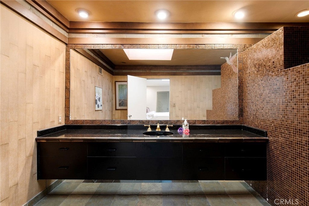 Welcome to this one-of-a-kind mid-century modern estate, tucked behind private gates in the prestigious hills of Cowan Heights. Set on nearly an acre, this single-level 4-bedroom, 3.5-bath residence is the lowest-priced home in Cowan Heights, offering a rare opportunity to build equity while enjoying a private, resort-style lifestyle. Inside, walls of floor-to-ceiling glass flood the formal living room with natural light and frame serene garden views in every room of the house. At the heart of the home, the newly renovated kitchen—with high-end appliances and generous counter space—opens to the dining area and out towards the outdoor grill area. The primary suite is a tranquil retreat with vaulted ceilings, an oversized walk-in closet with direct laundry access, and a spa-inspired bath featuring a marble double-sink vanity and walk-in shower. A private office and two additional guest rooms provide space for work or relaxation. There are two additional bedrooms in the main level of the home. A standout feature is the detached guest house/ADU, complete with its own private driveway and parking. This fully independent space includes a living room, kitchenette, spacious bedroom with en-suite bath, and dedicated laundry—ideal for multigenerational living, guests, or rental income. The expansive grounds, originally crafted by a renowned landscape designer, feel like a living work of art. Meandering stone pathways lead to vibrant gardens adorned with handcrafted tiles from the property’s own operable kiln and stones collected from around the world. Discover whimsical bird aviaries, a tranquil koi pond, a chicken coop, and a flourishing greenhouse. For entertaining, enjoy a built-in BBQ bar with an authentic wood-fired pizza oven, then cool off in the resort-style pool and spa or savor golden hour on the elevated sun terrace framed by dramatic architectural pillars. This is more than a home—it’s a once-in-a-lifetime lifestyle experience where privacy, artistry, and income potential converge. Opportunities like this—nearly an acre with a full ADU and plentiful parking in sought-after Cowan Heights!