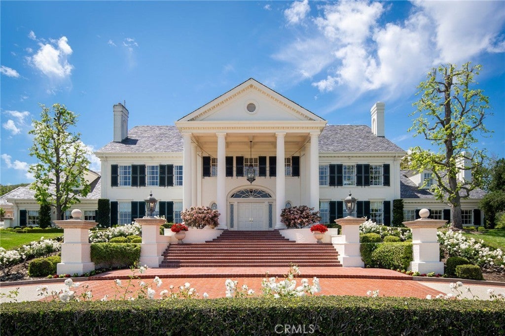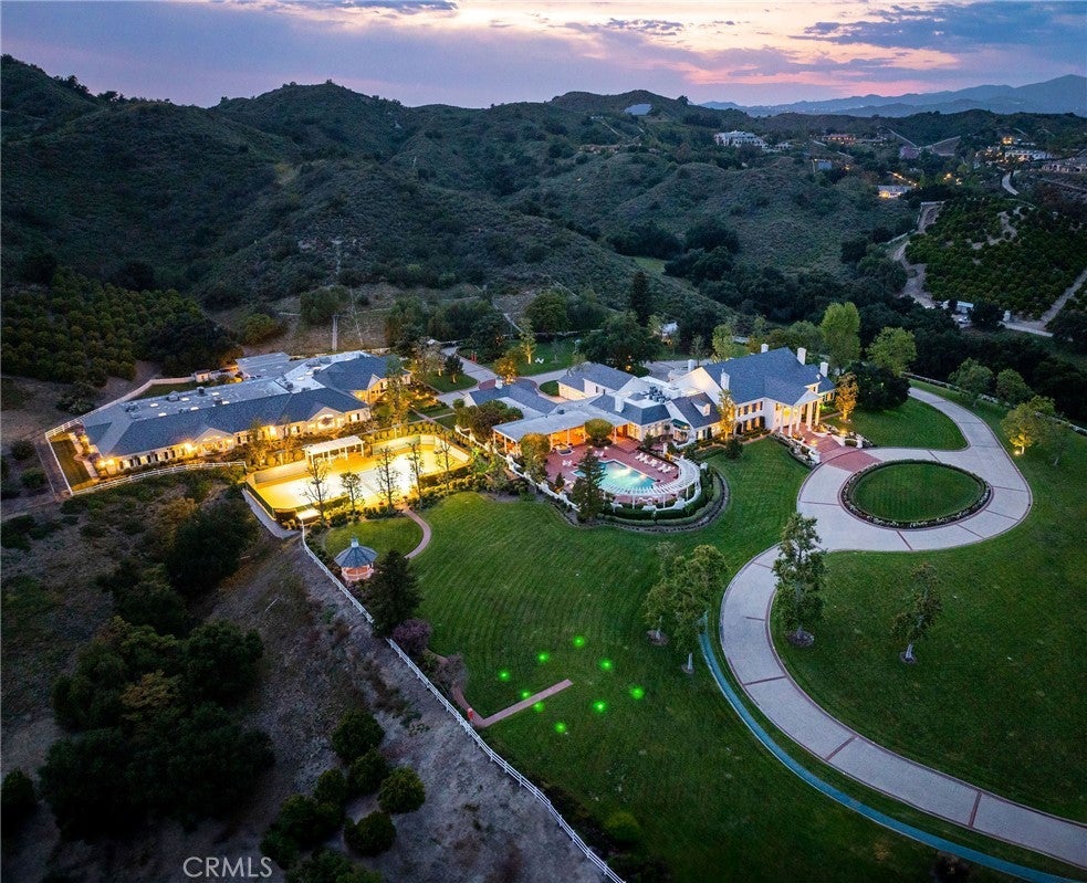 The Lyon Estate is a once-in-a-generation compound spanning 137 acres within Orange County's prestigious, private and gated community of Coto de Caza. Built in 1986 by US Air Force Reserve Commander and real estate magnate Major General William Lyon and his wife Willa Dean Lyon, this stately 21,000 sqft Georgian. The estate has welcomed many distinguished guests, including President Ronald Reagan and First Lady Nancy Reagan. This property commands breathtaking mountain views, balancing romantic, classical architecture with coastal California splendor. The Lyon Estate’s 3 level main residence encompasses 8 bedrooms, 11 baths and boasts meticulous design details at every turn, from its coffered wood ceilings and intricate crown moldings, to its ornate light fixtures, and walls of windows that frame gorgeous views of the grounds and views beyond. The long list of world-class features and amenities includes a private helipad, comprehensive equestrian facilities with a 10 stall barn and riding arena, a championship tennis court, a brick-clad lower-level wine cellar, and a playhouse outfitted with electricity and a TV. Three additional onsite guest houses provide ample space for hosting. One includes 2 bedrooms, 1 bath and a full kitchen, while the other 2 offer a single bedroom and a kitchenette. Manicured grounds present enchanting Italian villa-like gardens and seating areas alongside a resort-style pool, spa and a standalone pool house, which is complete with a dry sauna and dual bathrooms, each featuring changing rooms. A remarkable 23,679 sqft car museum comfortably accommodates 70 vehicles with a professional auto shop, recessed lift turntable, and wash station. Additional onsite amenities include two lakes used for irrigation, a scenic pond, a greenhouse, and 41 acres comprising 4,500 Valencia and Navel Orange trees orchards, which took root more than 30 years ago. The Lyon Estate presents dual, equally exciting opportunities: An incomparable residence with its full complement of facilities and, on the southern end of the property an approved, 64 acre development for 25 homes in a new gated enclave. Experience privacy and serenity with convenient access to Coto de Caza's members-only amenities and 2 golf courses, while enjoying proximity to Laguna Beach, Newport Coast, and the best of Orange County coastal living amidst exceptionally curated beauty and turn the page in a storied legacy. The Lyon Estate awaits its next chapter—and it's yours to write.