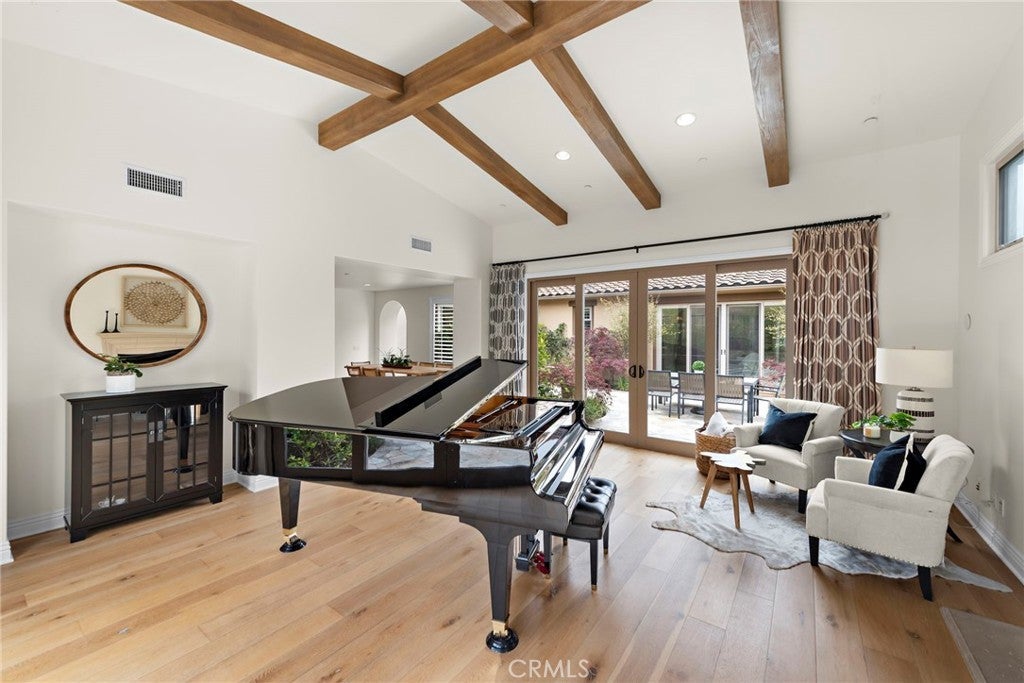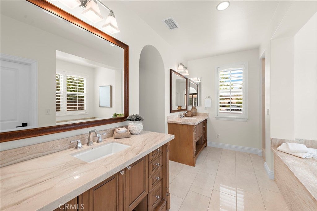 Located on an idyllic cul-de-sac with a central landscaped island in the newer Legacy Collection at Ladera Ranch’s guard-gated Covenant Hills, this impressive home rivals the luxury and craftsmanship of custom estates. Move-in ready, the expansive design is host to five ensuite bedrooms and five- and one-half baths in approximately 4,225 square feet of refined living space, ensuring ample comfort and privacy for you and your guests. Three bedrooms are located on the first floor, including a grand primary suite that opens to the home’s large courtyard and features a walk-in closet, soaking tub, separate shower and two vanities. Two additional suites join a spacious loft on the second level. An upscale aesthetic is infused throughout the home, emphasized by a formal entrance, a stunning foyer with dramatic staircase and glass doors leading to the courtyard, and a dining room for picture-perfect entertaining. Opening to the courtyard and the backyard, the light and open family room showcases a vaulted ceiling with open beams, an elegant fireplace and plenty of room for large gatherings. In the kitchen, top-of-the-line stainless steel appliances include a built-in refrigerator, double oven and a six-burner range with griddle and matching hood. Wood cabinetry, stone countertops, an oversized island, walk-in pantry, and full-tile backsplash are also featured. Archways, handsome millwork and stylish lighting fixtures complement plantation shutters, hardwood flooring, and granite and marble finishes throughout the residence, while a spacious laundry room and an attached three- car garage embellish convenience. With a scenic landscaped hill as a backdrop, grounds enjoy privacy while offering the beauty of mature landscaping, colorful plantings, and a large lawn the extends off the courtyard. At home garden enthusiast...this is perfect yard for you. Stone tile enriches patios that welcome outdoor relaxation and socializing with friends and neighbors. Built by Warmington Residential, The Legacy Collection is close to the exclusive Covenant Hills clubhouse, complete with swimming, tennis and much more. Community parks and miles of trails are nearby, and Ladera Ranch’s vibrant shopping centers, outstanding schools and phenomenal recreational attractions are minutes from home.