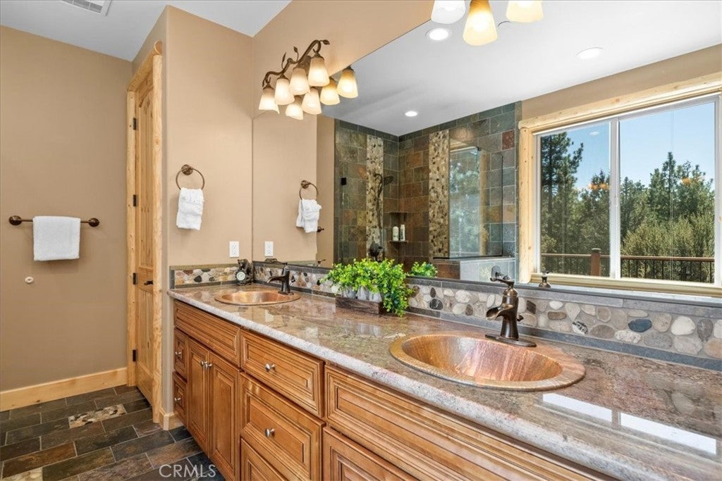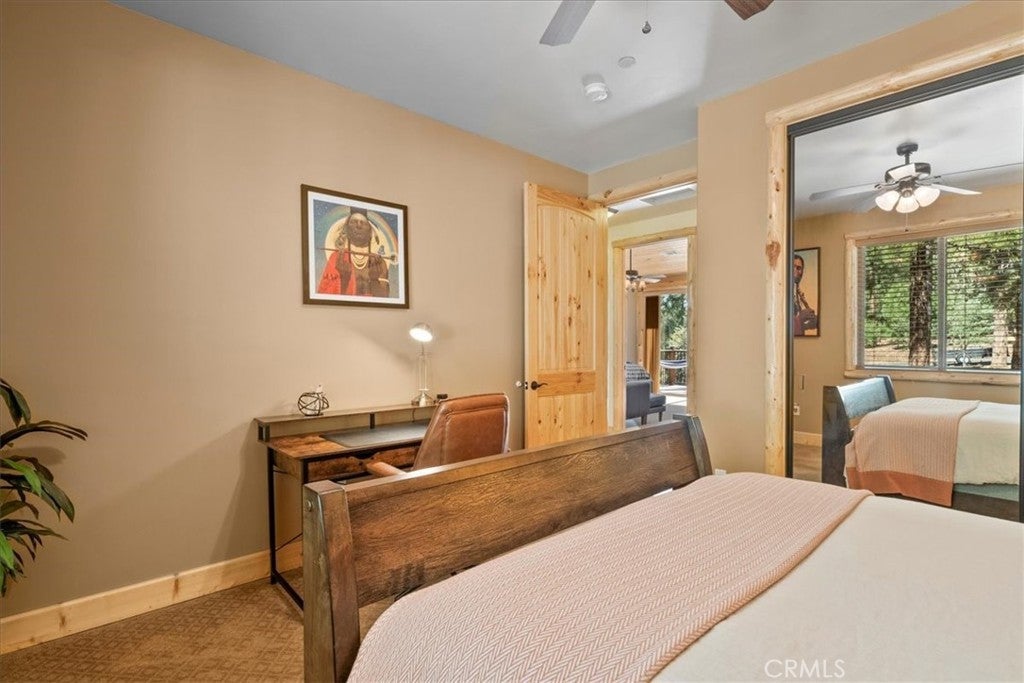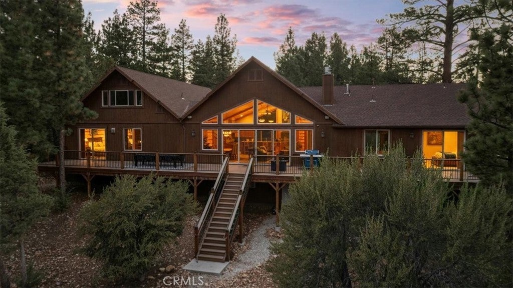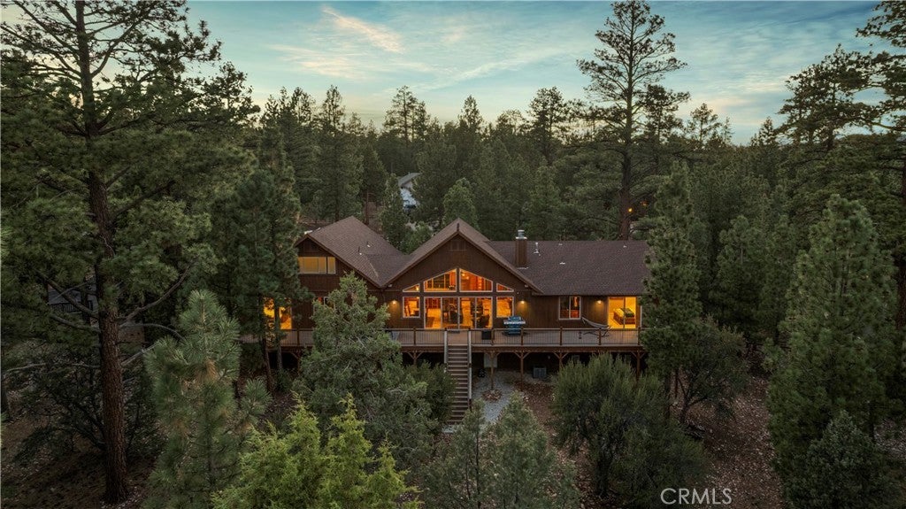 Stunning custom lodge-style home on 1.27 private acres in sought-after Meadowbrook Estates. Built in 2015, this 4,136 sq ft residence offers 4 to 5 bedrooms and 4.5 baths.Two spacious primary suites adorn separate wings of the home—each with spa-inspired en suite baths and private deck access. The great room greets you with vaulted wood-beamed ceilings, floor-to-ceiling windows, and a grand rock fireplace, creating a luxury Lodge style gathering space. The gourmet chef’s kitchen features Thermador appliances, natural-edge granite countertops, dual dishwashers, double ovens, wine fridge, casual bar height seating, and a giant walk-in pantry. A dedicated entertainment wing includes a game room, wet bar, full bath and a fully equipped 8-seat theater room with reclining chairs, projector, and sound system. The flex space of the entertainment wing with it’s full bath can double as additional guest quarters and the theater room could easily convert to an spacious 5th bedroom. Enjoy outdoor living on the expansive Trex deck with panoramic forest views—ideal for dining, relaxing, stargazing and roasting marsh mellows. Additional features: 3-car garage with EV charger, custom murals, and high ceilings, central A/C, Wi-Fi thermostats, surround sound, security system, extra large laundry/mudroom, and central vacuum. Nearly all furnishings can be included, making this masterpiece more than move-in ready. Ideal as a primary home, luxury vacation getaway, or income-producing rental/Air BNB.