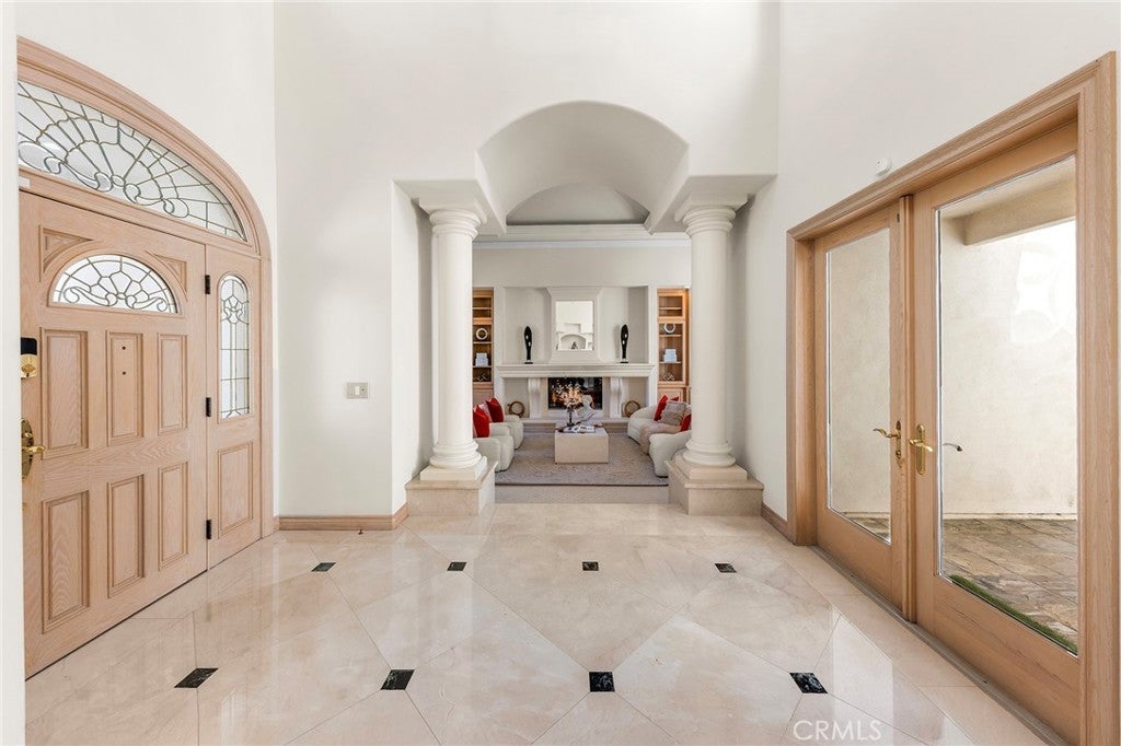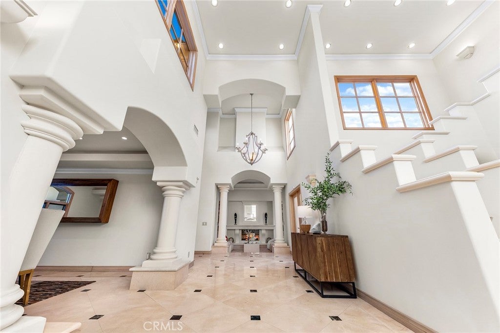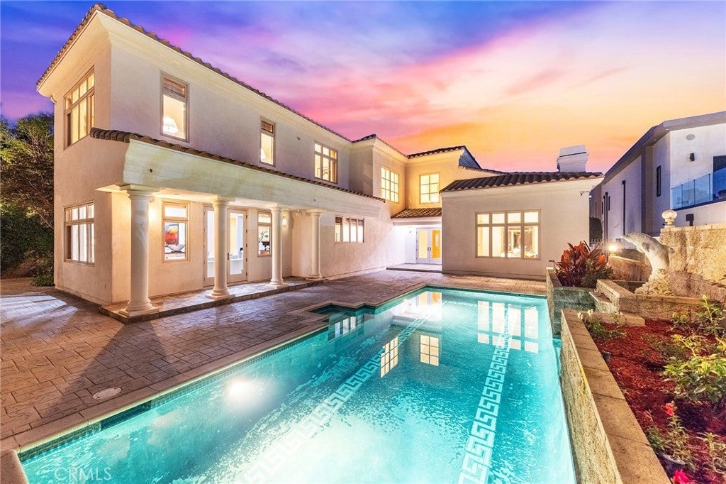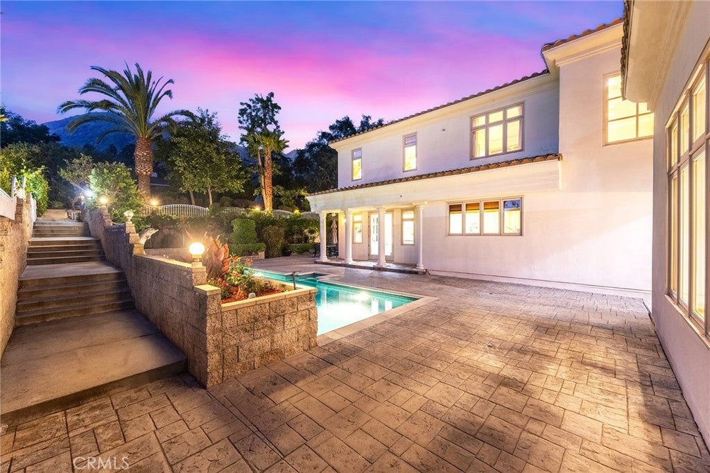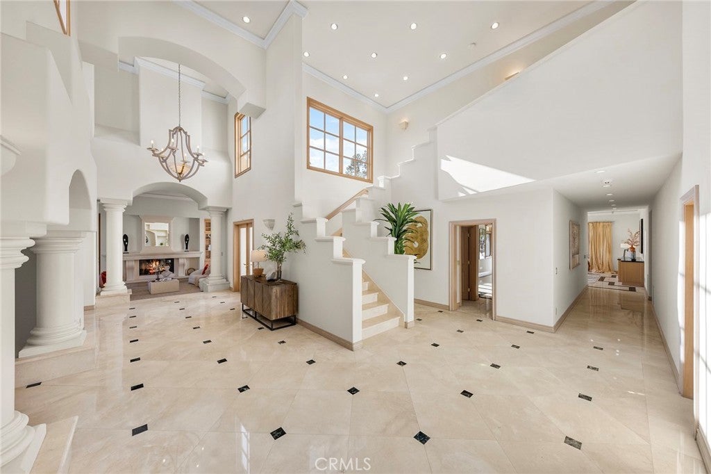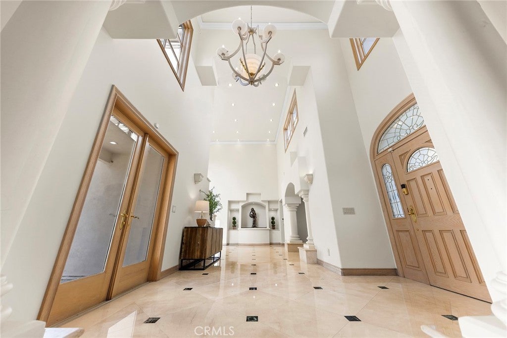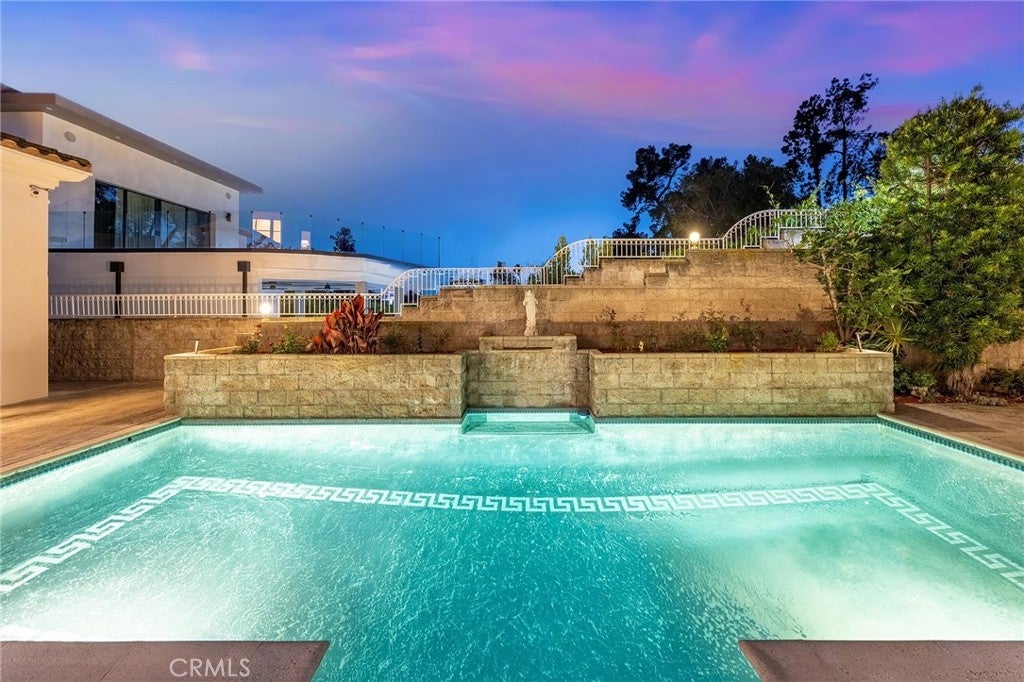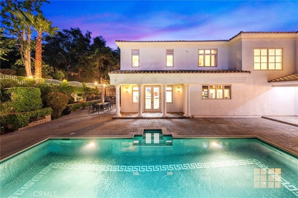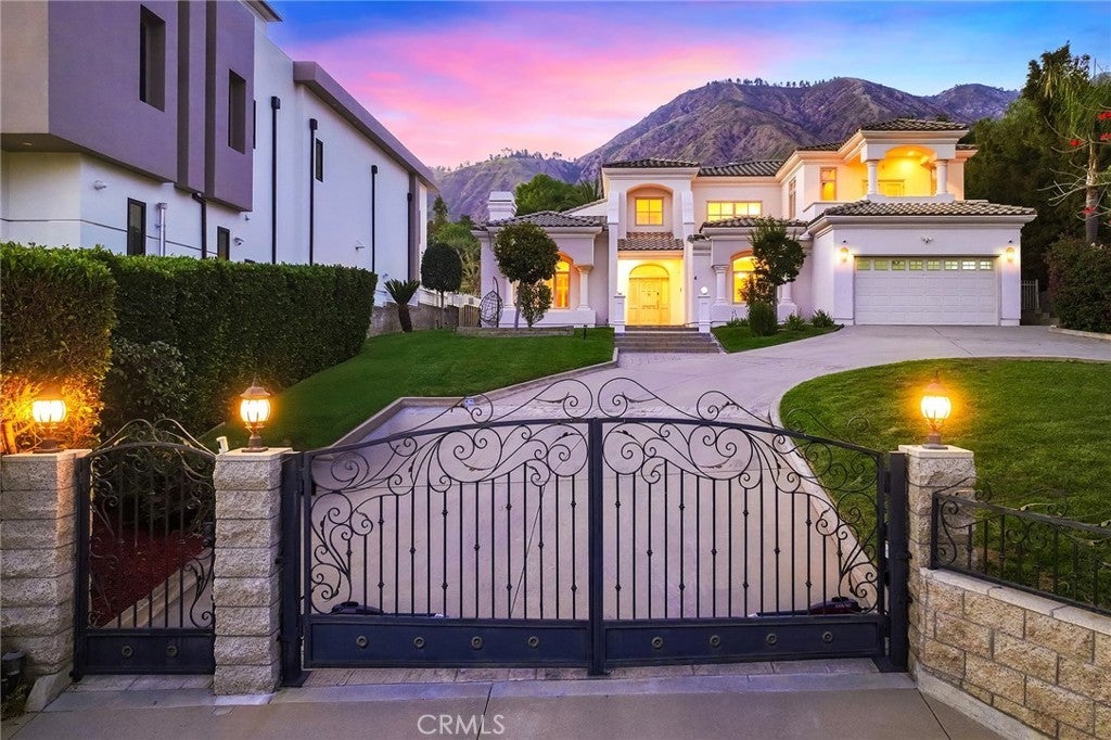 Designed by renowned Architect Syrus Mobayen, this custom built Mediterranean estate spans over 4,300 square feet with 4 bedrooms, 4 baths sited on a nearly half acre lot! Upon entering, you will be greeted with soaring ceilings and the gorgeous marble floors, The sunken living room features a cozy sandstone fireplace, built -in shelving. Luxury grand dining room with marble flooring and newly installed Crystal light. The chef’s kitchen is a culinary dream, complete with granite countertops, custom cabinets, Viking stove, built-in microwave, walk-in pantry, wine cooler, breakfast bar, inviting family room with built-in entertainment center. The lavish master suite with sitting area, fireplace, spa tub for two, and walk-in closet with built-ins. A second en suite bedroom features a private balcony with stunning city views, plus two main floor bedrooms. Outside, enjoy resort-like amenities: a sparkling heated pool, BBQ area, Outdoor fireplace, and a tranquil backyard lined with fruit trees and a gazebo. With a three-car garage, newly Soft water system and drink water system, central vacuum, and premium finishes throughout, this home is truly exceptional!