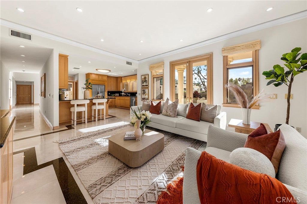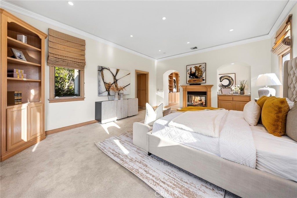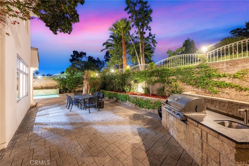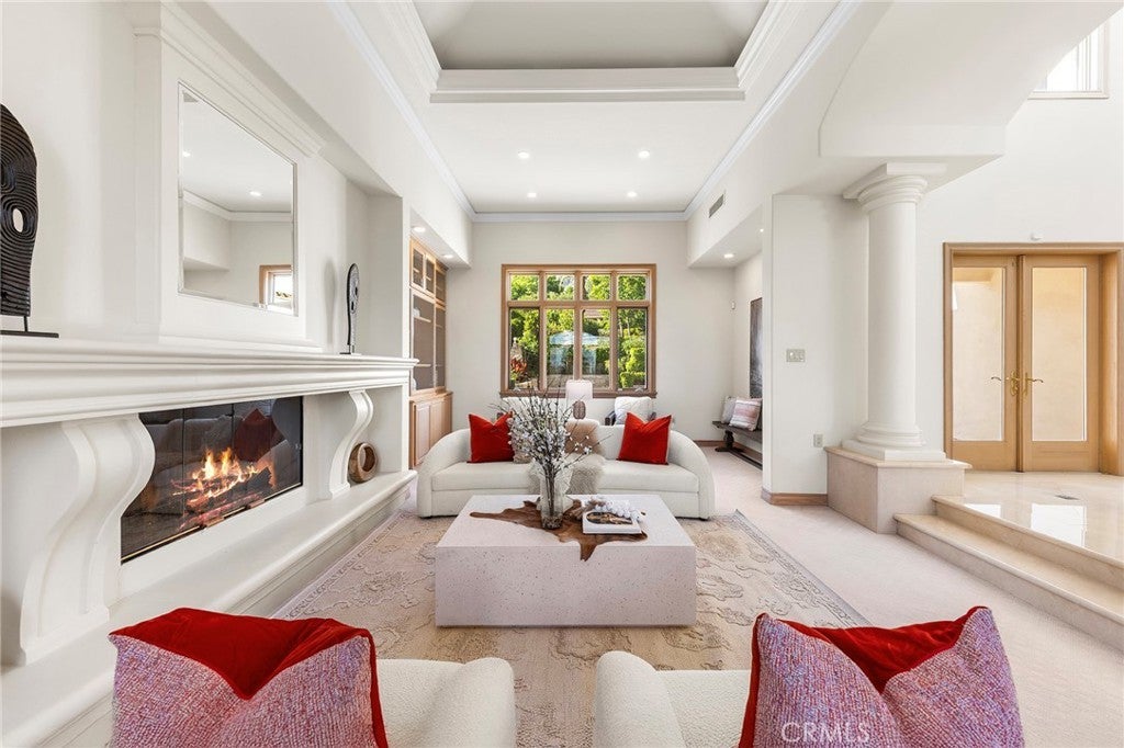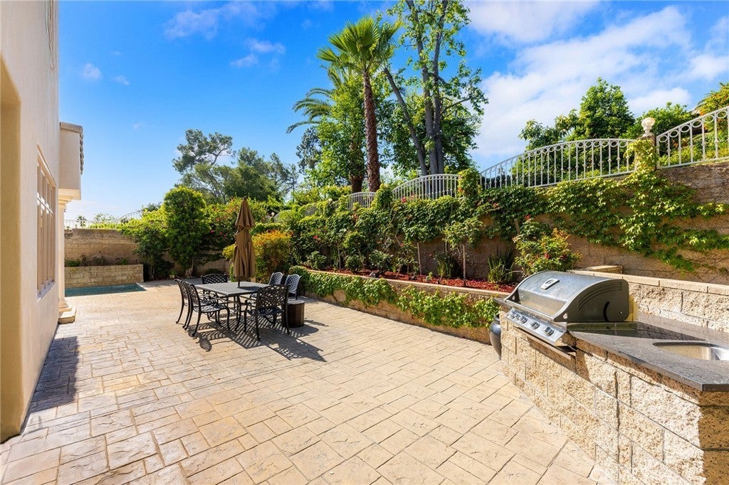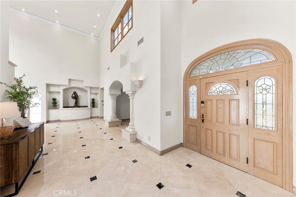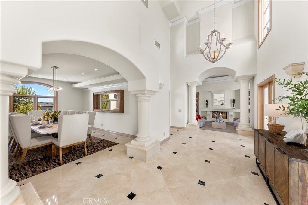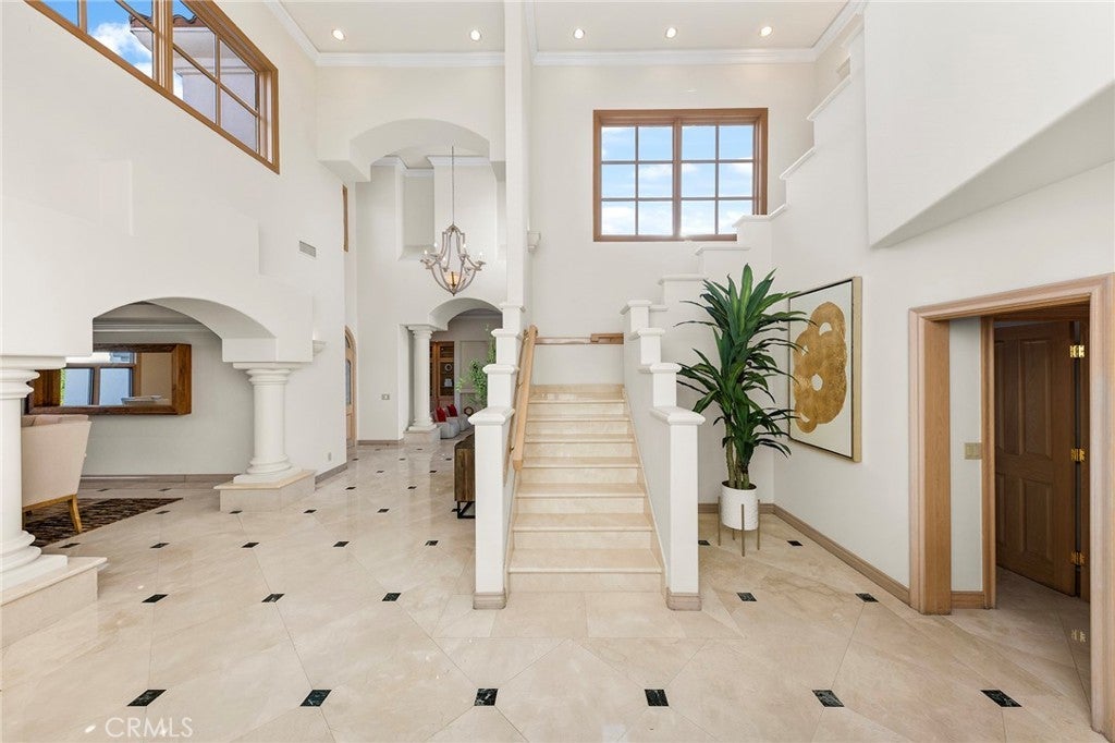 Designed by renowned Architect Syrus Mobayen, this custom built Mediterranean estate spans over 4,300 square feet with 4 bedrooms, 4 baths sited on a nearly half acre lot! Upon entering, you will be greeted with soaring ceilings and the gorgeous marble floors, The sunken living room features a cozy sandstone fireplace, built -in shelving. Luxury grand dining room with marble flooring and newly installed Crystal light. The chef’s kitchen is a culinary dream, complete with granite countertops, custom cabinets, Viking stove, built-in microwave, walk-in pantry, wine cooler, breakfast bar, inviting family room with built-in entertainment center. The lavish master suite with sitting area, fireplace, spa tub for two, and walk-in closet with built-ins. A second en suite bedroom features a private balcony with stunning city views, plus two main floor bedrooms. Outside, enjoy resort-like amenities: a sparkling heated pool, BBQ area, Outdoor fireplace, and a tranquil backyard lined with fruit trees and a gazebo. With a three-car garage, newly Soft water system and drink water system, central vacuum, and premium finishes throughout, this home is truly exceptional!
