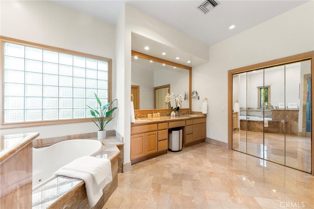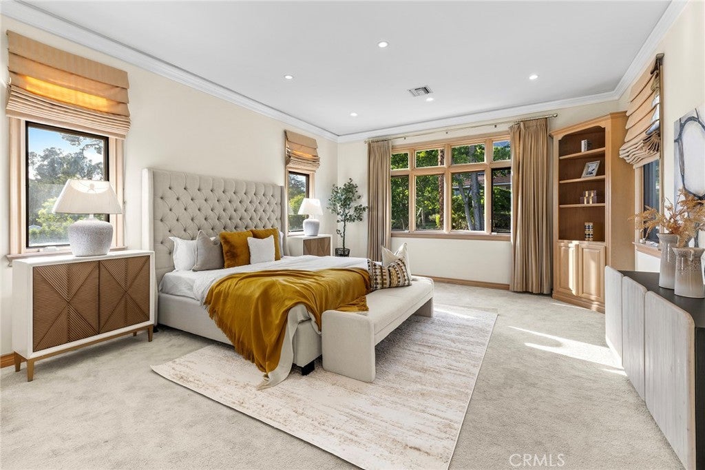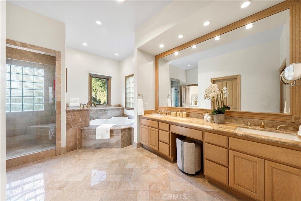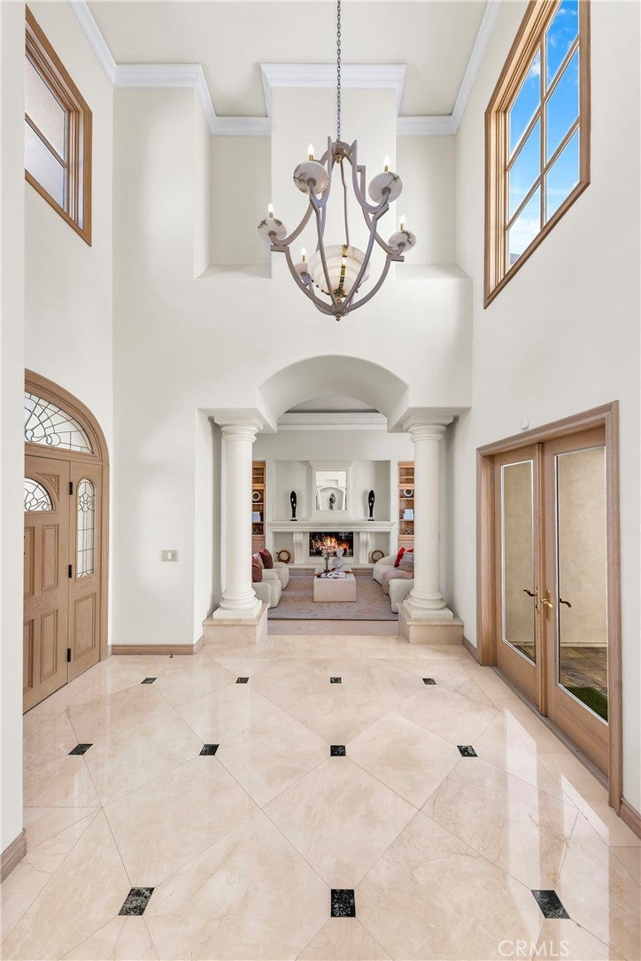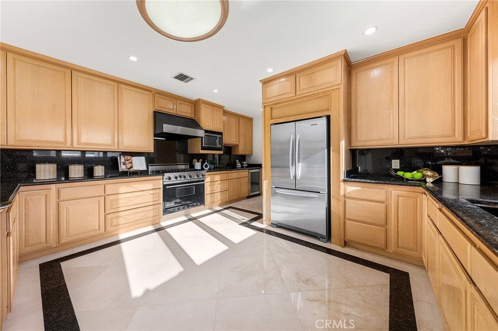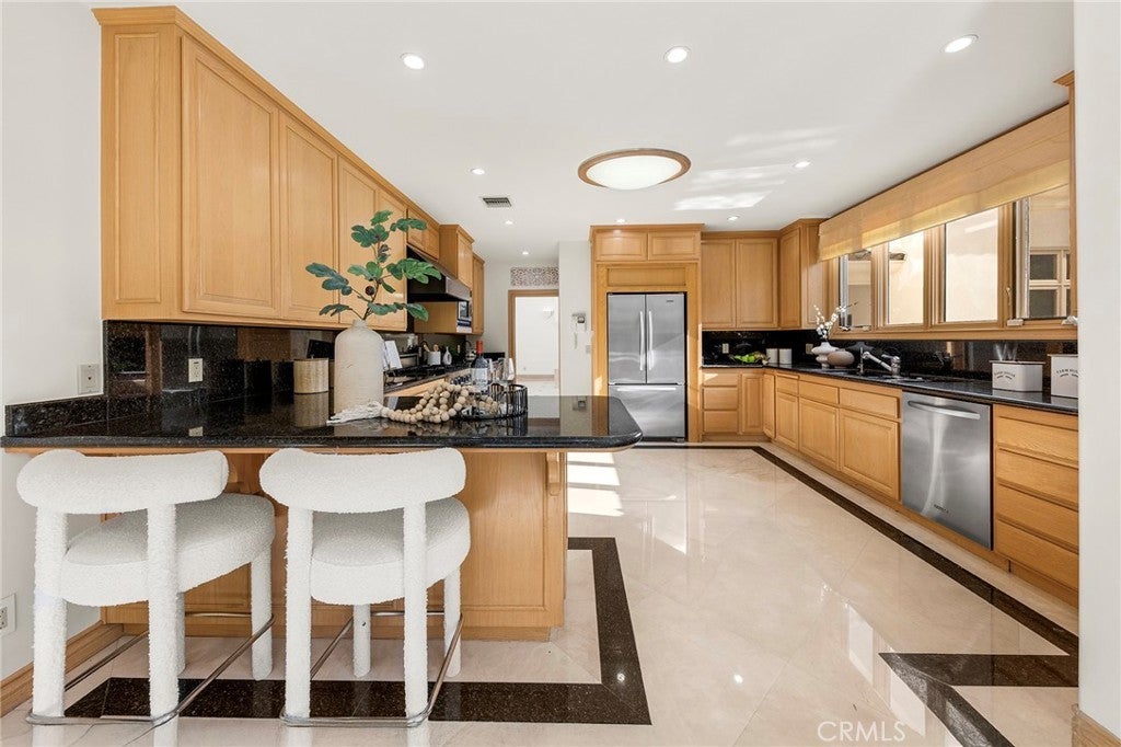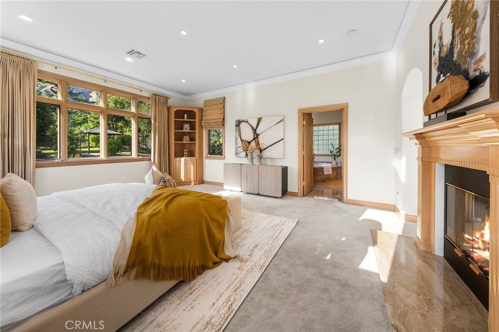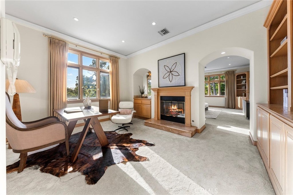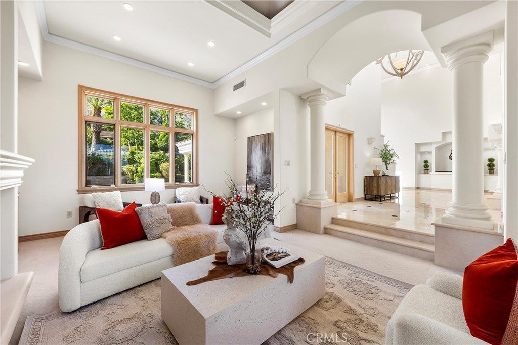 Designed by renowned Architect Syrus Mobayen, this custom built Mediterranean estate spans over 4,300 square feet with 4 bedrooms, 4 baths sited on a nearly half acre lot! Upon entering, you will be greeted with soaring ceilings and the gorgeous marble floors, The sunken living room features a cozy sandstone fireplace, built -in shelving. Luxury grand dining room with marble flooring and newly installed Crystal light. The chef’s kitchen is a culinary dream, complete with granite countertops, custom cabinets, Viking stove, built-in microwave, walk-in pantry, wine cooler, breakfast bar, inviting family room with built-in entertainment center. The lavish master suite with sitting area, fireplace, spa tub for two, and walk-in closet with built-ins. A second en suite bedroom features a private balcony with stunning city views, plus two main floor bedrooms. Outside, enjoy resort-like amenities: a sparkling heated pool, BBQ area, Outdoor fireplace, and a tranquil backyard lined with fruit trees and a gazebo. With a three-car garage, newly Soft water system and drink water system, central vacuum, and premium finishes throughout, this home is truly exceptional!