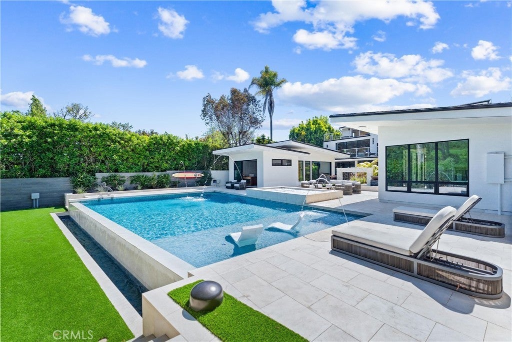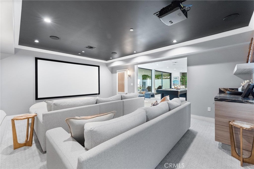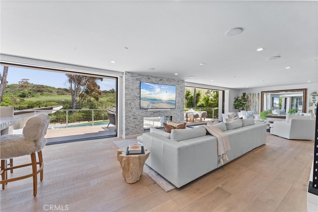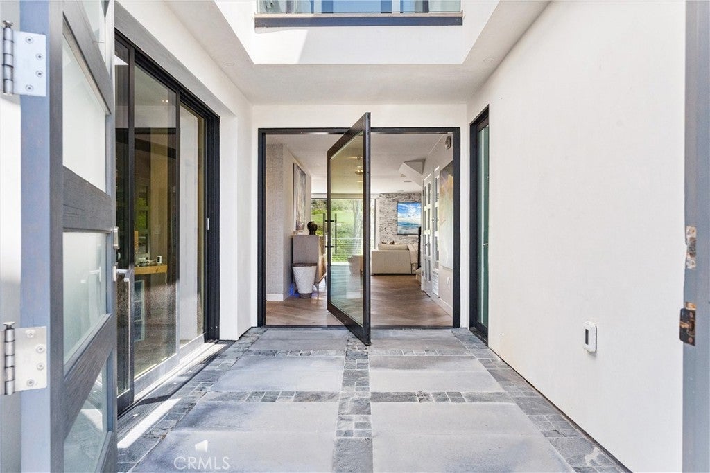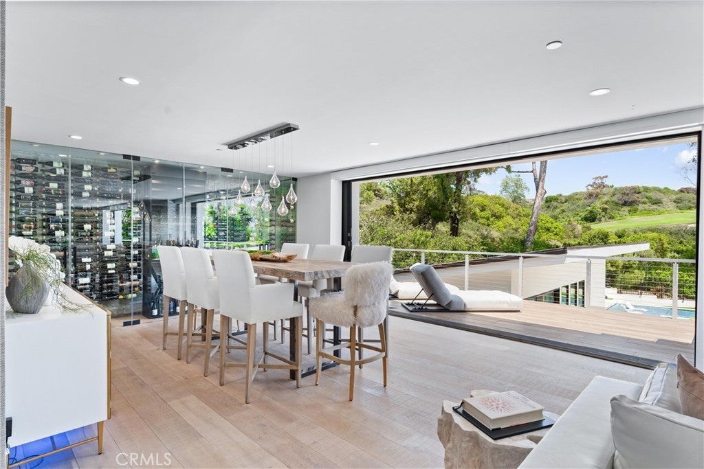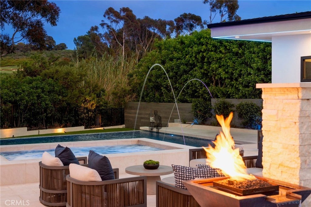 Introducing a 2018-built contemporary masterpiece nestled in the coveted neighborhood of Corona Highlands, right in the heart of Corona del Mar. Wake up to breathtaking sunrises and panoramic views overlooking the iconic Pelican Hill Golf Course. As you step through the oversized glass pivot door, you're immediately met with a captivating arrival. The main level is designed for seamless indoor-outdoor living, with floor-to-ceiling Fleetwood sliding doors that open to a spectacular pool and spa, fire features, and endless views of the golf course. The main floor also includes a guest suite with a full bathroom, a striking temperature-controlled glass wine cellar that holds over 600 bottles, and an open-concept living room centered around a sleek double-sided fireplace. The chef’s kitchen is outfitted with stainless steel Thermador appliances, a walk-in pantry, quartz countertops, and opens to a spacious balcony ideal for outdoor dining or lounging. Upstairs, your private sanctuary awaits. The primary suite offers a cozy fireplace, dual oversized walk-in closets, and a spa-like bath featuring brushed marble floors, a soaking tub, dual vanities, and a stunning all-glass shower. Floor-to-ceiling sliding doors open to a private terrace—perfect for taking in the serenity of nature and the golf course views in complete privacy. Two additional en-suite bedrooms and a spacious laundry room complete the upper level. Downstairs is an entertainer’s paradise, featuring a custom movie theater with a 120” screen, a game room, and a full bar equipped with beverage fridges, an ice maker, and ample seating. A whole-home surround sound system enhances the ambiance both inside and out. What truly sets this home apart is the one-of-a-kind, $3M custom-designed backyard. Designed to feel like your own private resort, it boasts a show-stopping pool and spa with fire bowls and water features, lush landscaping, an outdoor kitchen and BBQ, dining space, and two expansive detached ADUs—perfect for guests or multi-generational living. A luxurious steam room completes the experience. In Addition, fully owned solar. This home feels like a permanent vacation—where every day is elevated by luxury, design, and unforgettable views. With a generous three-car garage, there’s plenty of room for your cars, golf cart, or weekend toys—rounding out the ultimate coastal lifestyle.