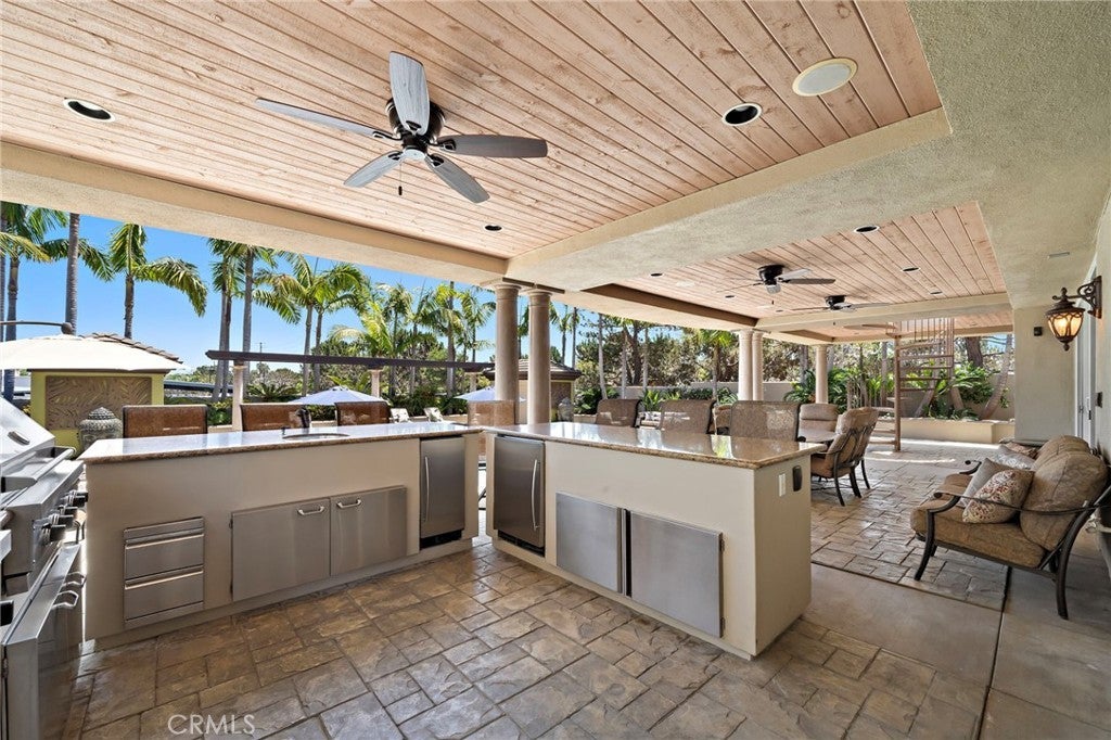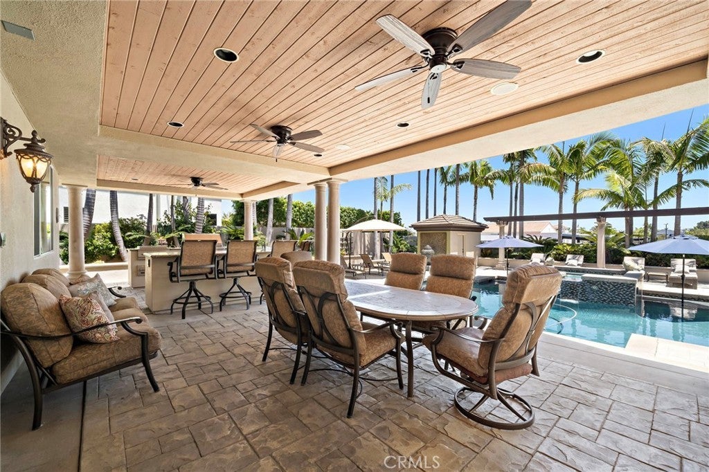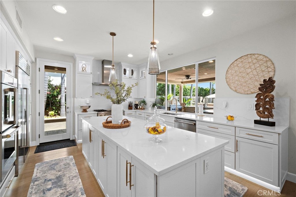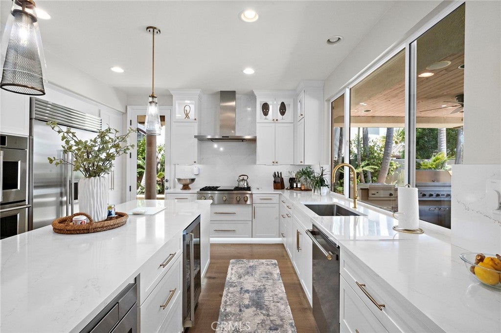 Exceptional one of a kind Edwards Hill Estate Property. This Ascot series Hamptons home boasts a massive 13,225 square foot lot creating your own private resort compound. The five car garage and driveway that will accommodate and additional five or more vehicles adds to the uniqueness of this home. Beautifully designed and upgraded throughout with rich wood flooring flowing throughout the living space. Crisp contemporary kitchen was just remodeled and features sleek quartz counters and a large center island. Lux white cabinetry with designer selected hardware. Built in Sub Zero refrigerator and high end Monogram series appliances. The family room is open to the kitchen and looks out through new four panel bi folding doors to your Tropical Paradise. The rear grounds of the home make you feel like you are at a five star resort. The Pebble Tec salt system pool and spa was just completely redone. Fabulous Barbeque area with multiple accoutrements and thoughtfully designed seating area. The main living space of the home offers high volume ceilings and attractive windows that let in tons of natural sunlight. There is a conveniently located downstairs bedroom with its own En suite bath. Ascend up the grand staircase to your primary suite sanctuary. Palatial in scale with a lovely sitting area, fireplace and private balcony. The primary bath is spa inspired and is complete with soaking tub and separate shower. A sizable walk in closet with multiple built ins complete the space. There are three additional generously size bedrooms upstairs with two of them offering En suite baths. This home is located in the highly desirable Seacliff area that offers access to the Equestrian Center and horse trails. The private Huntington Club Golf course is just around the corner affording multiple opportunities for sports and recreation. Come live the California Coastal Lifestyle at its finest!