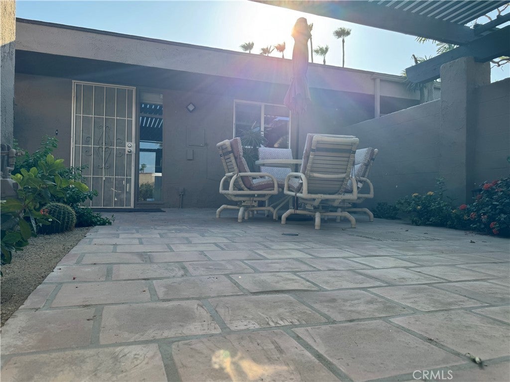 Turnkey furnished home with plenty of space for all, this charming 3-bedroom home offers a host of features! You'll enjoy watching the American Express PGA tour in January from the patio as it faces the 5th tee. Inside, prepare meals in the well-equipped, full kitchen with stainless steel appliances and an island with counter seating and don't miss the built-in wine cooler. Dine together (or play a few board games) at the table. And then wrap up your evenings with a movie or your favorite TV show on the flat-screen TV located in the spacious living room. Each of the 3 spacious bedrooms feature a glass slider that opens to an outdoor area. Outside, relax on your furnished, west-facing patio, or take advantage of the on-site amenities in this gated community including a shared pool located just down the street. Nearby you'll find abundant recreation opportunities in the beautiful city of La Quinta including a number of public parks that offer tennis courts, bocce ball courts, and workout/sauna facilities. You'll also find hiking and biking trails as well as casual walking options in Old Town La Quinta. Downtown is also the place to be for shops, restaurants, farmer's markets and several golf courses, so don't forget to pack your clubs! Sleeps 8: Primary bedroom is a king, 2nd bed is a full/queen, 3rd bed is 2 twins and sleeper sofa. (All furniture included.)