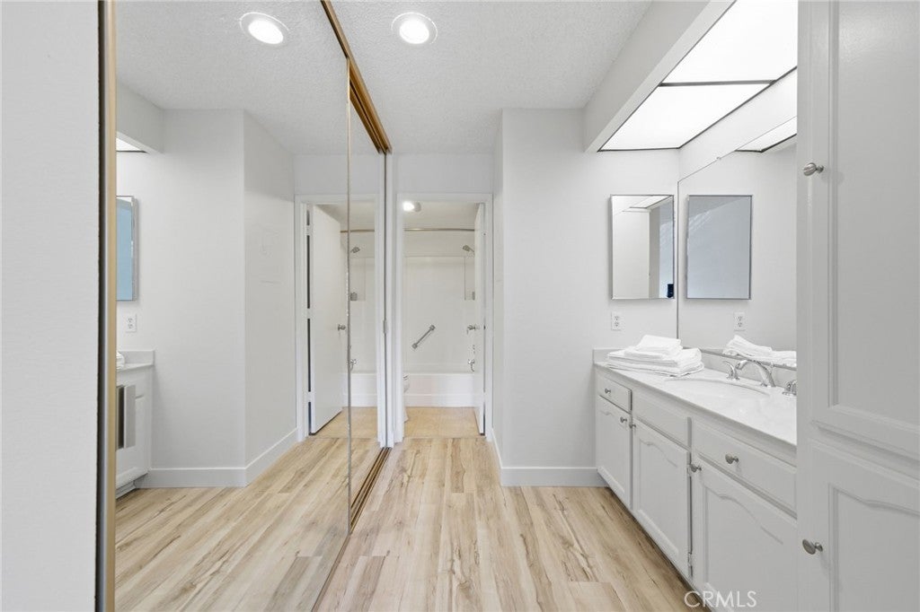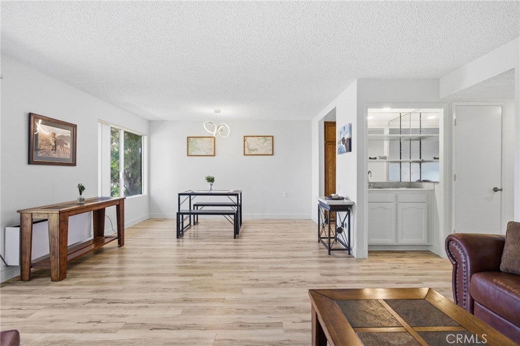 Panoramic mountain and city-light views highlight this top-floor Villa Nueva residence in Laguna Woods Village. Approximately 878 square feet, this one-bedroom home features a full bathroom plus a guest half bath and a private gated entry for added privacy. Recent updates include newer luxury vinyl plank flooring and new interior paint. Abundant natural light and the elevated outlook complete the living space. Located just steps from Clubhouse 6 and its pool. Enjoy resort-style living in this guard-gated 55+ community offering golf, tennis, pickleball, multiple pools and clubhouses, fitness centers, an equestrian center, library, bocce ball, and a wide variety of clubs and hobby studios. HOA dues include water, trash, landscaping, building and exterior maintenance, security, and community bus service to nearby shopping and medical facilities. Convenient access to major freeways and a short drive to Laguna Beach.