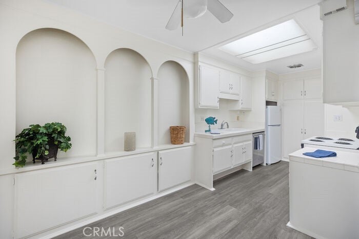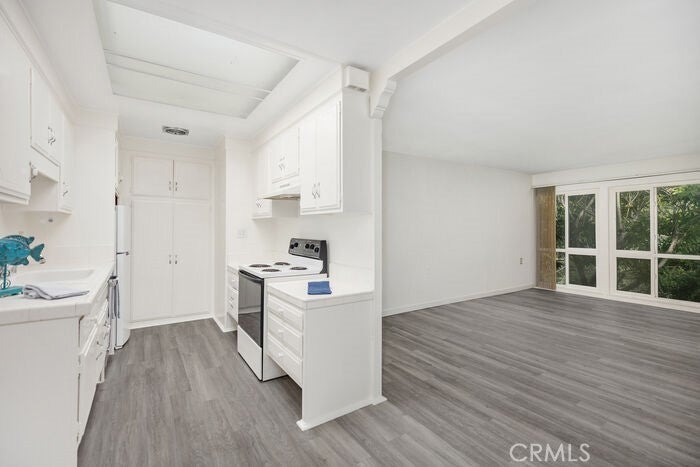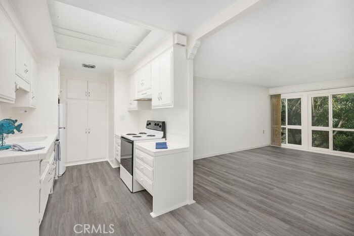This Monterey Model is just waiting for you! Updated flooring, newer windows and in the heart of Orange County! "Monterey" floorplan with no steps, no one above, large, sunny patio with huge storage closet. Laundry is in! Easy access to Gate 6 and Clubhouse 4. Freshly painted and new LVP flooring throughout. Bright living room with good sized windows. Arched accent walls in dining area with ceiling fan light. Kitchen has a large skylight. Bedrooms are on separate sides of the home. Bathroom area houses tub/shower combo. Close to carport! Just a short drive to Clubhouse 4 to take a free Emeritus class at the creative center of Laguna Woods with workrooms and classes in pottery, jewelry making, slip casting plus an awesome wood shop, painting studio with amazing lighting and huge sewing/quilting room. There is an Olympic size pool with hot tub and locker room. This condo provides an affordable option within Laguna Woods and there is non-warrantable condo FINANCING available (financing must be in place & ready to close). Laguna Woods Village residents enjoy a 27-hole championship golf course, a 9-hole executive par 3 course, pickleball and tennis courts, lawn bowling, gyms, clubhouses, swimming pools, horse stables, gardening centers, artist studios, computer workrooms and classes + over 200 clubs and organizations Don't wait!