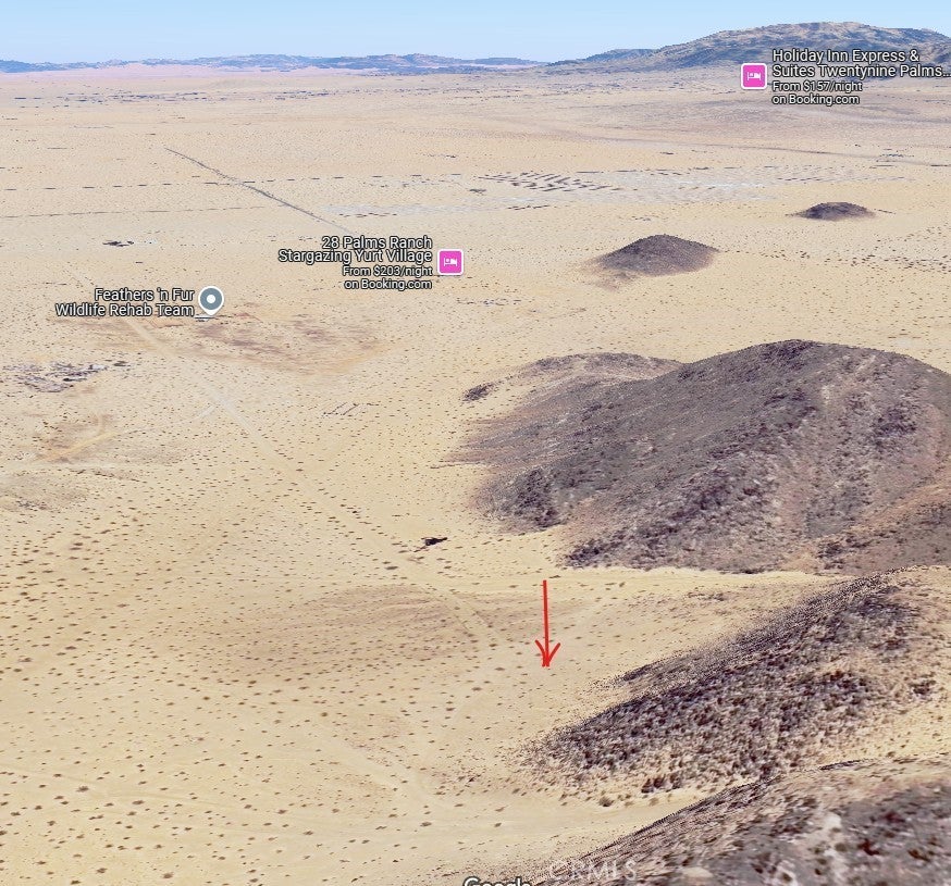 One of the best deals in the Joshua Tree/Sunfair/Desert Heights Area. Secluded 5 acres with good location to access all of the area shopping and activities. Back of the property is to hillside, looking out to endless views. Buyer to verify utilities, suitability, and any land use, lot boundaries and markers are estimated, no survey has been completed.
