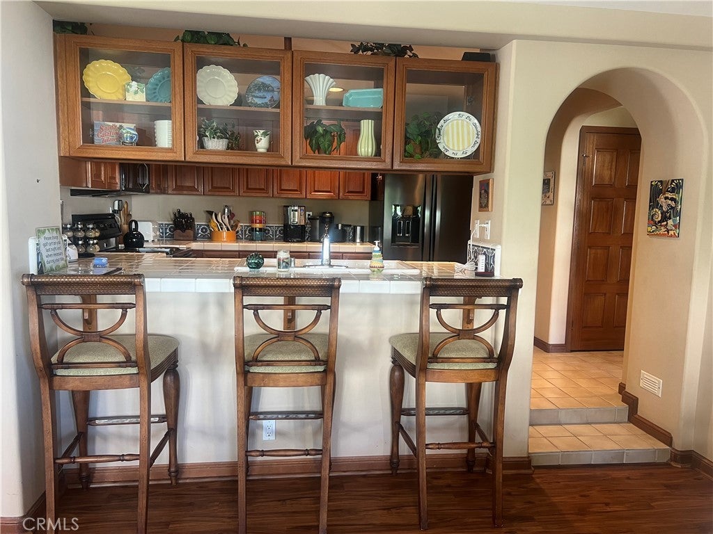 Breakfast Bar, Separate/Formal Dining Room, Walk-In Closet(s), Balcony, Bedroom on Main Level, Ceiling Fan(s), Furnished, Living Room Deck Attached, Recessed Lighting, Tile Counters