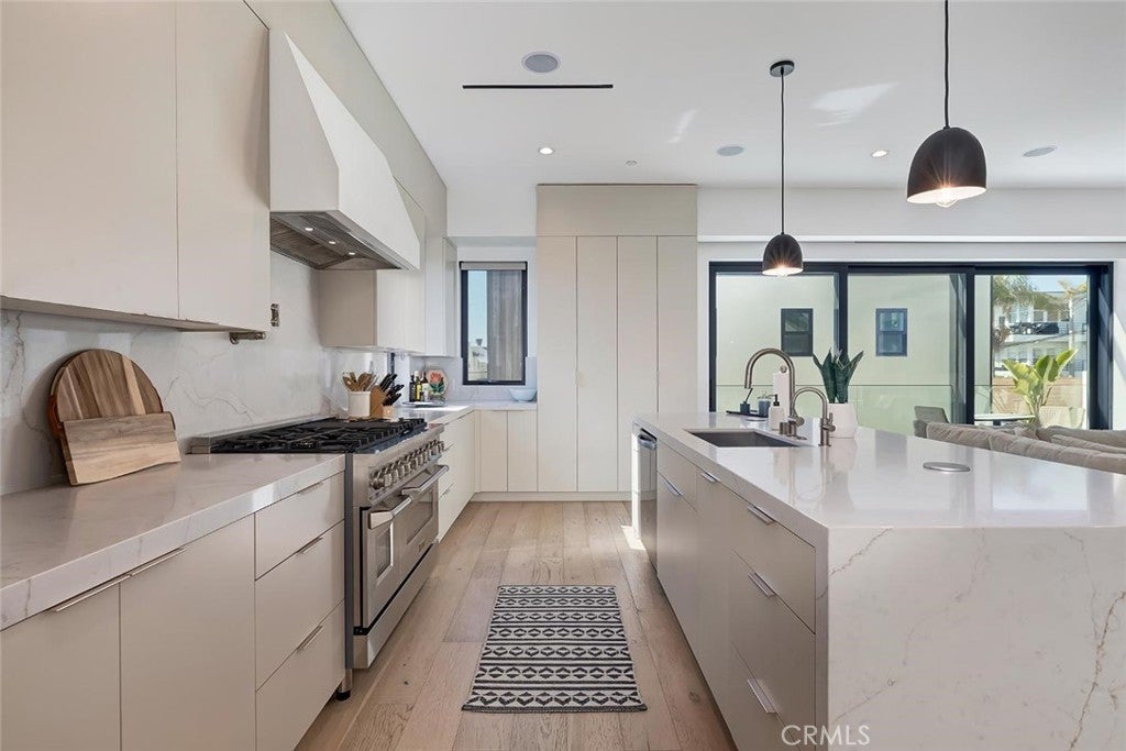 Welcome to 622 1st Place, a sleek, contemporary quiet and detached rear townhome situated in one of most sought-after neighborhoods in Hermosa Beach. Built in 2022 and exceptionally maintained, this like-new residence offers a modern coastal lifestyle just moments from the beach, The Strand, and the lively energy of Pier Avenue — while enjoying the tranquility of a quiet, rear-unit location. Spanning four bedrooms and three and half bathrooms across three beautifully designed levels, the home effortlessly balances functionality with sophisticated style. The heart of the home is an open-concept living space with wide-plank wood flooring, abundant natural light, and a seamless connection to a private balcony — perfect for relaxed mornings or evening gatherings. The chef’s kitchen is a showstopper, featuring top-tier stainless appliances, custom cabinetry, and a sleek island ideal for casual dining or entertaining. A private in-home elevator services all levels, adding everyday convenience for moving between floors — whether transporting groceries, luggage, or guests. The four spacious bedrooms include a luxurious primary suite with a custom walk-in closet and a spa-inspired en suite bath, complete with dual vanities, a freestanding soaking tub, and an oversized walk-in shower. Secondary bedrooms are generously sized and versatile, ideal for guest rooms, a home office, or a gym. Crowning the home is an expansive rooftop entertaining deck with sweeping ocean views, offering a perfect setting for sunset dinners, weekend lounging, or festive gatherings under the stars. An extra-large garage provides ample space for multiple vehicles, storage, and beach gear or even entertaining— a prized amenity in this beachside community. Set in a friendly, walkable enclave of Hermosa Beach, residents enjoy easy access to award-winning schools, scenic coastal bike paths, and some of the South Bay’s best dining, coffee shops, and boutique fitness studios. With its blend of modern design, thoughtful amenities, and a prime location just a short stroll from the sand, 622 1st Place captures the essence of elevated Southern California beach living.