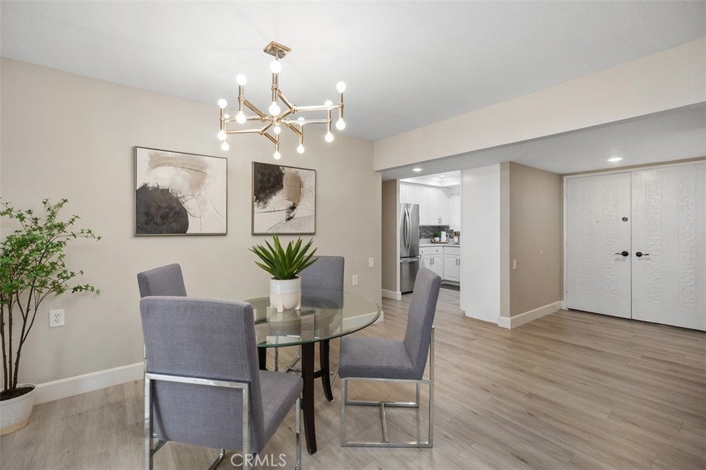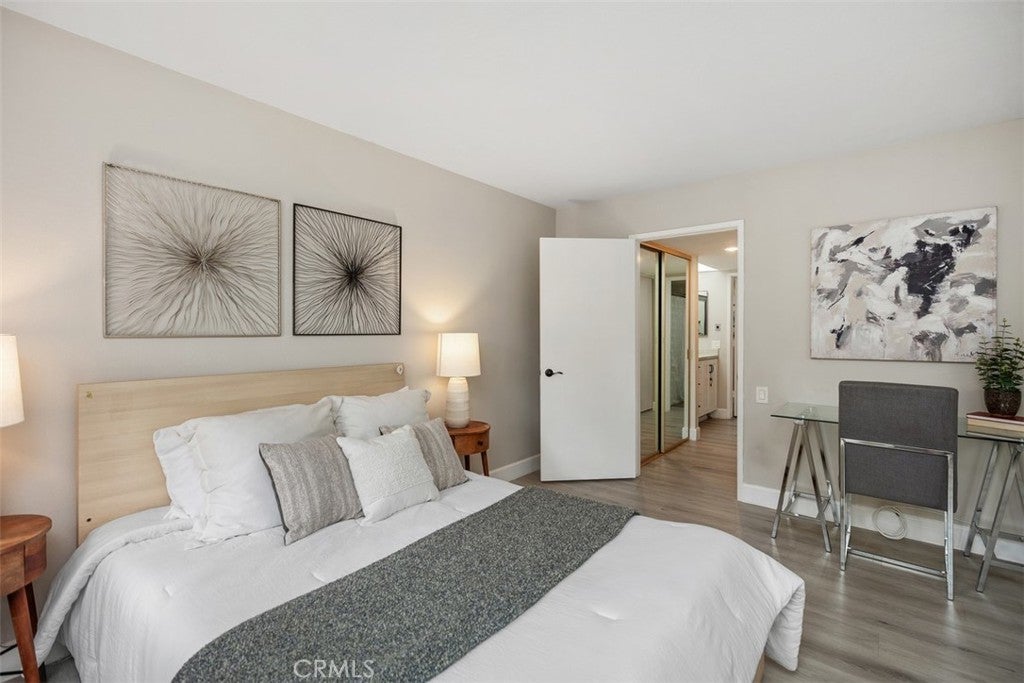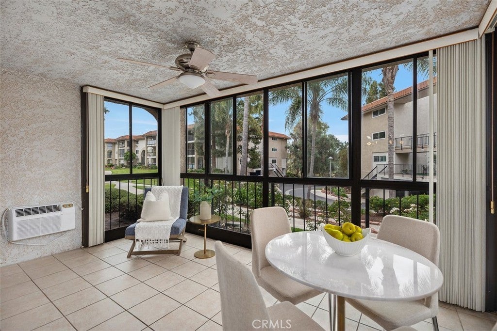MOTIVATED SELLER: Fabulous VILLA PUERTA floorplan tastefully updated to modern expectations in move-in condition. Located inside Gate 7 & 9 on an elevated street with direct access via parking garage with elevator. Step through the double door entry to discover a bright, spacious living room and dining area featuring smooth ceilings, a large picture window, dual sliders and LVP flooring. IT GETS BETTER with an additional glass enclosed patio featuring its own A/C unit and ceiling fan. This additional square footage makes this unit very versatile whether hosting a bridge game or enjoying a good book. The kitchen has white shaker cabinets including an added pantry cabinet and pantry closet, newer stainless-steel appliances, ample countertop space, recessed lighting and tile backsplash. Short on closets, the primary ensuite features a full wall of closets with mirrored doors in addition to the two additional closets in the bath area. The room is spacious and bright and can handle a king size bed. White shaker vanity and separate tub/shower combo round out this room. The guest bedroom has a large window and ample closet space. The guest bathroom with stall shower with new vanity and wall cabinet storage. This remarkable home is ideally situated in the premier 55+ adult community with its impressive amenities including a 27-hole championship golf course, 9-hole executive course, tennis and pickleball, lawn bowling, gyms, swimming pools, horse stables, art studio and classes, an 800 seat Auditorium w/live entertainment, Jewelry Center, Computer Center, Photography Center, Equestrian Center, 3 Fully Equipped Fitness Centers, 5 Pools, 8 Clubhouses, ACBL Bridge games 6-7 days a week and over 200+ clubs and organizations. Dues include trash, water, landscaping, building maintenance and building insurance, Free Transportation Service, security patrol and so much more. Close to Laguna Beach and convenient shopping and medical. Must be 55 years old to live in Laguna Woods Village which is rated as one of the TOP 55 PLUS RETIREMENT COMMUNITIES IN SOUTHERN CALIFORNIA. Join the Active Ageless in 'Camp' Laguna Woods Village where the amenities can keep you young.