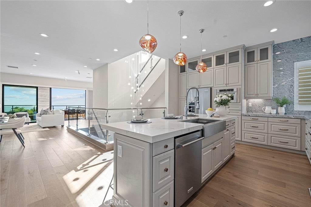 Enjoy panoramic views of the Ocean *Dana Point Harbor *City lights *Mountain views from every level !! Built in ELEVATOR!! This stunning contemporary tri-level home is located at the gated community of San Juan Harbor View, built by Toll Brothers. This first-row residence features 4 bedrooms plus office, 5 bathrooms. The entry level includes a large bonus room, a bedroom suite, and a beautifully landscaped backyard. The second floor features an open floor plan with a gourmet kitchen, dining room, large great room, and a flexible bonus space currently set up as an office. The expansive balcony on this level is perfect for enjoying the 180-degree ocean view and stunning sunsets. The third floor has the master suite and two additional bedrooms , a full bathroom, and a laundry room . Conveniently located with easy access to the 5 freeway, nearby beaches, renowned resorts, shopping centers, schools, Dana Point Harbor, community parks. Pacifica San Juan offers a resort-style recreation center, pool, spa, covered cabanas, BBQ area, and fitness center.