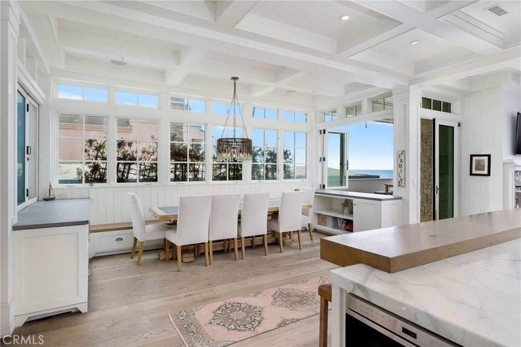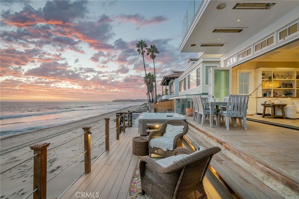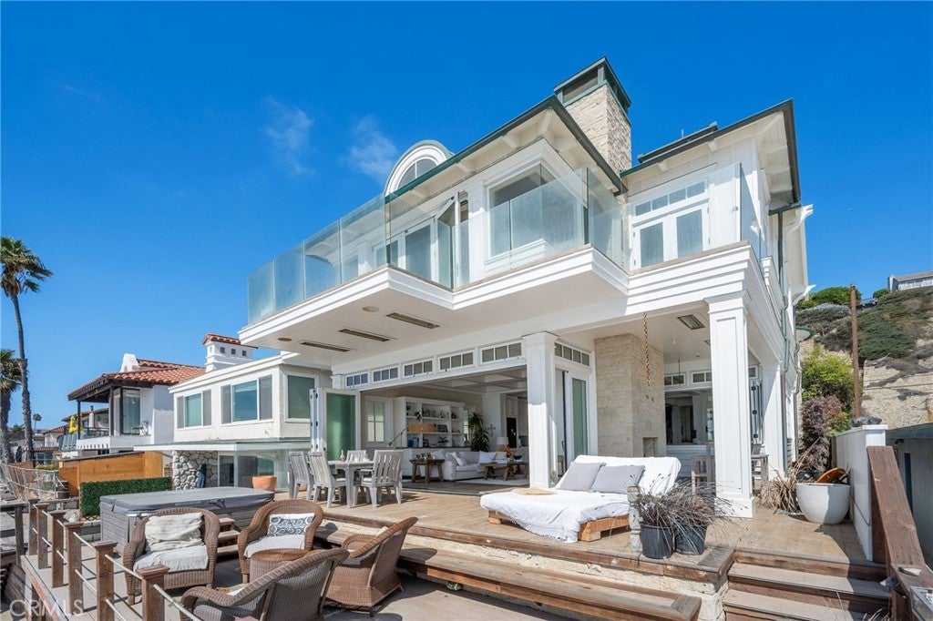 Experience the pinnacle of coastal luxury with this rare oversized 6,300 sqft lot custom residence located on the exclusive guard-gated stretch of Beach Road in Dana Point, consisting of 188 homes and 1.5 miles of beachfront. Designed by world-renowned TOMARO Architects, this estate seamlessly blends timeless Cape Cod inspiration with modern elegance, offering an unmatched opportunity for beachfront living. Spanning three levels, the home has been thoughtfully designed to maximize breathtaking panoramic views of the Pacific Ocean, Catalina Island, and dramatic sunsets. Floor-to-ceiling glass walls, expansive decks, and seamless indoor-outdoor transitions create an open and light-filled coastal sanctuary. The residence features a gourmet chef’s kitchen, spacious great room, formal dining, private office, and multiple entertainment spaces designed for gatherings large and small. Upstairs, the luxurious primary suite boasts sweeping ocean vistas, a spa-inspired bath, and a private terrace overlooking the sand and surf. Additional bedrooms are generously scaled with en-suite baths, providing both comfort and privacy. A rare oversized beachfront lot allows for generous outdoor living spaces, including a seaside patio, landscaped entry court, and private beach access. Modern engineering and advanced stormwater/erosion control systems have been meticulously integrated to ensure the property’s long-term strength and stability. Located just minutes from Dana Point Harbor, the Ritz-Carlton, and Monarch Beach Resort, this one-of-a-kind residence represents the ultimate in design, setting, and lifestyle. Few properties combine such architectural pedigree, modern craftsmanship, and a true oceanfront address.
