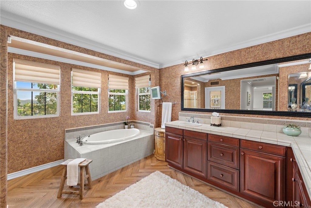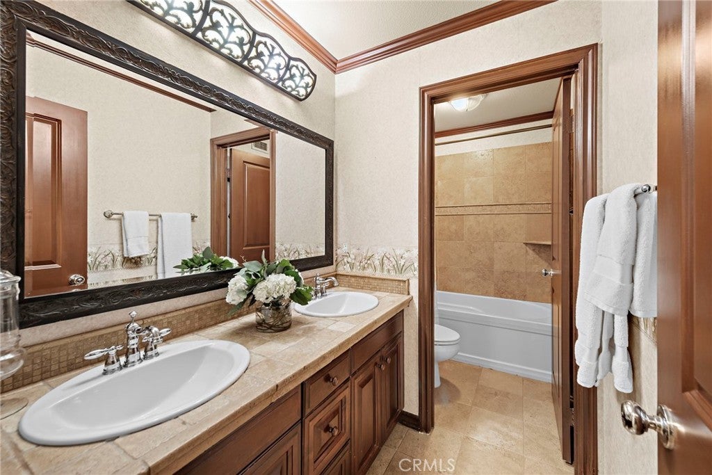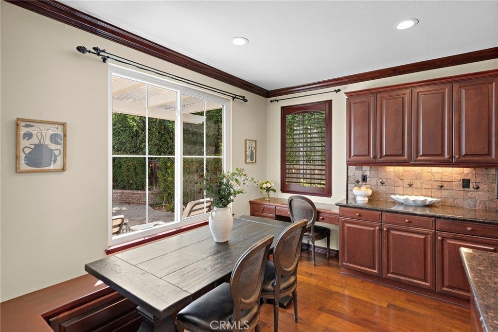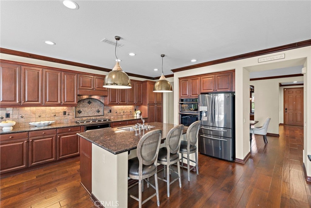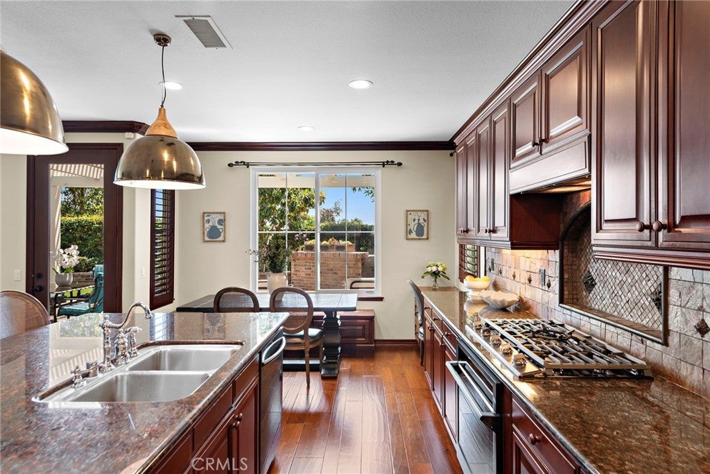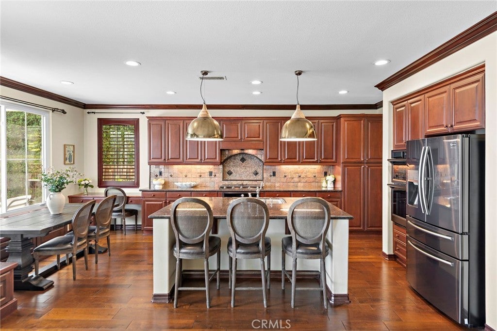 Welcome to 14 Downing St—an elegant 5BD, 3BA home in Flintridge Village of Ladera Ranch. Spanning approx. 2,900 sq ft, this residence offers privacy with no rear neighbors, rich hardwood floors, crown molding, exposed beam ceilings, custom shutters, and generously sized secondary bedrooms. Thoughtfully designed with defined spaces, it features a formal living room, a sophisticated dining room, and a separate family room with raised hearth fireplace. The gourmet kitchen includes a center island, mosaic stone backsplash, and ample cabinetry. The private backyard offers panoramic views, a charming outdoor fireplace, and a brick island with stainless steel BBQ and pizza oven. Part of the historic Ladera Ranch master-planned community—originally developed on former ranchland—this neighborhood embraces a vibrant, small-town atmosphere with year-round events, 4th of July parades, seasonal festivals, and farmers markets. Located within a district known for its award-winning schools and exceptional ratings. Conveniently located near Cox Sports Park, Ladera Skate Park, the Shops at Mission Viejo, and local hiking trails, this home offers the perfect blend of charm, comfort, and connection—making it an ideal place to call home in one of Orange County’s most cherished neighborhoods.