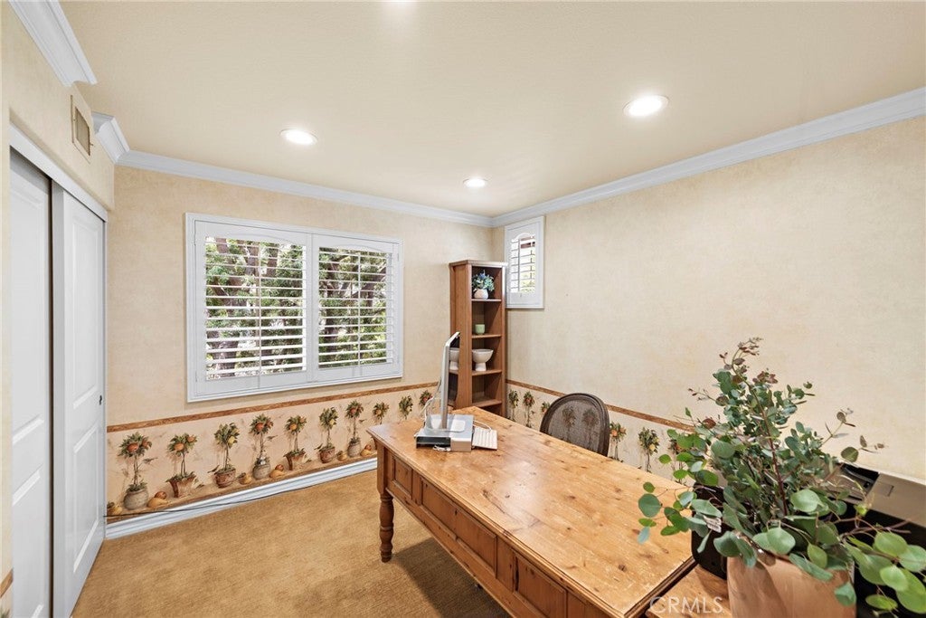 Recessed Lighting, Beamed Ceilings, Bedroom on Main Level, Breakfast Area, Brick Walls, Built-in Features, Ceiling Fan(s), Crown Molding, Eat-in Kitchen, High Ceilings, Pantry, Separate/Formal Dining Room, Storage, Two Story Ceilings
