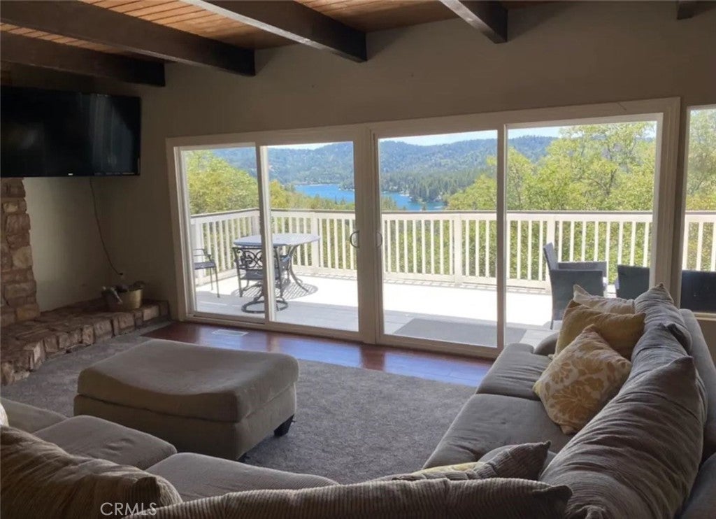 Welcome to 27547 Alpen Drive – A Classic Lake Arrowhead View Charmer with Full Lake Rights! This captivating tri-level mountain retreat offers panoramic Lake & mountain views from nearly every room—including the master suite, guest bedroom, loft, family room, dining area, and even the private balcony of the lower-level unit. Set on a spacious, usable lot with expansion potential, this home is a rare opportunity for full-time living, vacationing, or rental income. The main residence (Unit A) features 2 ensuite bedrooms, including a primary suite with a jetted tub overlooking the lake, a spacious den (optional 3rd bedroom), full guest bath, a cozy loft with built-in sleeping space, a well-equipped kitchen, and 2 expansive lake-view balconies. The lower level (Unit B) has its own private entrance, its own Lake view deck and includes a 1-bedroom, 1-bath layout with a full kitchen—ideal for guests or rental income. Both units have separate meters & water heaters. ***The lot offers exceptional value with space to add 2 additional structures or additional parking for boats or vehicles on the lower portion of the property. Whether you're looking for an investment opportunity or a peaceful escape with unbeatable views, this Lake Arrowhead home is a must-see!