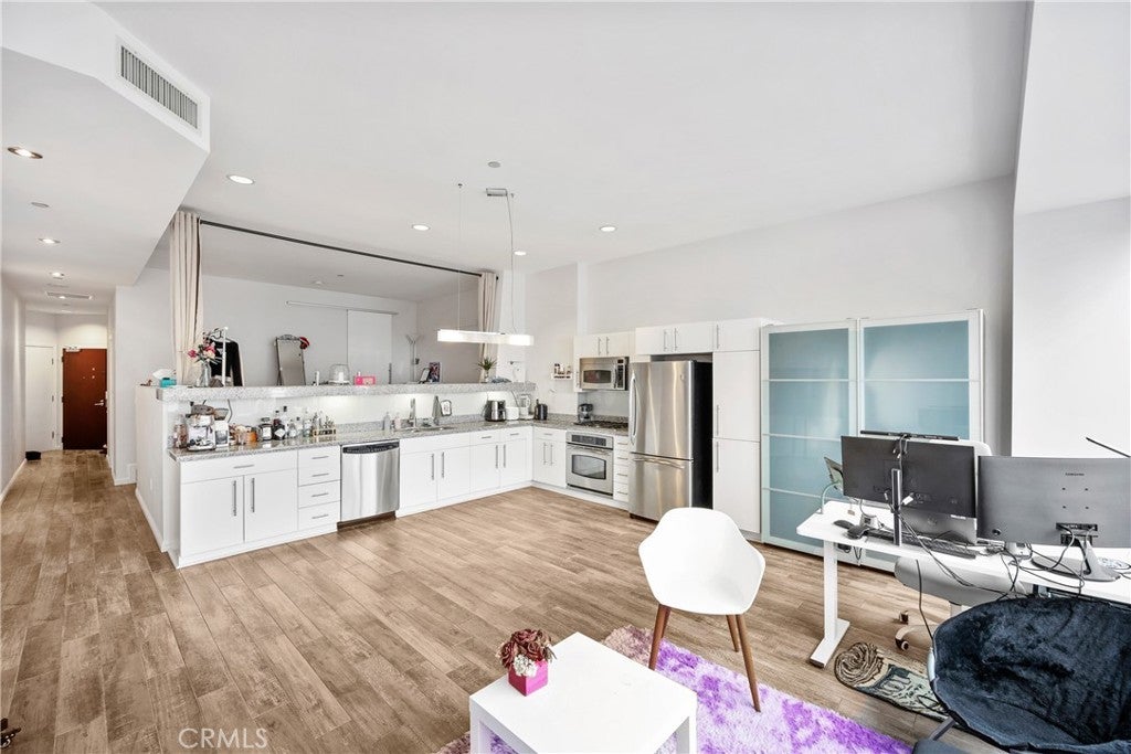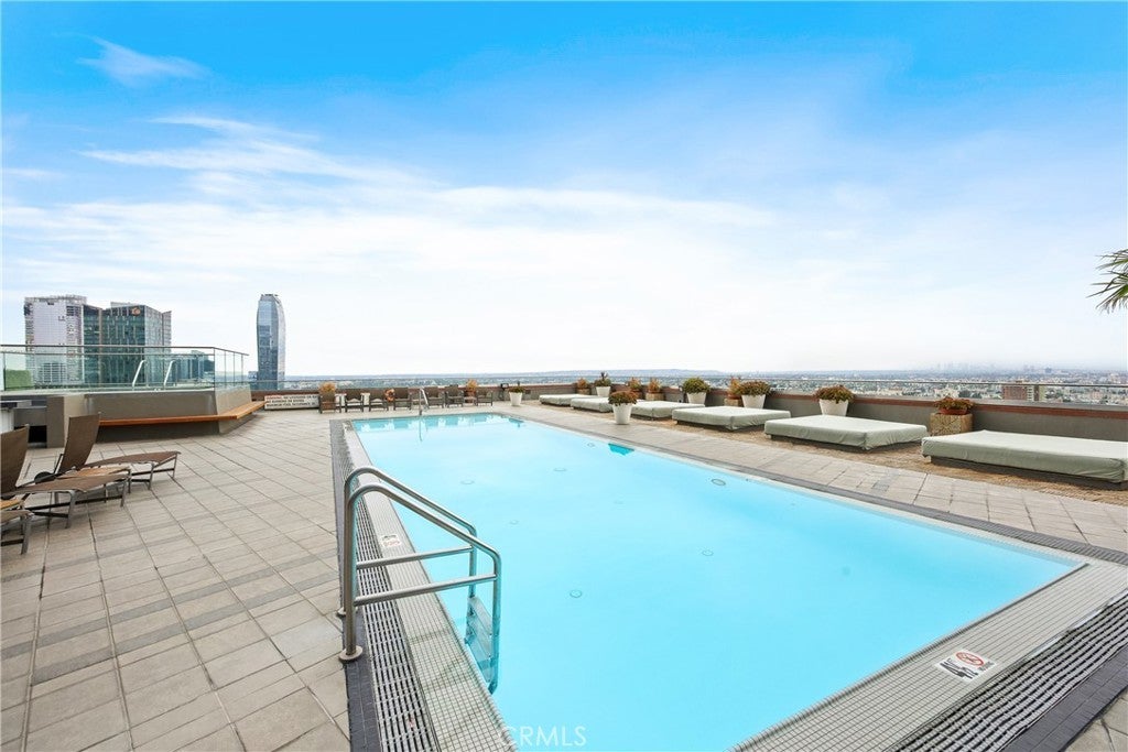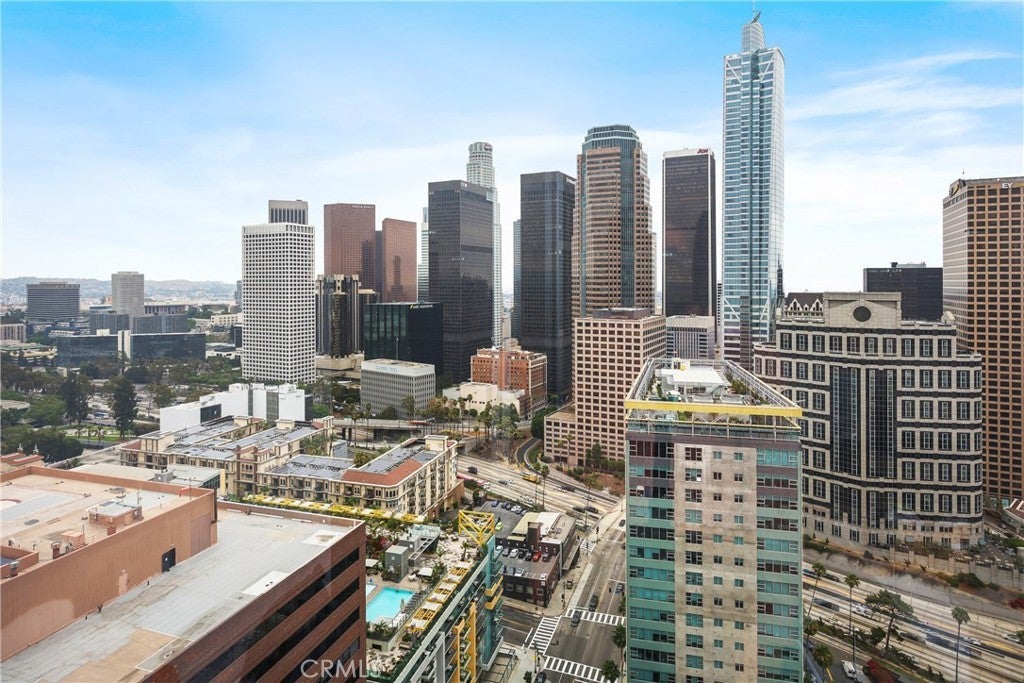 Not quite ready to move in? Even better! Here’s your opportunity to OWN a PRESTIGIOUS piece of real estate along LA’s iconic WILSHIRE BOULEVARD— and KEEP it leased out until you’re ready to make it home. Situated high on the 26th FLOOR, this PEACEFUL west-facing loft offers BREATHTAKING SUNSET VIEWS, capturing the glowing golden hour light through expansive wall-to-wall windows. The 800 sq ft layout is thoughtfully designed with an OPEN-CONCEPT living and dining area, allowing for versatile furnishing arrangements and a spacious feel. The ELEVATED PLATFORM BEDROOM includes two closets, plush carpeting, a wraparound ledge perfect for displaying art or décor, and UNOBSTRUCTED CITY VIEWS. The KITCHEN features granite countertops, stainless steel appliances, plentiful cabinet space, and recessed lighting—ideal for both daily living and entertaining. This CHARMING BATHROOM offers a nostalgic coastal vibe with sailor blue and navy tile accents. Enjoy a relaxing soak in the deep tub, a separate walk-in shower, an oversized vanity, and generous storage throughout. At 1100 WILSHIRE, you don't need to leave your building to enjoy LUXURY AMENITIES; on the 17th-floor ?SKYDECK, including a HEATED INFINITY POOL, SPA, CABANAS, LOUNGE BEDS, WET BAR, multiple BBQ area and a FIRE PIT—all designed for RELAXATION and ENTERTAINMENT. Stay fit in the fully equipped GYM with flat-screen TVs or unwind in the PRIVATE MOVIE THEATRE. A BUSINESS CENTER, GUEST PARKING, 24-HOUR CONCIERGE, and controlled access add to the convenience and SECURITY. Located just steps from the Financial District, LA Live, 7th & Fig, and some of LA’s best dining and shopping, you’re truly in the heart of it all. The HOA COVERS water, gas, and trash, making urban living seamless. Also within walking distance: Whole Foods, Perch, 71Above, Water Grill, Clifton’s, Teragram Ballroom, and more. Just a short drive to the Arts District, Echo Park, Silverlake, and Elysian Park (Dodger Stadium), with quick access to the 110, 10, and 101 freeways. Nestled among HOLLYWOOD's elite, this residence offers unparalleled ELEGANCE and EXCLUSIVITY. Don't miss your chance to be part of this LEGENDARY locale.