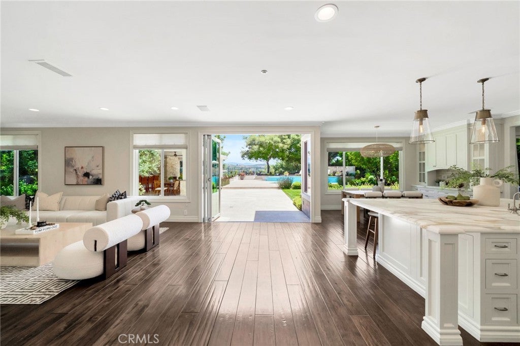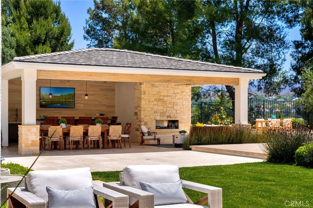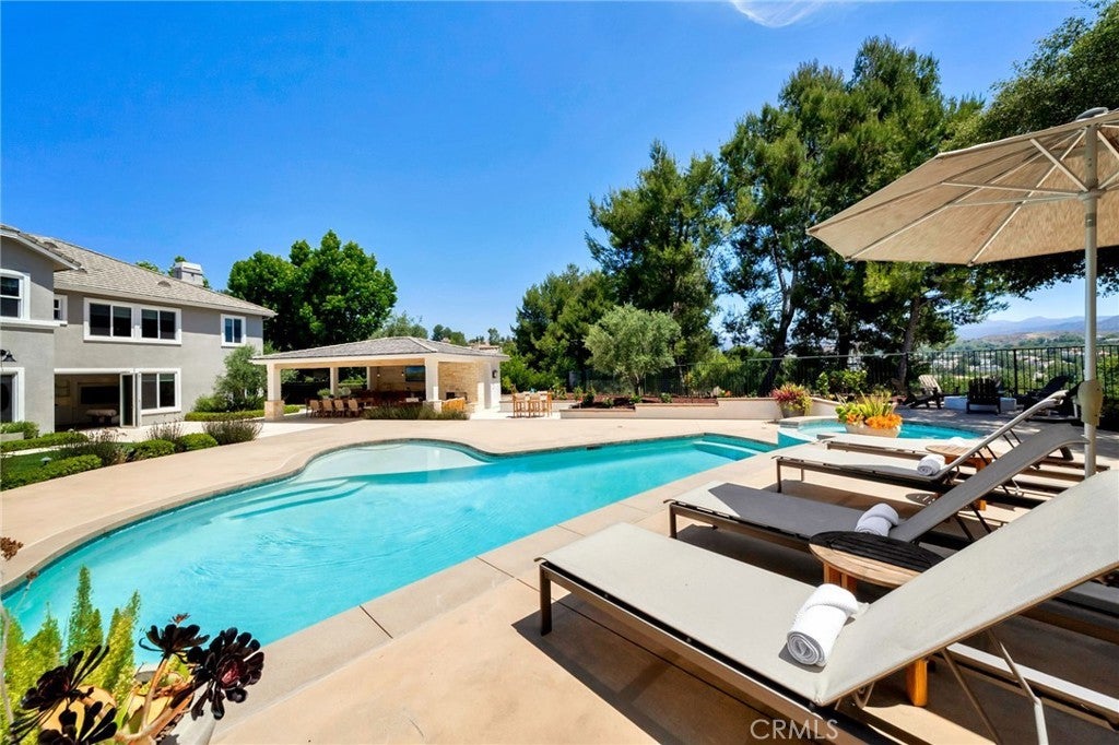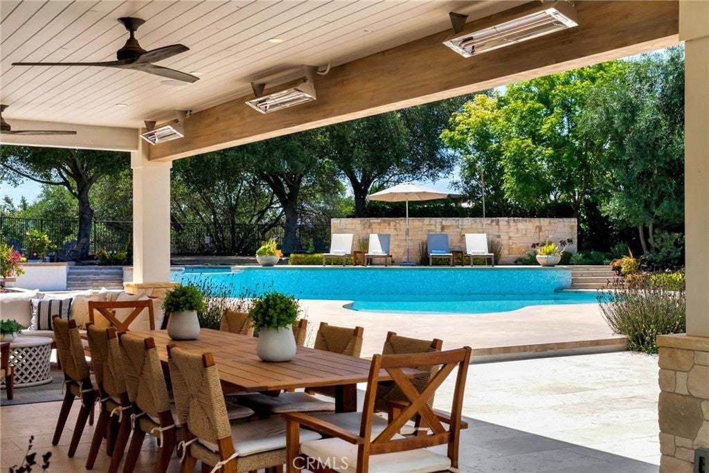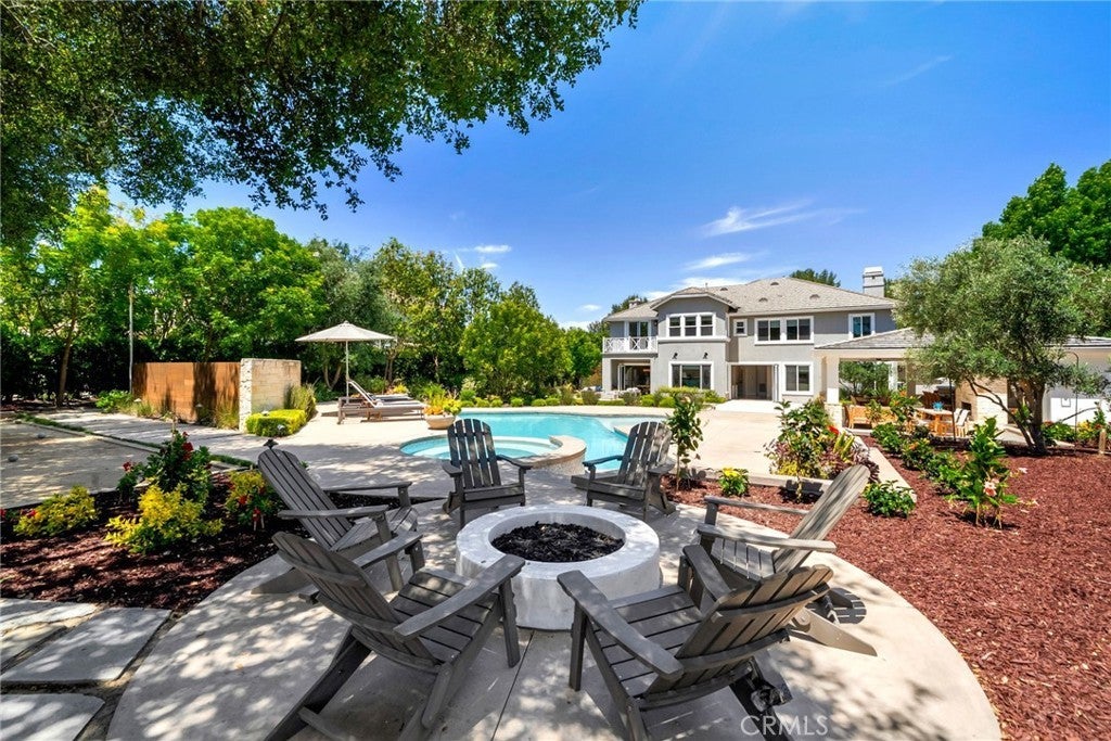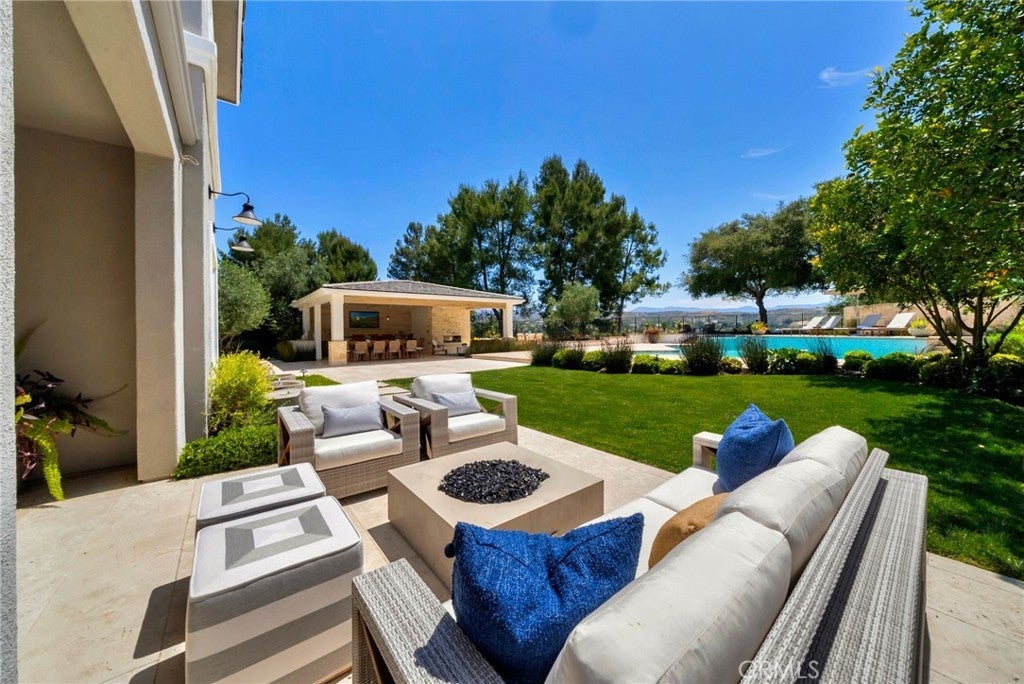 Discover unparalleled luxury nestled within the prestigious Pinnacle development of guard-gated Coto de Caza. As you approach the estate, a long paver-stone driveway leads to an elegant entrance, welcoming you into a world of grandeur. Step inside a timeless masterpiece to find a dramatic two-story foyer with a grand staircase that creates a stunning first impression. A sunlit private office adjacent to the entry is adorned with custom features, setting a tone of refinement. The formal living room features a cozy marble fireplace, while the dining room showcases La Cantina folding doors, allowing for effortless indoor-outdoor living. The former model 5-bedroom estate is set on an expansive 26,432 sqft elevated lot in a quiet cul-de-sac, offering breathtaking panoramic views and a seamless blend of sophistication and modern elegance. The heart of the home is a culinary haven, complete with state-of-the-art appliances, a large marble island for entertaining, which is seamlessly designed for open concept harmoniously flow. The large folding doors opening to the resort-caliber backyard, are ideal for entertaining flow or enjoying canyon breezes. This home is also equipped with cutting-edge technology, including a Control-4 system for managing lighting, audio, and pool systems. The outdoor space is an entertainer’s paradise, featuring a sparkling pool, spa, and a remarkable casita equipped with Perlick appliances, a built-in grill, libation taps and climate control for year-round comfort. Multiple seating areas, water features, and fire pits create enchanting spaces, all while offering mesmerizing views in a private oasis. Complementing a luxurious main-level en-suite for guests, you’ll ascend one of the two staircases to discover four spacious bedrooms, including a primary suite that serves as a true retreat, complete with a private balcony, sitting area with fireplace, and a spa-inspired bathroom featuring a freestanding tub and oversized walk-in shower. The expansive 4-car garage includes a wine fridge and Subzero refrigerator, ample storage, and a dedicated workbench area. With access to Coto De Caza’s premier amenities, including championship golf courses, scenic trails, and tennis courts, 106 Panorama embodies the art of “Finer Living”. Schedule your private tour today and experience a sanctuary where life is truly extraordinary.