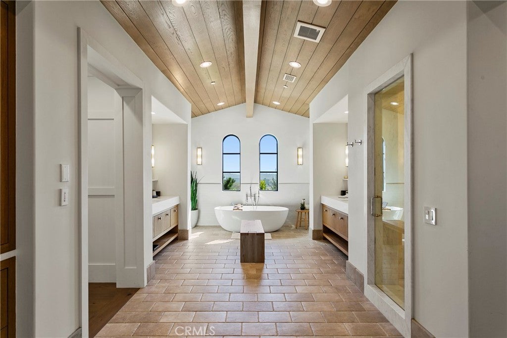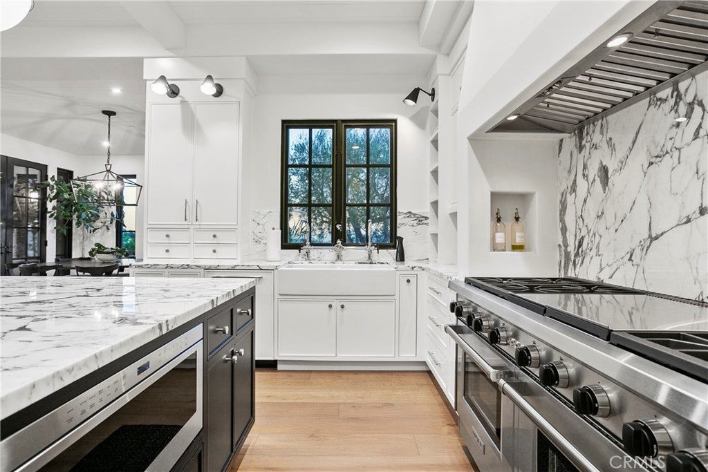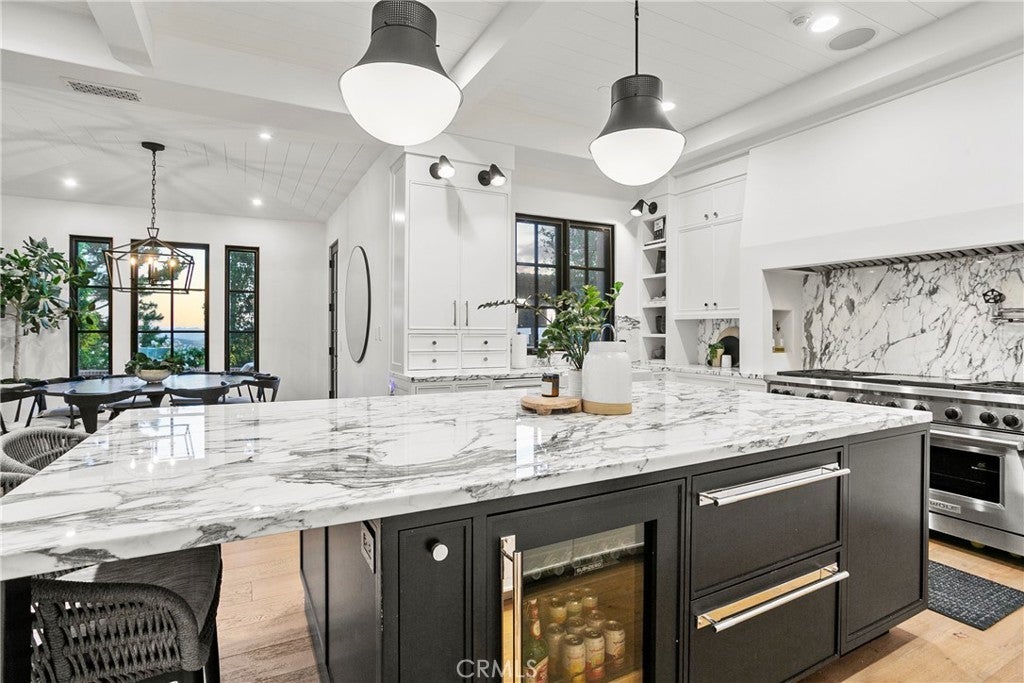 Welcome to Four Thomas Road, an exquisite custom estate situated in Covenant Hills, offering nearly half an acre of lush landscapes and breathtaking ocean-facing panoramic views. Originally designed by renowned architect, John McCloskey, this stunning residence has been meticulously renovated to embody today's most sought-after aesthetics, showcasing an unwavering commitment to quality and detail.Inside, you'll find five luxurious ensuite bedrooms and seven elegantly appointed bathrooms, along with a subterranean garage that accommodates six vehicles. The estate also features a wine cellar, private gym, billiards room, office, and an elevator, marrying opulence with functionality in every corner.As you enter this magnificent home, you're welcomed by soaring cathedral ceilings and open pocket doors that seamlessly blend indoor and outdoor living. The warm, wide plank hardwood floors flow throughout, while custom wood finishes on the ceilings and walls amplify the sense of luxury. The inviting living room boasts a stunning fireplace and flows into the dining room, accentuated by a striking fluted wall. The centerpiece of the home is the 432-bottle glass wine cellar, complete with a built-in cigar humidor, offering an elegant touch for connoisseurs. The gourmet kitchen is a chef’s dream, outfitted with top-of-the-line Wolf & Viking appliances, including a grand 60" range and oven, a massive 100" built-in Sub-Zero refrigerator, a walk-in pantry, and a beverage station. Waterworks fixtures and exquisite European marble countertops elevate the kitchen's sophistication, creating a space that's as functional as it is beautiful.Throughout the estate, handcrafted hardware from England adds a refined touch, epitomizing superior craftsmanship. The master suite serves as a tranquil retreat, featuring a spa-like adjoining bathroom equipped with Waterworks fixtures, a standalone tub, an advanced steam shower, and his-and-her walk-in closets.Step outside into a serene backyard, where beautifully appointed gardens enhance the ambiance. Enjoy a pristine pool and spa, a built-in BBQ kitchen area, alfresco dining options, outdoor fireplaces, and a covered patio—all while basking in stunning sunset views and ocean breezes. Privacy reigns at this remarkable estate, located in a secluded cul-de-sac within the guard-gated Covenant Hills community. Embrace sophisticated living in one of Southern California's most prestigious neighborhoods, where luxury and elegance truly converge.
