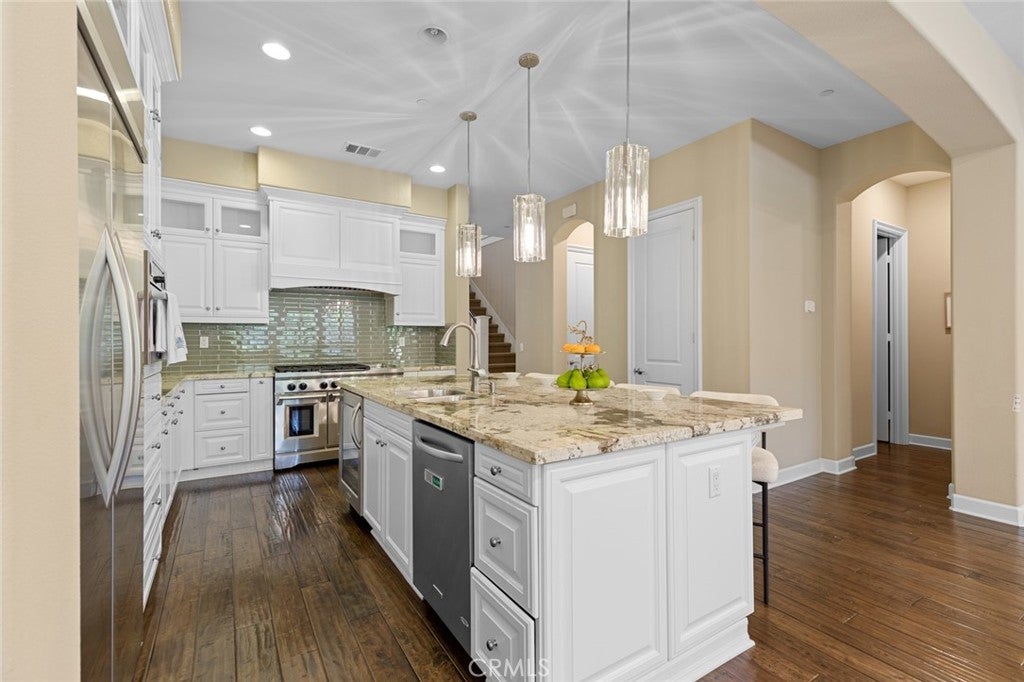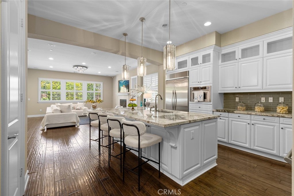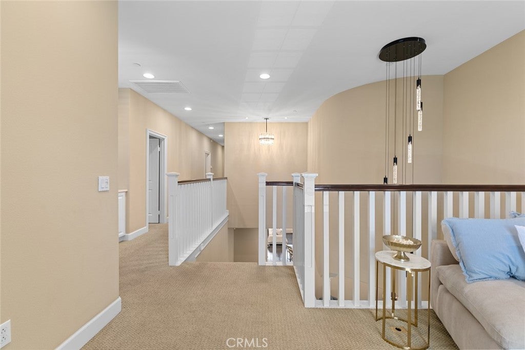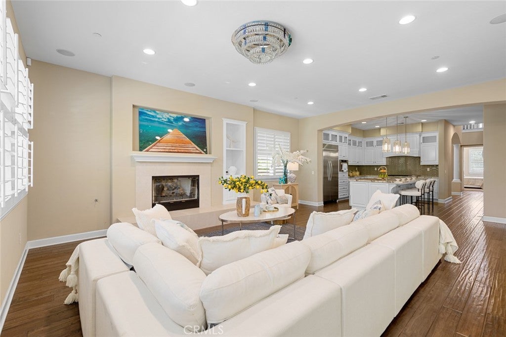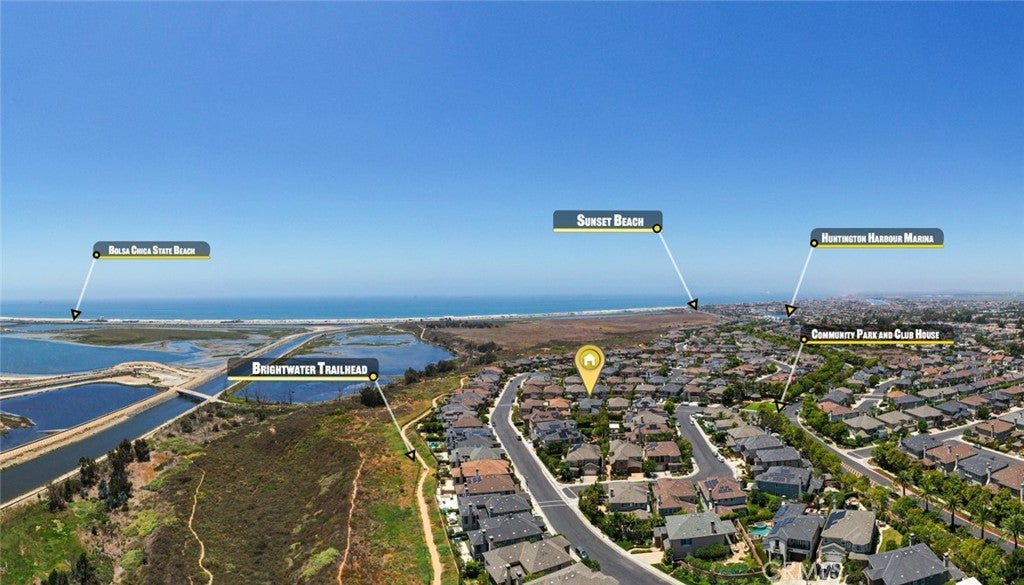 Presenting a distinguished residence in the esteemed Brightwater community, 17472 Oakbluffs Lane offers an exceptional coastal living experience just moments from the beach and Huntington Harbour. Set within one of Huntington Beach's premier newer-built enclaves, this home combines modern elegance with timeless California charm. Brightwater is renowned for its resort-style amenities, including a private clubhouse, state-of-the-art fitness center, sparkling pool and spa, and a network of scenic walking trails with direct access to the Bolsa Chica Wetlands. The location captures the essence of Southern California living — tranquil, convenient, and inspiring. Encompassing over 3,500 square feet, the home features a flexible floor plan thoughtfully designed for both comfort and function. The main level includes a generously sized bedroom with en-suite bath, ideal for guests or extended family. At the heart of the residence, the chef’s kitchen is appointed with premium stainless steel appliances, granite countertops, a substantial center island with seating, and a classic subway tile backsplash. Adjacent sliding doors open to the California Room — a covered outdoor retreat with a cozy fireplace, perfect for year-round entertaining. The expansive backyard is designed for gatherings, complete with a built-in barbecue and fire pit that elevate the home’s outdoor living appeal. Upstairs, a versatile loft provides space for a home office or media room, while two well-sized guest bedrooms share a tastefully upgraded bath. The primary suite is a private sanctuary overlooking the backyard, featuring dual walk-in closets and a luxurious en-suite bath with soaking tub, separate shower, and dual vanities. Additional amenities include a tandem three-car garage with epoxy flooring and built-in storage, dual-zoned A/C, tankless water heater, brand-new exterior paint and carriage lighting, and more. Ideally located less than one mile from the coast, this residence represents a rare opportunity to own within one of Huntington Beach’s most coveted communities. A true embodiment of refined coastal living.