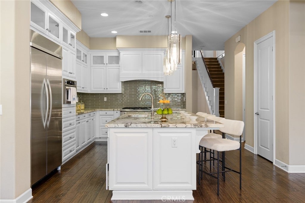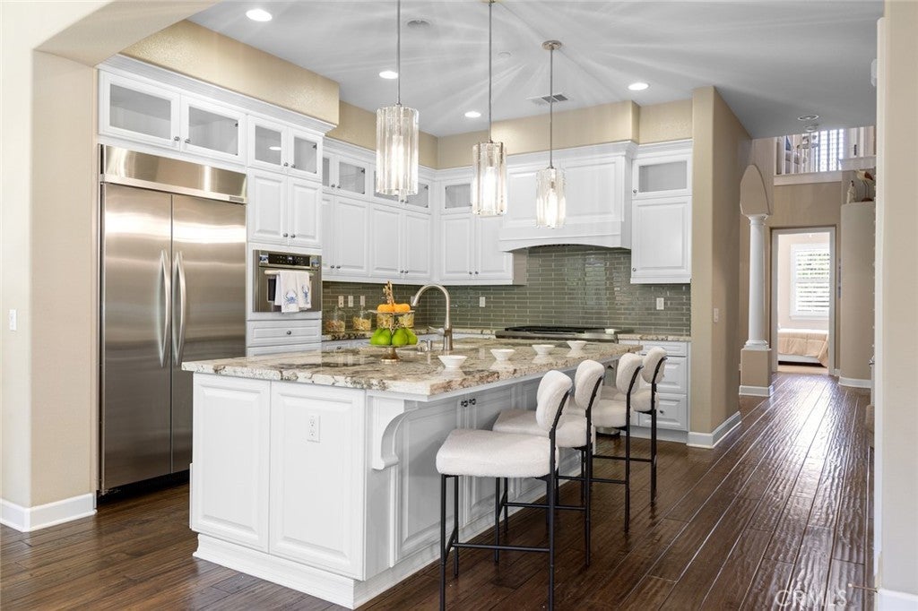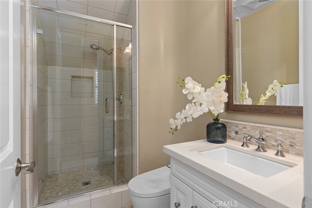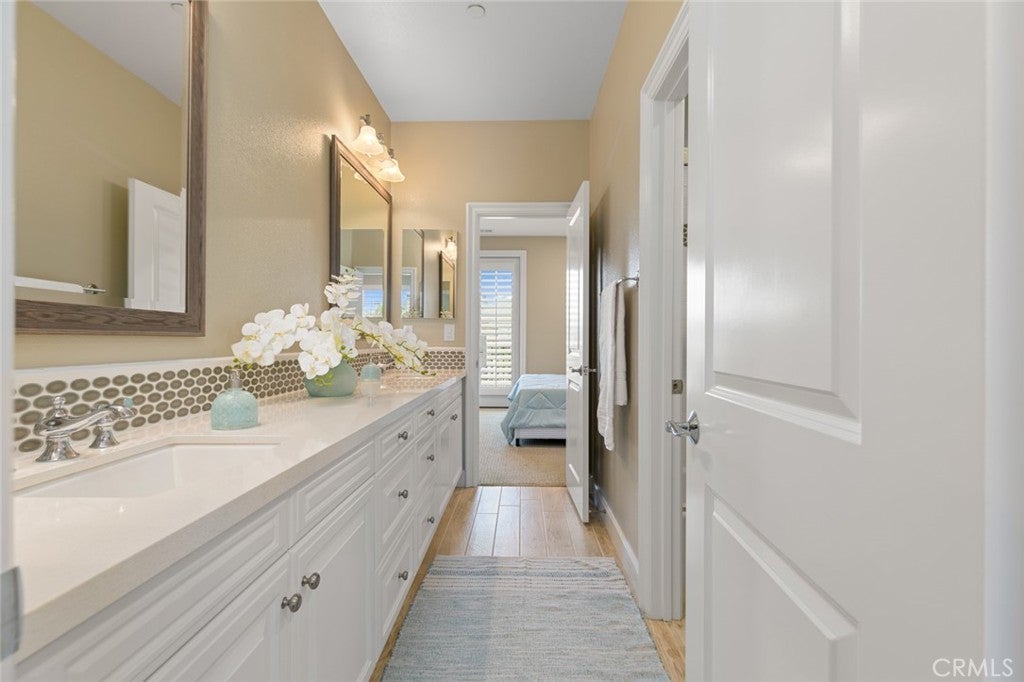 Presenting a distinguished residence in the esteemed Brightwater community, 17472 Oakbluffs Lane offers an exceptional coastal living experience just moments from the beach and Huntington Harbour. Set within one of Huntington Beach's premier newer-built enclaves, this home combines modern elegance with timeless California charm. Brightwater is renowned for its resort-style amenities, including a private clubhouse, state-of-the-art fitness center, sparkling pool and spa, and a network of scenic walking trails with direct access to the Bolsa Chica Wetlands. The location captures the essence of Southern California living — tranquil, convenient, and inspiring. Encompassing over 3,500 square feet, the home features a flexible floor plan thoughtfully designed for both comfort and function. The main level includes a generously sized bedroom with en-suite bath, ideal for guests or extended family. At the heart of the residence, the chef’s kitchen is appointed with premium stainless steel appliances, granite countertops, a substantial center island with seating, and a classic subway tile backsplash. Adjacent sliding doors open to the California Room — a covered outdoor retreat with a cozy fireplace, perfect for year-round entertaining. The expansive backyard is designed for gatherings, complete with a built-in barbecue and fire pit that elevate the home’s outdoor living appeal. Upstairs, a versatile loft provides space for a home office or media room, while two well-sized guest bedrooms share a tastefully upgraded bath. The primary suite is a private sanctuary overlooking the backyard, featuring dual walk-in closets and a luxurious en-suite bath with soaking tub, separate shower, and dual vanities. Additional amenities include a tandem three-car garage with epoxy flooring and built-in storage, dual-zoned A/C, tankless water heater, brand-new exterior paint and carriage lighting, and more. Ideally located less than one mile from the coast, this residence represents a rare opportunity to own within one of Huntington Beach’s most coveted communities. A true embodiment of refined coastal living.