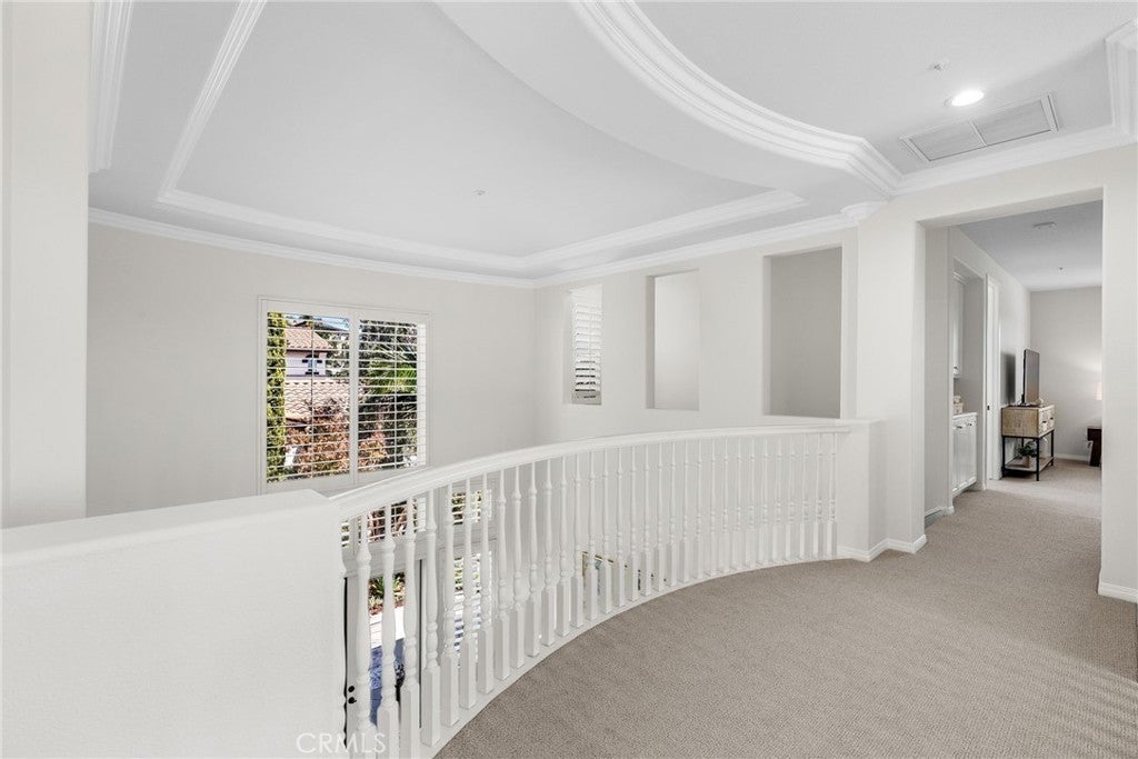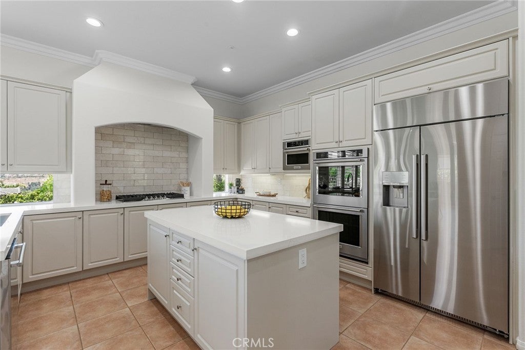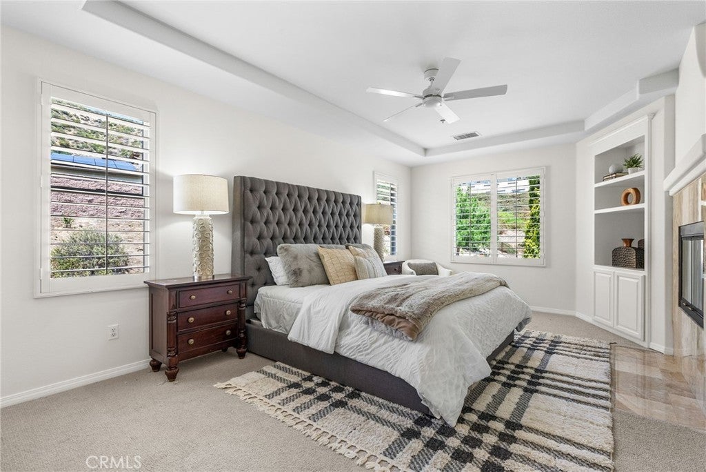 Perched on a private single-loaded cul-de-sac with panoramic hillside views, this reimagined 5-bedroom, 5-bath residence offers 4,244 sq ft of elevated, modern living in one of Orange County’s premier communities. A soaring entry sets the tone, leading into a sleek, designer-upgraded interior. The chef’s kitchen steals the show with dual islands, quartz counters, marble backsplash, custom cabinetry, and top-tier appliances—all opening to a light-filled family room framed by a dramatic wall of windows and a cozy fireplace. The main level is built for today’s lifestyle, featuring a spacious ensuite bedroom for guests or multi-gen living, a private office with fireplace, formal living and dining spaces, and dual staircases. Upstairs, the luxe primary suite offers a double-sided fireplace, spa-inspired bath, and dual walk-in closets. Three additional bedrooms enjoy scenic views and connect to a large loft perfect for a media room, play space, or study zone. Outside, a resort-style backyard awaits with a sparkling pool, spa, and even ocean views on clear days, incredible sunsets and city lights at night—an ideal setting for sunset gatherings and effortless entertaining. Additional highlights include a 4-car garage, expansive motor court, and refined finishes throughout. Located in the exclusive Santiago Canyon Estates, this home delivers the ultimate blend of privacy, nature, and convenience—just minutes from hiking and biking trails, Saddleback Church, Irvine Spectrum, top schools, dining, and easy Toll Road access. A rare opportunity to own a modern luxury retreat.
