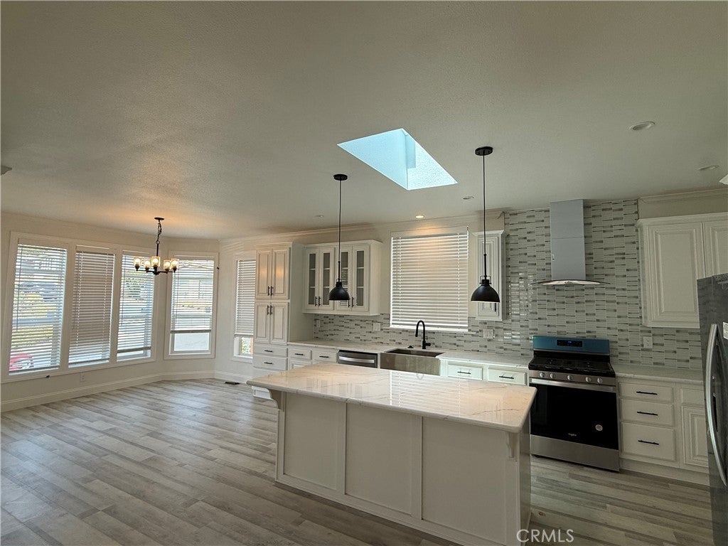 Discover this brand new 2025 home. 3 bedrooms 2 bathroom, approximately 1,500 sq/ft. This beautiful home offers a spacious open concept living area big windows to welcome in tons of natural lights. The kitchen features custom white cabinets, a center island with an eating bar, stainless appliances: double door refrigerator, stove, dishwasher, chef hood and farmhouse undermount sink with goose net faucet. Kitchen also features full heights mosaic backsplash, custom white cabinets and 24" x 48" skylight. Kitchen island opens to a spacious dinning room with bay windows and living room with coffer ceiling. Quarts countertops and ceiling fans throughout home. Master bathroom displays double sinks and framed mirror with separated toilet. 100% water proof vinyl plank throughout home. 9 feet ceiling. 7 years warranty. Low monthly space rent of $1,450/month.