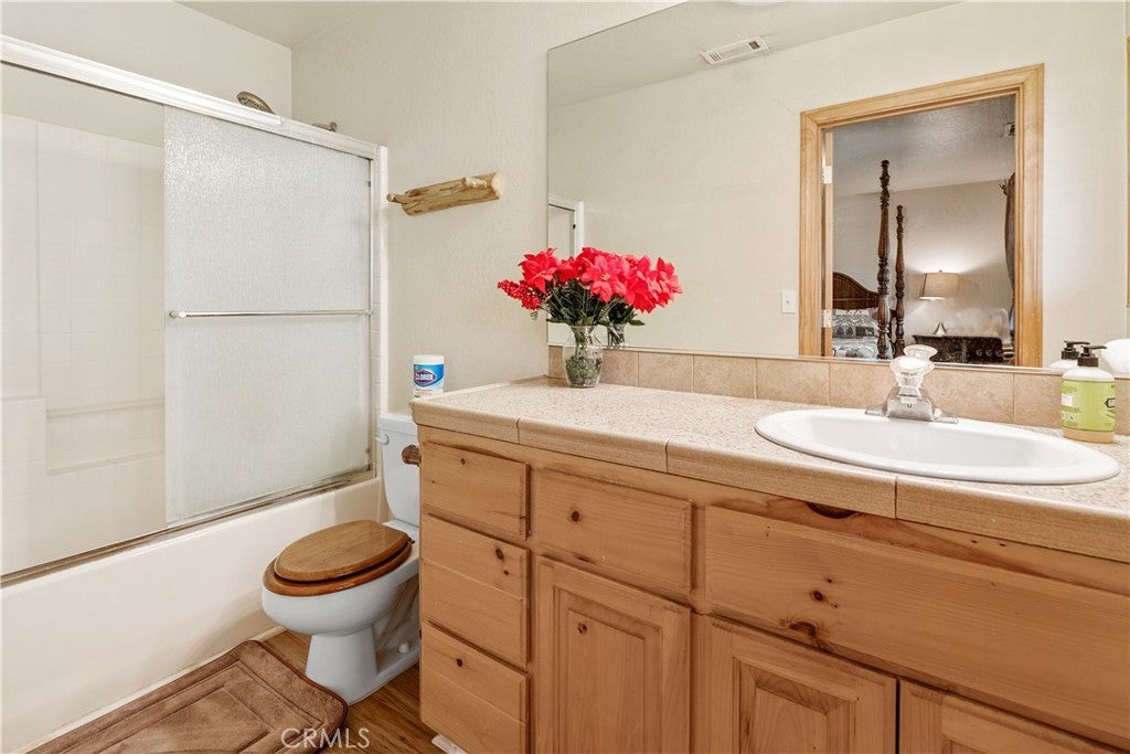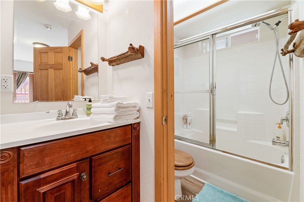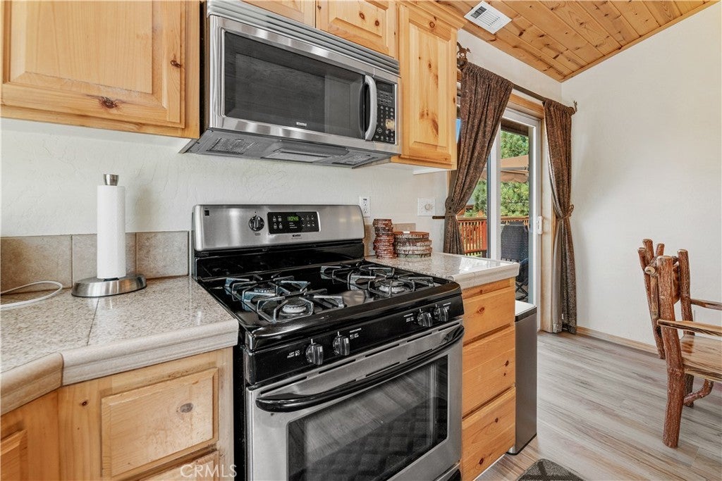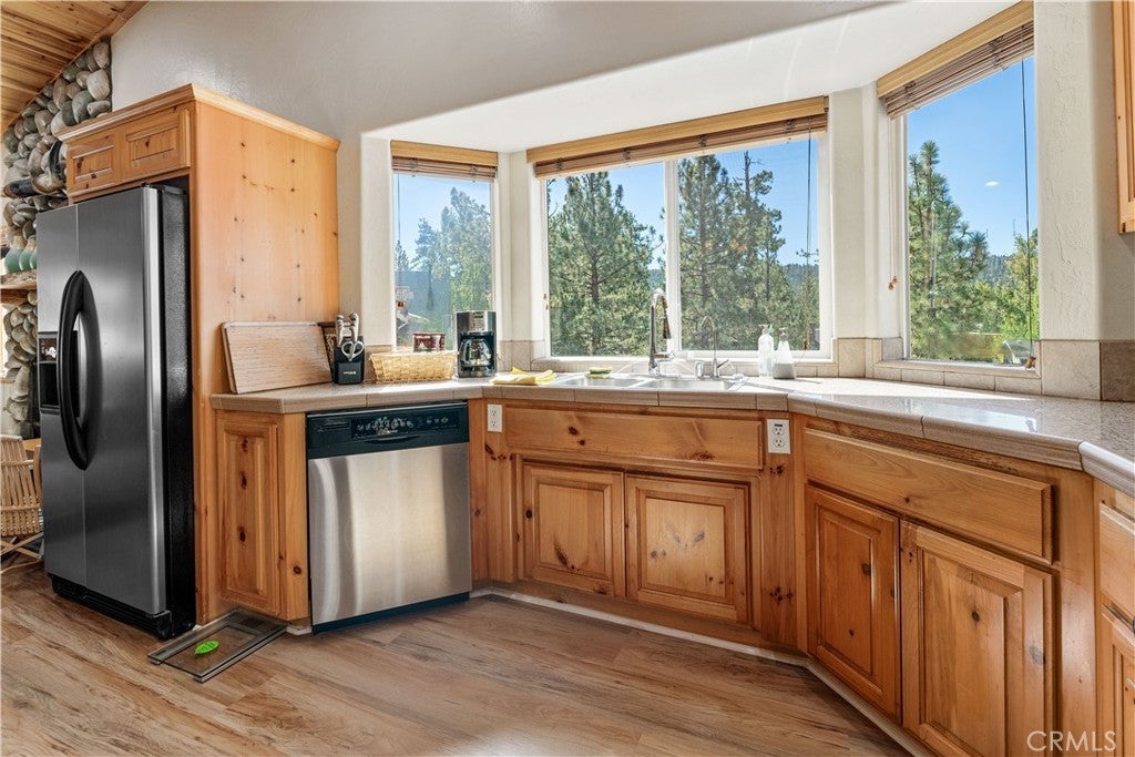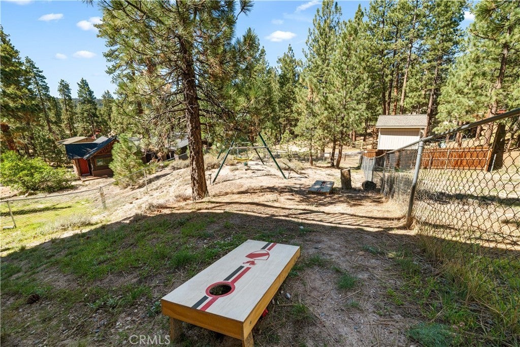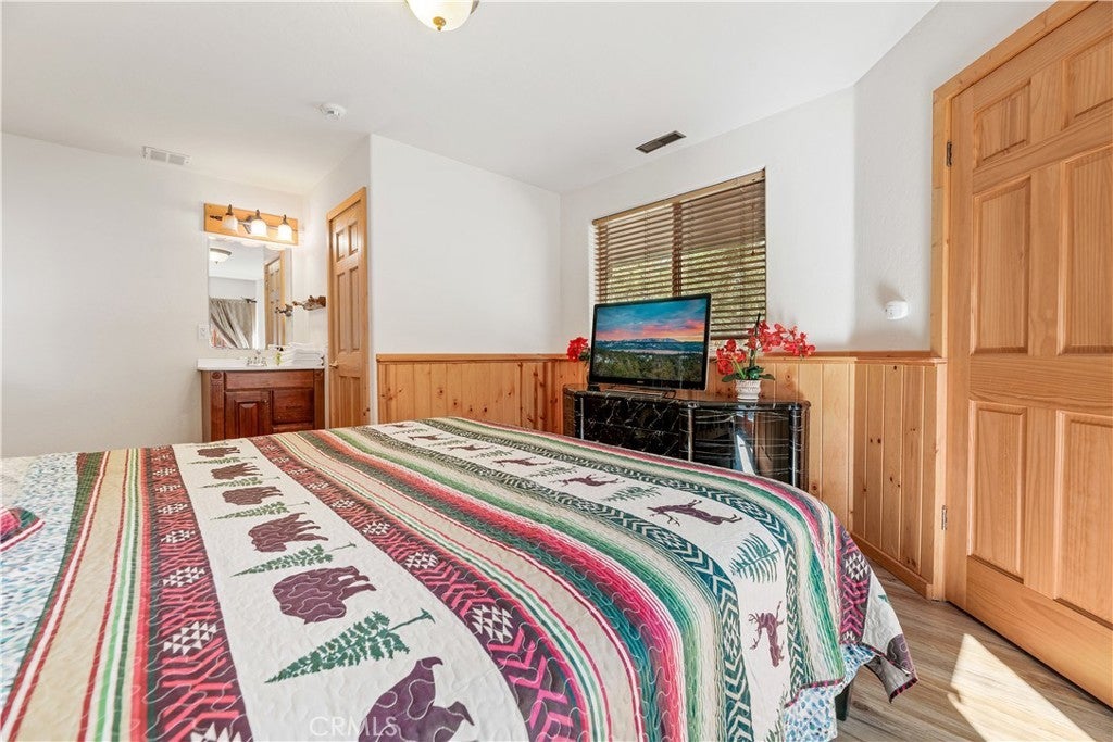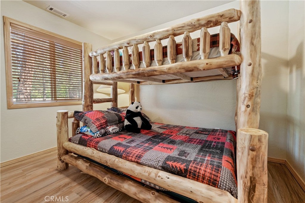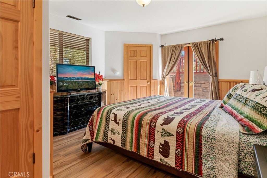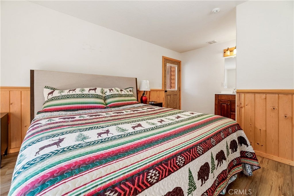 Don’t miss this rare opportunity to own a newer custom-built mountain home in Big Bear Lake! Built in 2004 and beautifully maintained, this 4-bedroom, 3-bath home features soaring vaulted ceilings, exposed timber beams, and beautiful upgraded laminate flooring throughout. The open-concept living room flows seamlessly into the kitchen and dining area, creating a warm and inviting space perfect for entertaining. From the dining area, step out onto a large elevated deck with panoramic, unobstructed views of the surrounding trees and hills. One of the bedrooms is approximately 400 sq ft, complete with an en-suite bath and a private exterior entrance—ideal for guests, short-term rental income, or extended family. Downstairs, a nearly full-size unfinished basement with a separate entrance offers endless potential for customization—think ADU, game room, workshop, or additional living space. In addition to the main living space, the home includes a nearly full-size unfinished basement area with a separate exterior entrance, offering endless possibilities for expansion—ADU, game room, workshop, or additional living space.