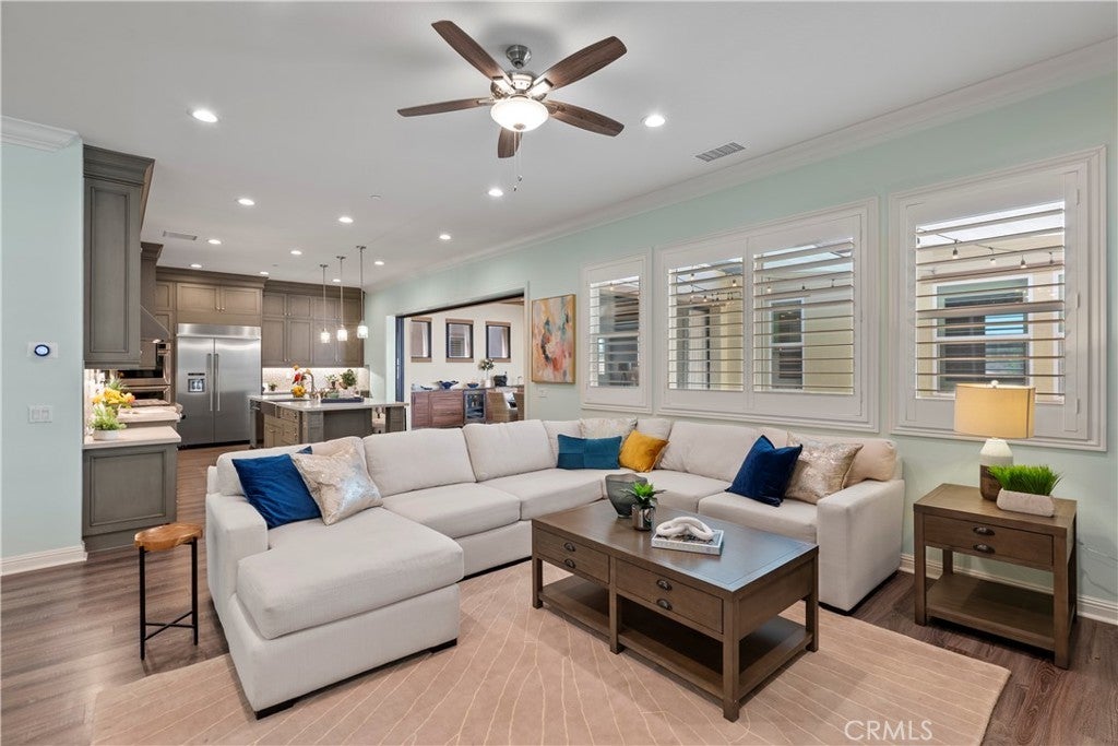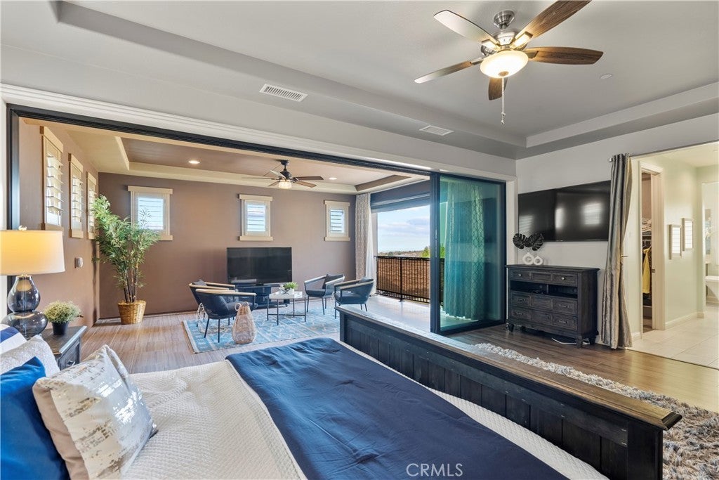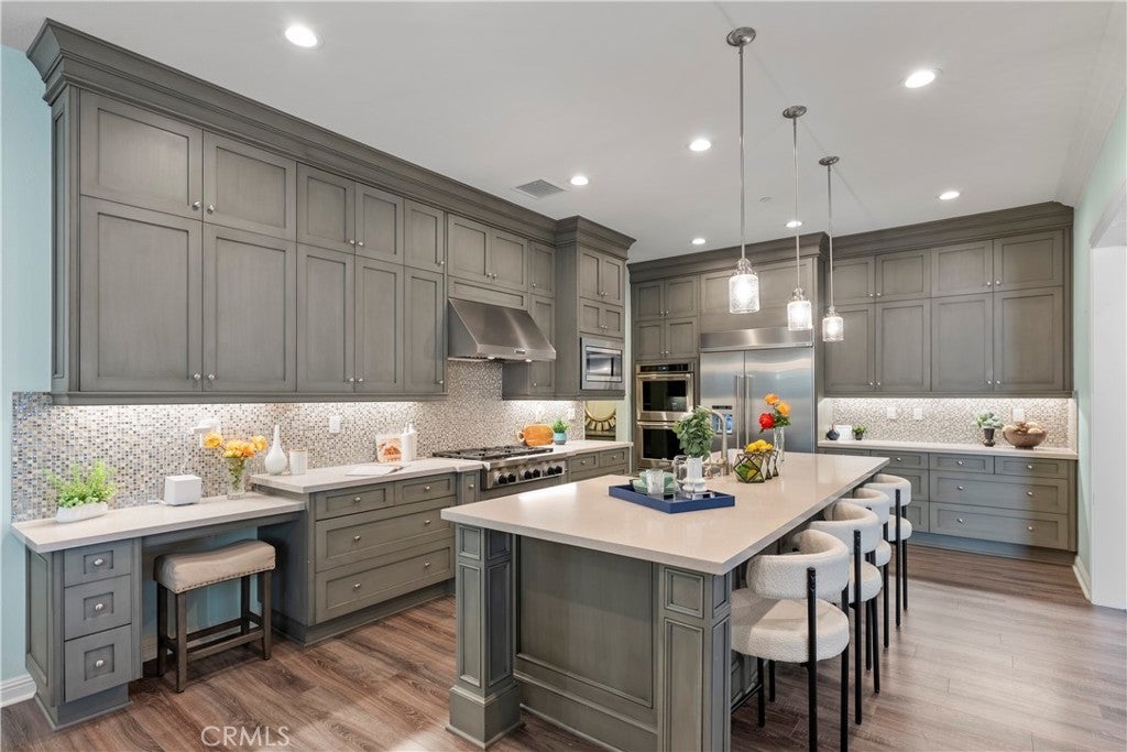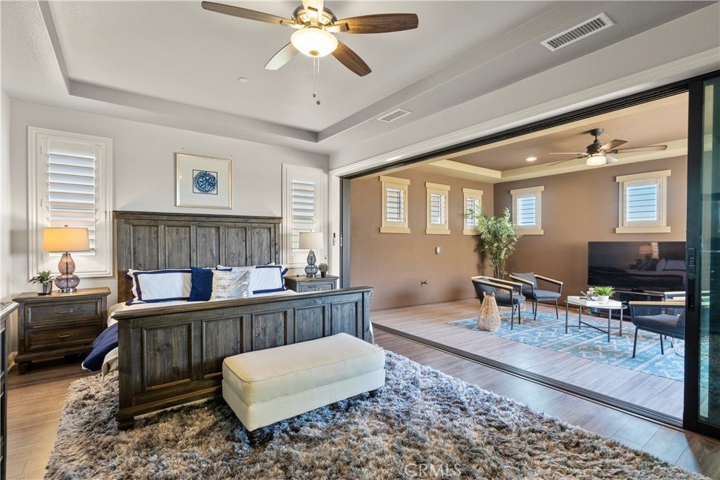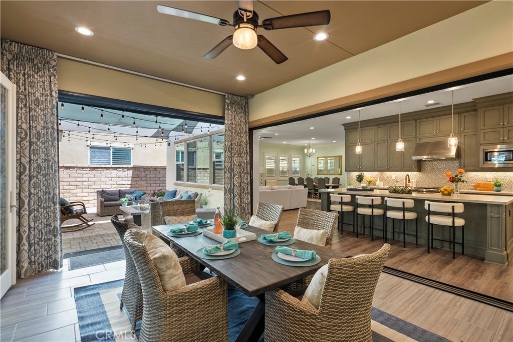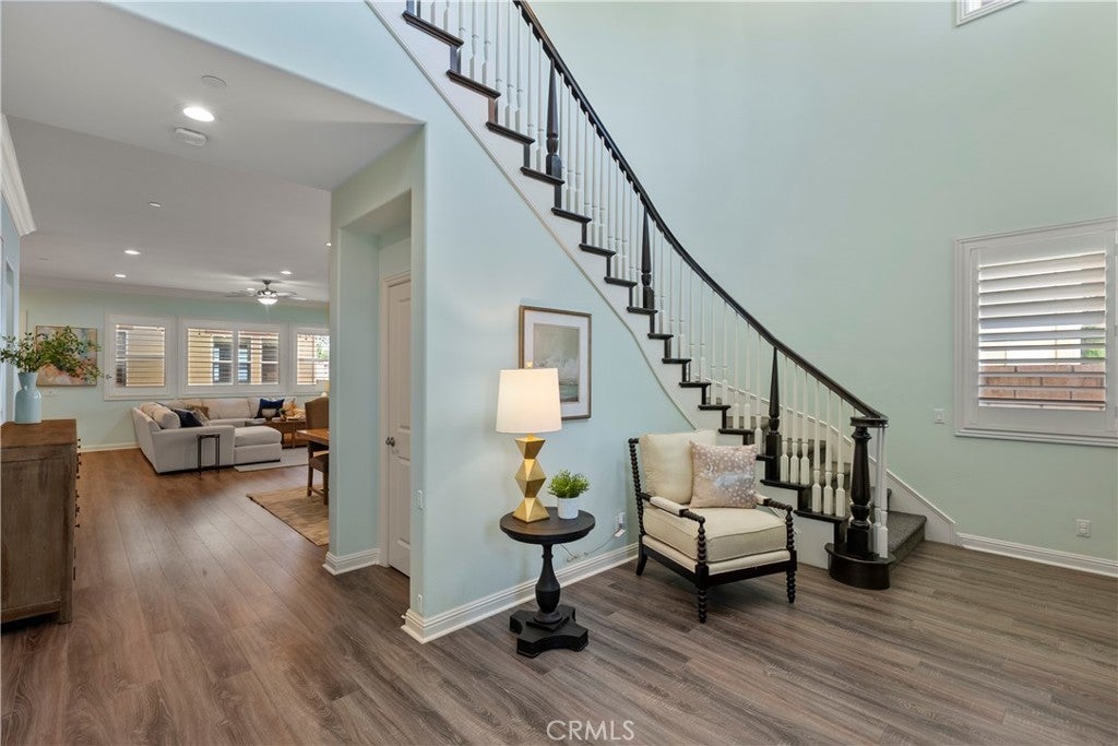 Welcome to 46 Dogwood, a beautifully upgraded 5-bedroom, 5.5-bathroom Toll Brothers home offering 3,273 square feet of luxury living in the prestigious Highlands neighborhood of Baker Ranch. This exceptional property includes a ground level casita with its own private entrance, living room, kitchenette, bedroom, and full bath—perfect for guests, multi-generational living, or a private office. With over $300,000 in designer upgrades, this home offers a blend of refined elegance and modern comfort. From the grand double-door entry, you’re welcomed into a dramatic two-story foyer with a sweeping curved staircase and thoughtfully designed built-ins that set the stage for the rest of the home. The open floor plan is flooded with natural light and features a cozy fireplace, generous living areas, and a chef-inspired kitchen with an oversized quartz island, wraparound breakfast bar, full-height soft-close cabinetry, built-in refrigerator, high-end stainless steel appliances, farmhouse sink, walk-in pantry, reverse osmosis system, built-in desk, drop zone, and designer lighting. Expansive pocketing glass doors open to a stunning California Room, outfitted with custom cabinetry, a wine and beverage refrigerator, and motorized screens and drapes for ideal indoor-outdoor entertaining. Each bedroom includes its own ensuite bathroom, and the luxurious primary suite offers tray ceilings, dual walk-in closets with custom organizers, a spa-like bath with an oversized shower and soaking tub, and pocket glass doors that open to a private deck with scenic hillside views. Additional features include smart home technology such as video doorbell, smart locks, thermostats, and a smart garage opener. The garage is finished with epoxy floors, built-in cabinets, overhead storage, a workbench, EV charger, and a whole-home water softener and filtration system. The home is also equipped with a 5.2 kW Tesla solar system for added energy efficiency. Located in the resort-style community of Baker Ranch, residents enjoy access to multiple parks, six heated pools and spas, scenic trails, fitness areas, clubhouses, BBQ stations, fire pits, sport courts, and a dog park—all with no Mello-Roos and low HOA dues. This is an incredible opportunity to own a turnkey luxury home in one of Lake Forest’s most desirable neighborhoods.