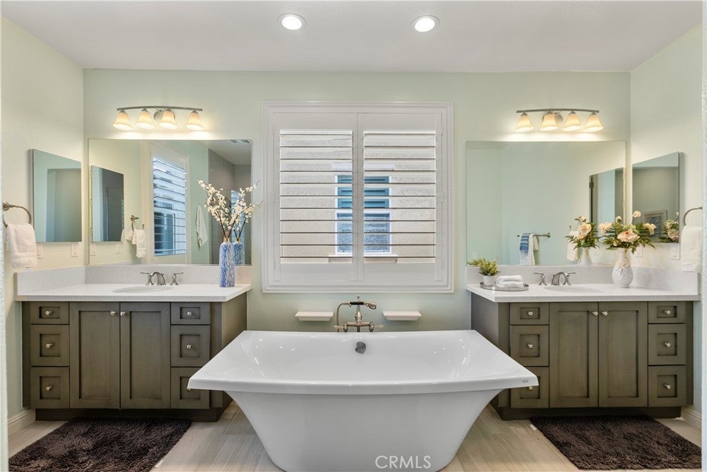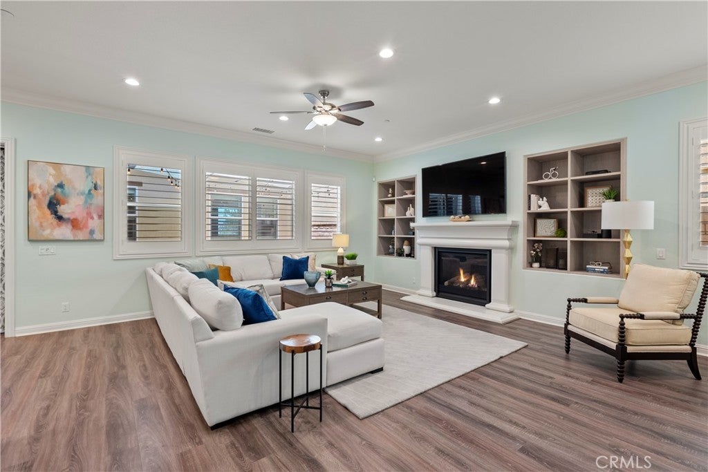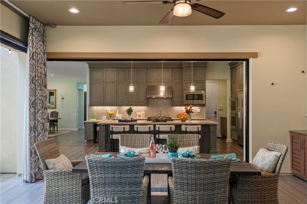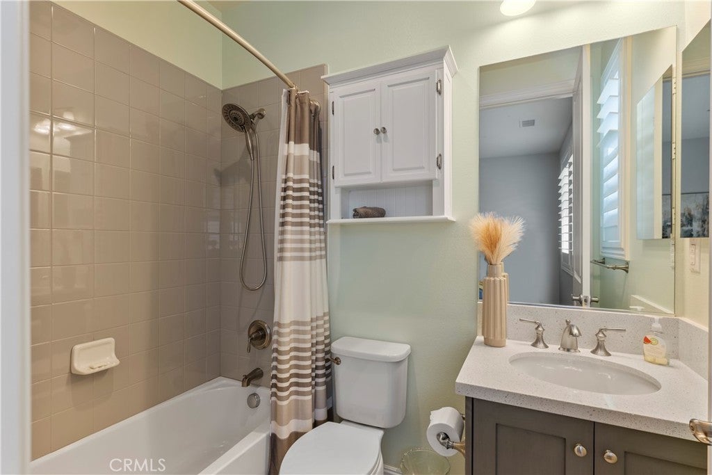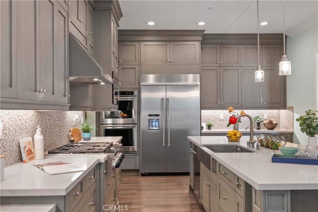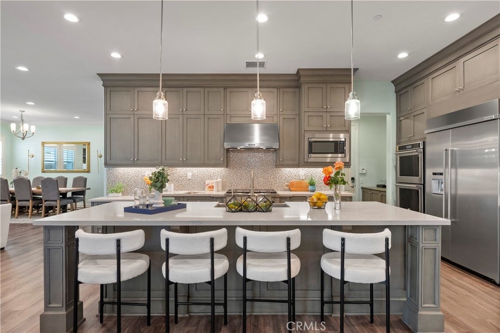 Welcome to 46 Dogwood, a beautifully upgraded 5-bedroom, 5.5-bathroom Toll Brothers home offering 3,273 square feet of luxury living in the prestigious Highlands neighborhood of Baker Ranch. This exceptional property includes a ground level casita with its own private entrance, living room, kitchenette, bedroom, and full bath—perfect for guests, multi-generational living, or a private office. With over $300,000 in designer upgrades, this home offers a blend of refined elegance and modern comfort. From the grand double-door entry, you’re welcomed into a dramatic two-story foyer with a sweeping curved staircase and thoughtfully designed built-ins that set the stage for the rest of the home. The open floor plan is flooded with natural light and features a cozy fireplace, generous living areas, and a chef-inspired kitchen with an oversized quartz island, wraparound breakfast bar, full-height soft-close cabinetry, built-in refrigerator, high-end stainless steel appliances, farmhouse sink, walk-in pantry, reverse osmosis system, built-in desk, drop zone, and designer lighting. Expansive pocketing glass doors open to a stunning California Room, outfitted with custom cabinetry, a wine and beverage refrigerator, and motorized screens and drapes for ideal indoor-outdoor entertaining. Each bedroom includes its own ensuite bathroom, and the luxurious primary suite offers tray ceilings, dual walk-in closets with custom organizers, a spa-like bath with an oversized shower and soaking tub, and pocket glass doors that open to a private deck with scenic hillside views. Additional features include smart home technology such as video doorbell, smart locks, thermostats, and a smart garage opener. The garage is finished with epoxy floors, built-in cabinets, overhead storage, a workbench, EV charger, and a whole-home water softener and filtration system. The home is also equipped with a 5.2 kW Tesla solar system for added energy efficiency. Located in the resort-style community of Baker Ranch, residents enjoy access to multiple parks, six heated pools and spas, scenic trails, fitness areas, clubhouses, BBQ stations, fire pits, sport courts, and a dog park—all with no Mello-Roos and low HOA dues. This is an incredible opportunity to own a turnkey luxury home in one of Lake Forest’s most desirable neighborhoods.
