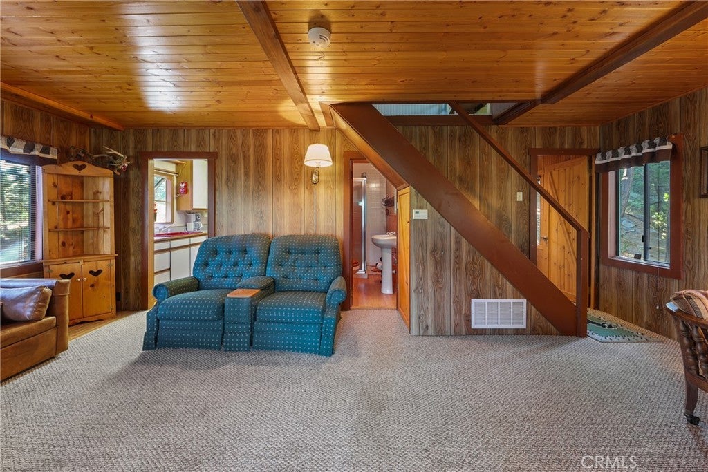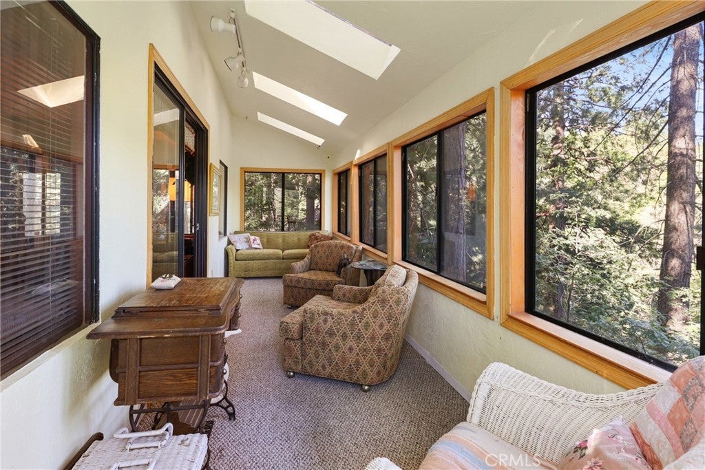 Escape to the mountains in this inviting 2-bedroom, 1-bath cabin nestled in the serene community of Twin Peaks. With 948 square feet of cozy living space, this home offers the perfect blend of rustic charm and modern comfort and is just the right size for weekend trips or a peaceful full-time home. Wood-beam ceilings and large windows bring warmth and natural light to the living and dining areas. Additional features include a generous, secure storage area and a workshop on the first level, accessible via a separate entrance. Step outside to enjoy the fresh mountain air from the open deck—ideal for morning coffee or evening stargazing. The adjacent lot is also included in the sale. It features a spacious, convenient 2-car parking deck, offering rare and valuable off-street parking and potential for future expansion or outdoor entertainment space. Explore the nearby trails, go fishing at picturesque Gregory Lake, and enjoy the beauty of the lake, as well as the charming shops and restaurants in town. When the snow falls, you can go sledding in your backyard, creating lasting memories with your family and friends. The roads are serviced year-round, and there is easy access to ski resorts and sledding areas. Close to Santa’s Village. This turn-key property is ready for its next family to experience the unique charm of traditional cabin living. Whether you're looking for a weekend retreat, full-time residence, or vacation rental, this cabin offers an incredible opportunity to own a slice of peaceful mountain living with added flexibility and value. Owned by the same family for over 50 years! Don't miss your chance to make this charming getaway your own! Schedule a showing today!