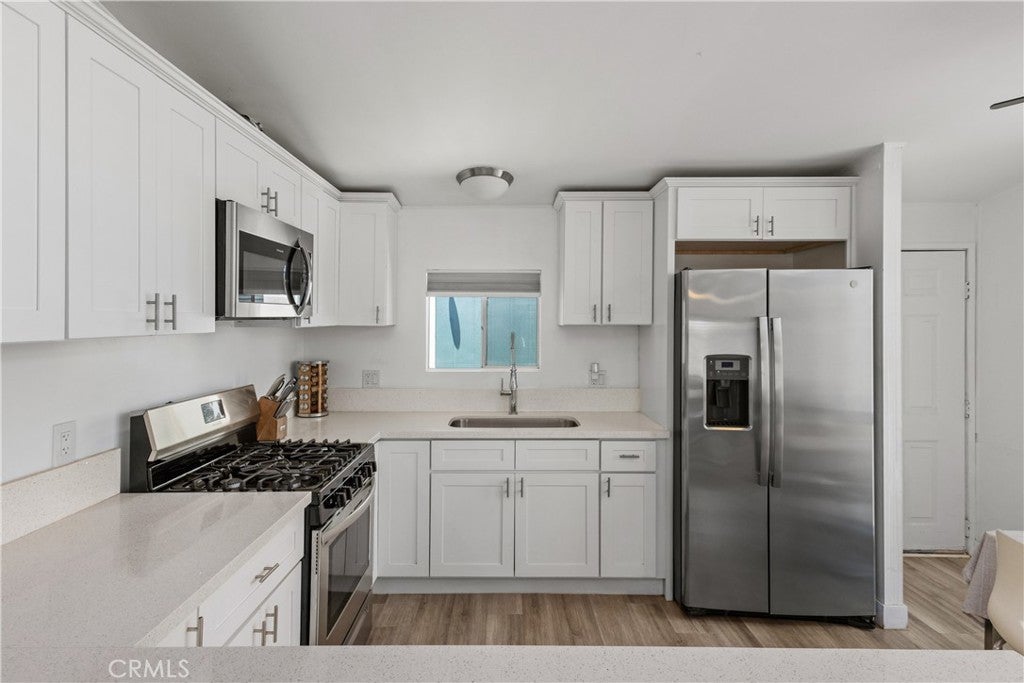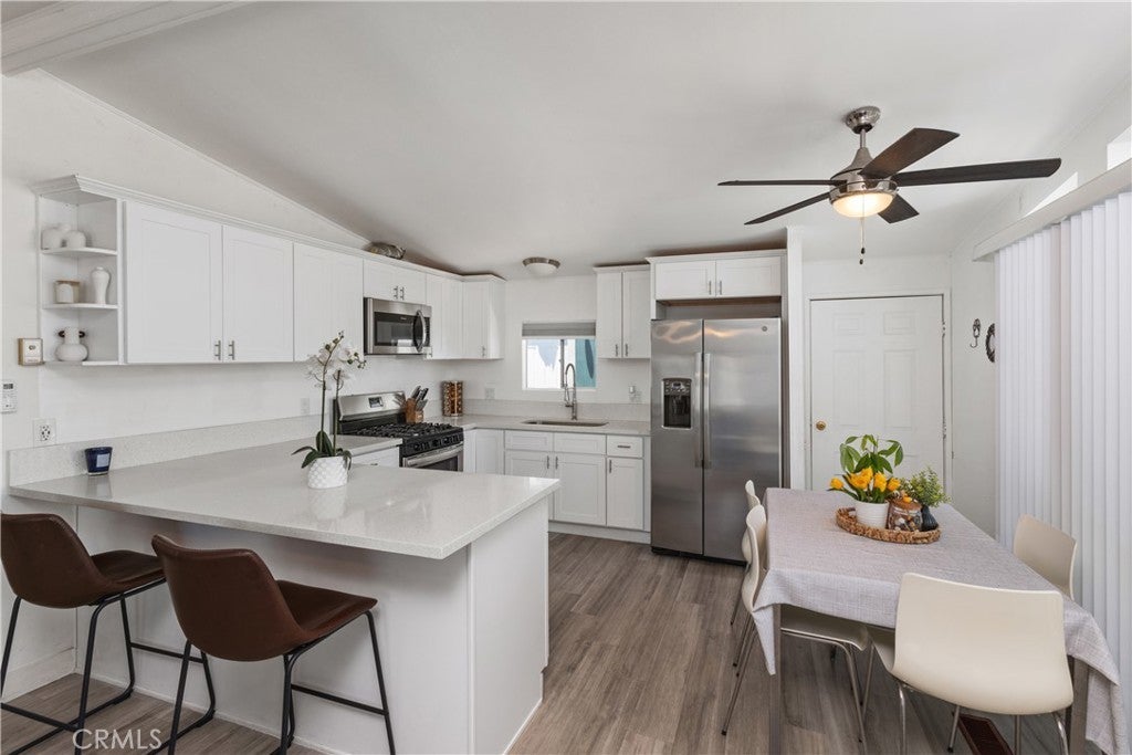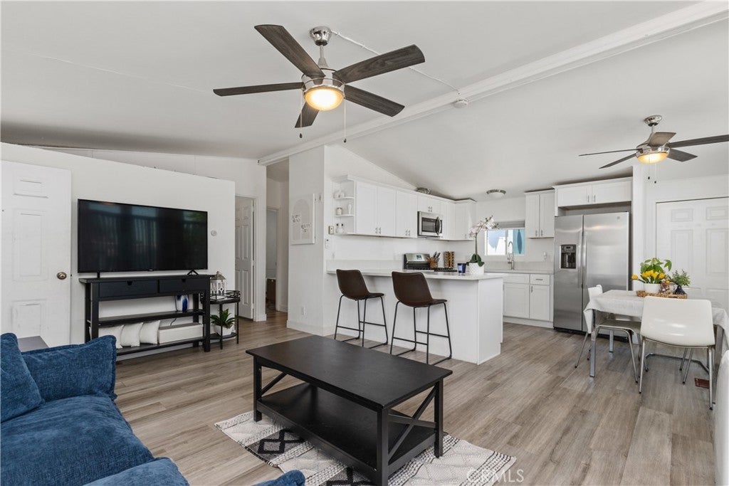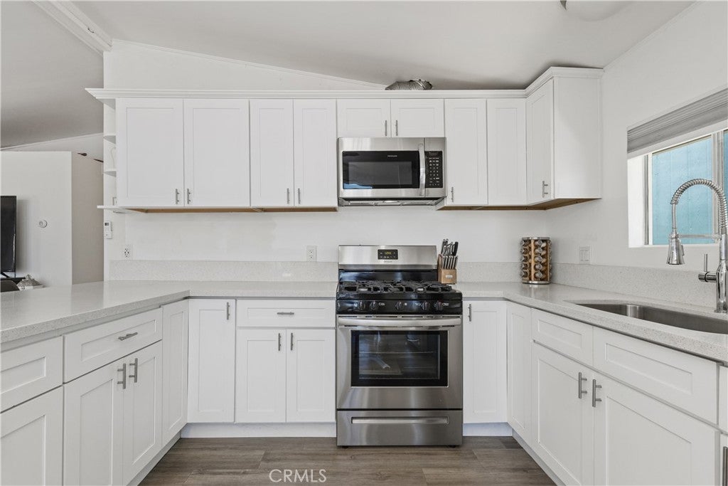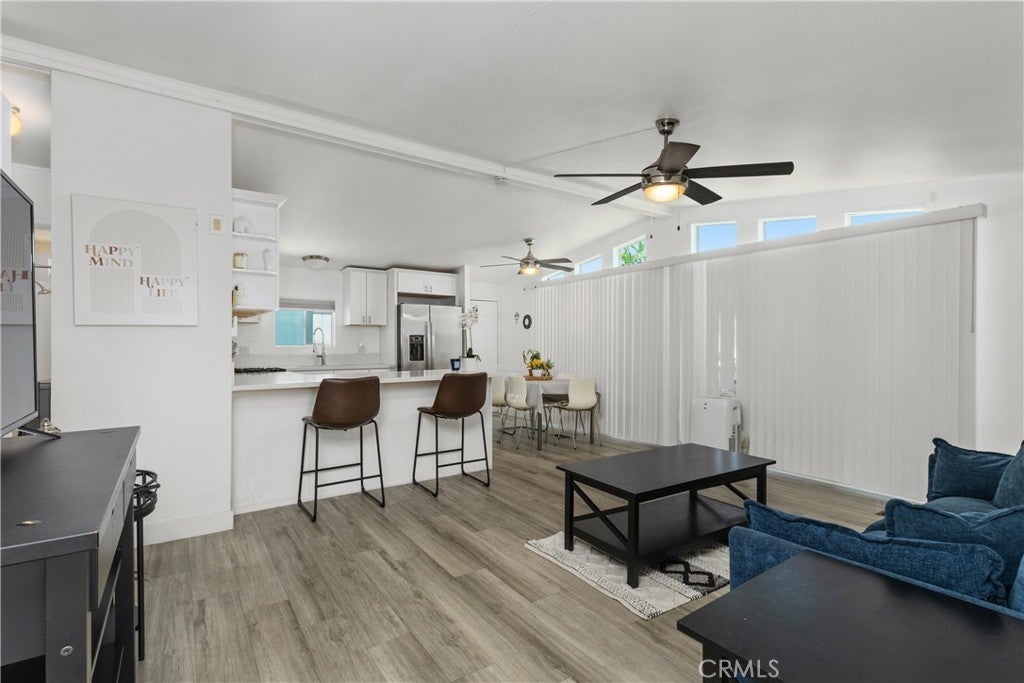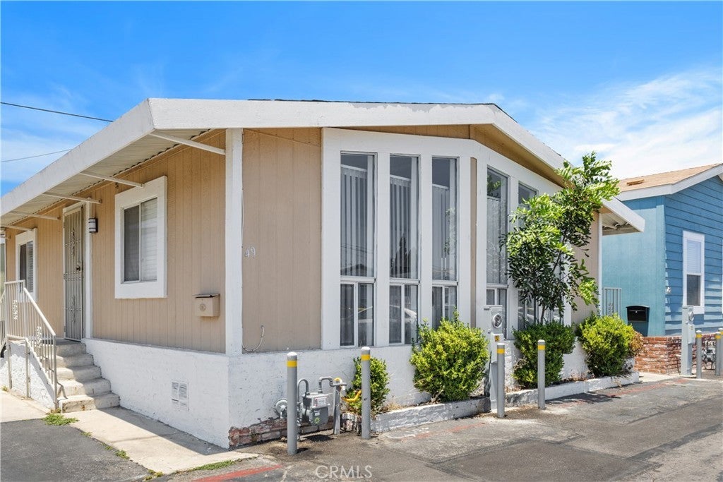Welcome to this beautifully updated 2-bedroom, 1-bathroom end-unit home in the desirable Costa Mesa Estates community. Designed with comfort and style in mind, this move-in ready home features vaulted ceilings, an open floor plan, and oversized windows that flood the space with natural light. The remodeled kitchen is finished with quartz countertops, a gas range, and newer, quality appliances, including a washer and dryer that stay with the home. Durable hard flooring runs throughout, creating a seamless, low-maintenance living space. A window-unit A/C keeps things cool, while the full laundry area and one assigned parking space add convenience. Enjoy all the benefits of a prime location just minutes from the beach, top-rated dining, shopping, and easy freeway access. Whether you're a first-time buyer or looking for a coastal escape, this charming Costa Mesa home offers the perfect blend of value, location, and style. **Land lease is currently $1,439 per month.**
