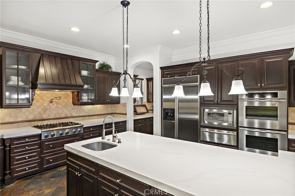 LUXURIOUS & FULLY REMODELED! This exceptional home is located in Corona's highly sought-after guard-gated community of The Retreat and offers the perfect mix of elegance, comfort, and modern upgrades. Featuring 5 spacious bedrooms and 5.5 baths, this residence showcases fresh interior paint, brand-new quartz countertops in the chef's kitchen, and thoughtful designer finishes throughout-making it feel like a model home. An entertainer's paradise, the backyard includes a built-in barbecue and multiple areas for relaxing or hosting guests. The primary suite is a true retreat, complete with a private balcony and no rear neighbors, offering peaceful views and total privacy. The home offers three inviting living spaces—a formal sitting room at the entry, a cozy family room off the kitchen, and an expansive upstairs entertainment room. Additional highlights include a charming courtyard, window treatments throughout, and a 3-car tandem garage. Enjoy all the perks of this amazing location-just minutes from Dos Lagos restaurants, theaters, shopping, and entertainment. The Retreat community also features a pool, parks, and scenic hiking trails for outdoor enjoyment.