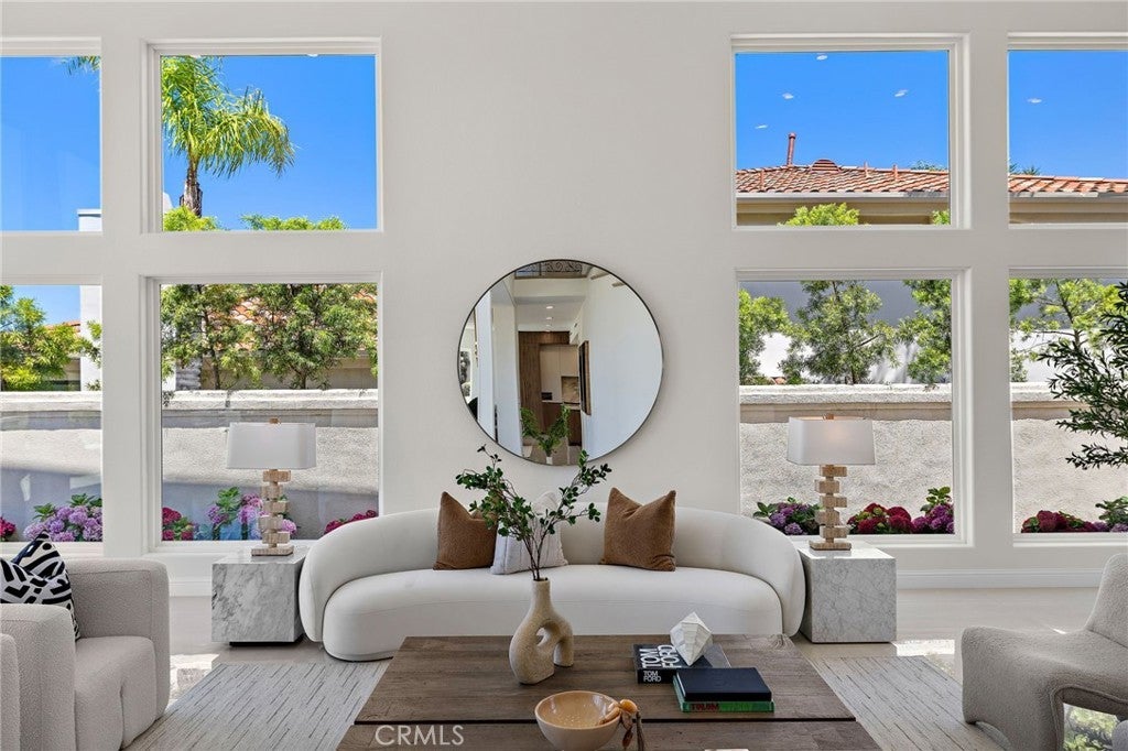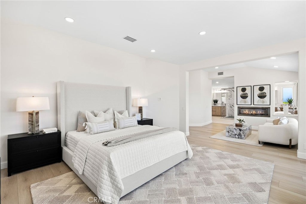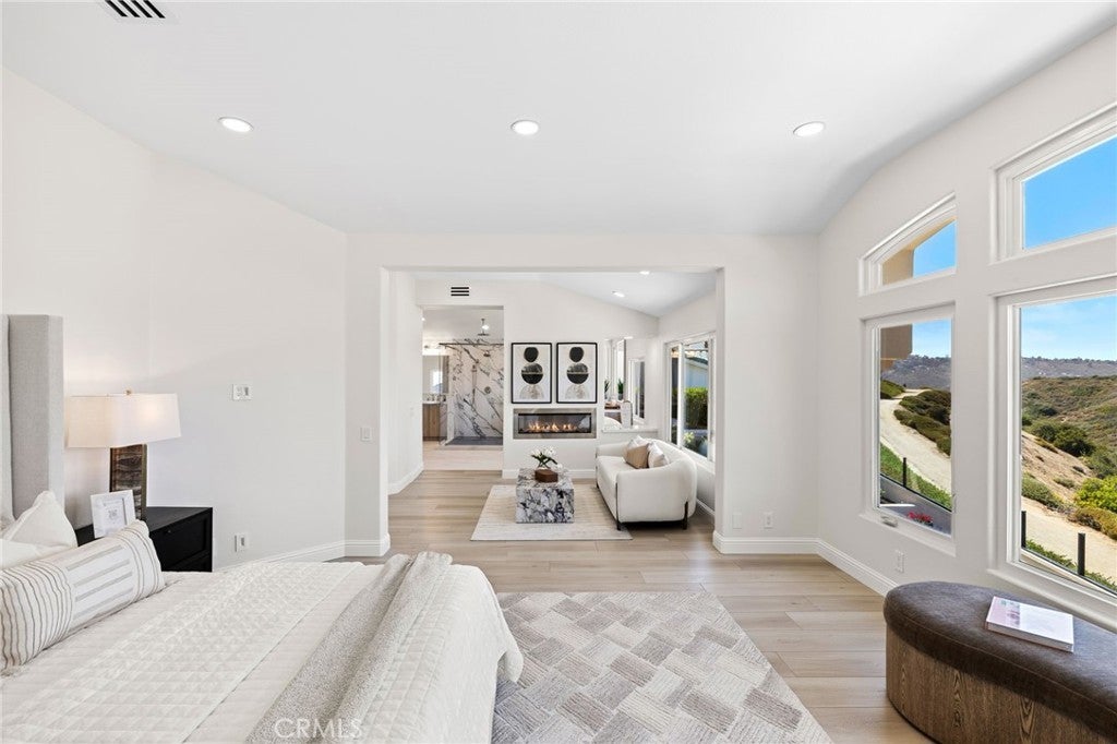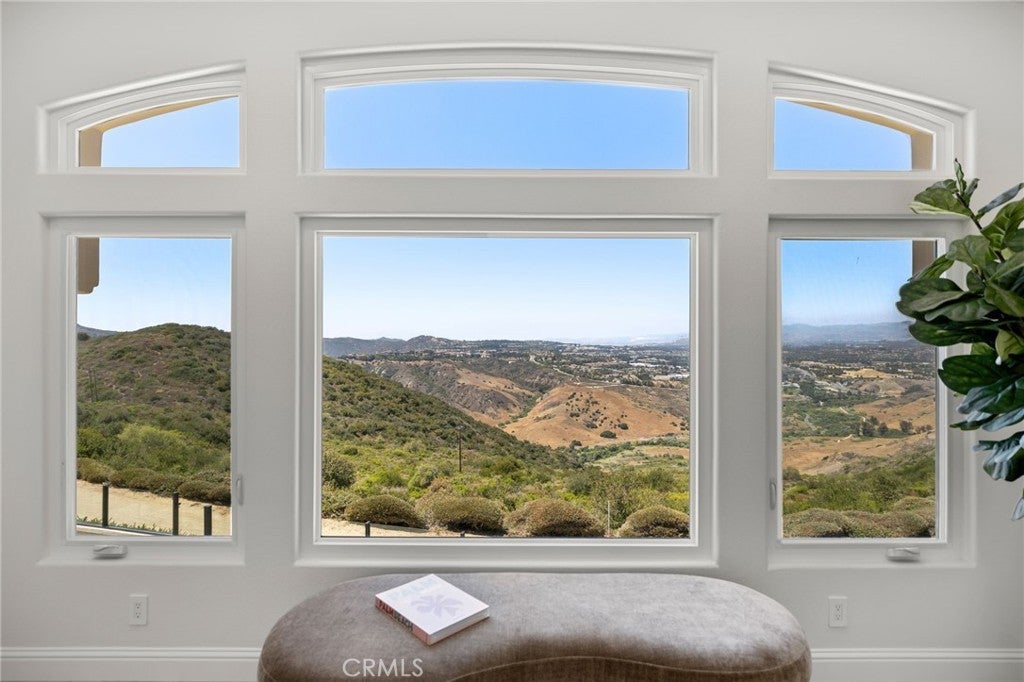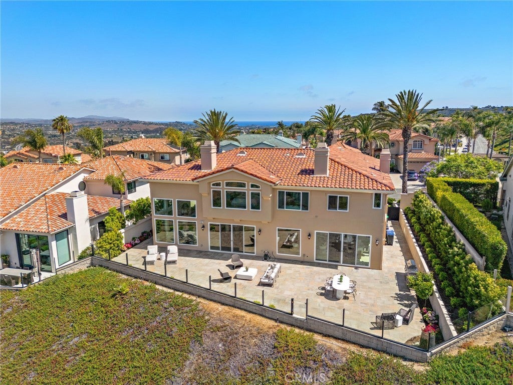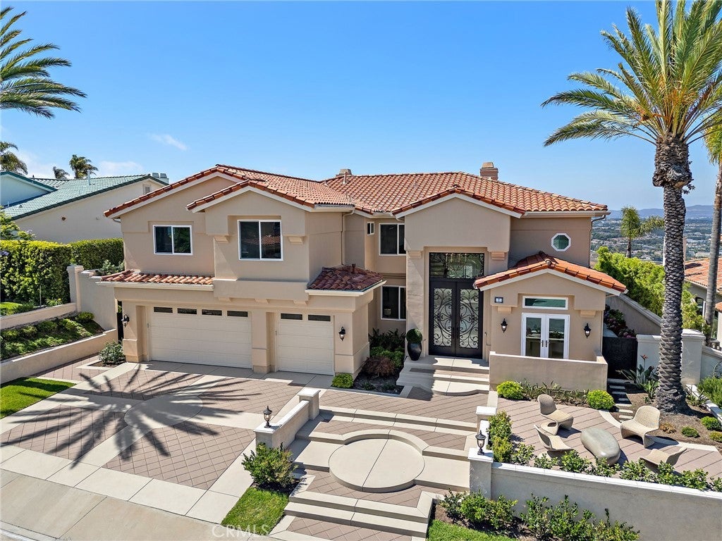Refined Coastal Living in Guard-Gated Palmilla, Laguna Niguel Commanding a premier front-row position in the prestigious guard-gated enclave of Palmilla, this newly reimagined semi-custom estate offers a rare opportunity to experience elevated living in the coveted heights of Niguel Summit. Encompassing approximately 4,431 square feet on a generous 8,500 square foot lot, this distinguished residence features 4 ensuite bedrooms, 4.5 baths, and sweeping panoramic views of Saddleback Mountain, enhanced by cool ocean breezes from nearby Laguna Beach. An impressive arrival begins at the 12-foot custom iron entry doors, opening into a voluminous interior defined by 18-foot ceilings, Spanish tile flooring, and dramatic floor-to-ceiling windows that flood the home with natural light while framing tranquil city and mountain vistas. The flowing floor plan connects formal and casual spaces with effortless elegance. Anchoring the main living area is a contemporary smart fireplace, seamlessly adjoining a designer chef’s kitchen appointed with bespoke Italian cabinetry, Taj Mahal quartz countertops, Thermador appliances, and Italian lighting. Wellness and function converge at the sink with an instant hot water tap and reverse osmosis filtration system. A full ensuite bedroom on the main level offers ideal accommodations for guests or multi-generational living. French doors invite you outdoors to a private and professionally landscaped backyard, thoughtfully enhanced with new pavers and abundant space for alfresco dining and entertaining. Ascending a staircase finished in custom redwood, the upper level reveals three additional ensuite bedrooms and a versatile bonus room, ideal as a home office, media lounge, or fitness studio. The expansive primary suite captures dazzling city light views and features a serene sitting area with a dual-sided smart fireplace, shared with the spa-inspired primary bath—complete with heated porcelain floors, Italian cabinetry, designer lighting, and a custom built-in wardrobe. Additional enhancements include new HVAC systems, updated plumbing and electrical, dual-pane energy-efficient windows, epoxy-coated garage flooring, and smooth stucco exterior finish. Situated minutes from renowned beaches, scenic trails, top-tier schools, and upscale dining and boutiques, this exceptional residence combines the finest in luxury design, modern comfort, and coastal California living.